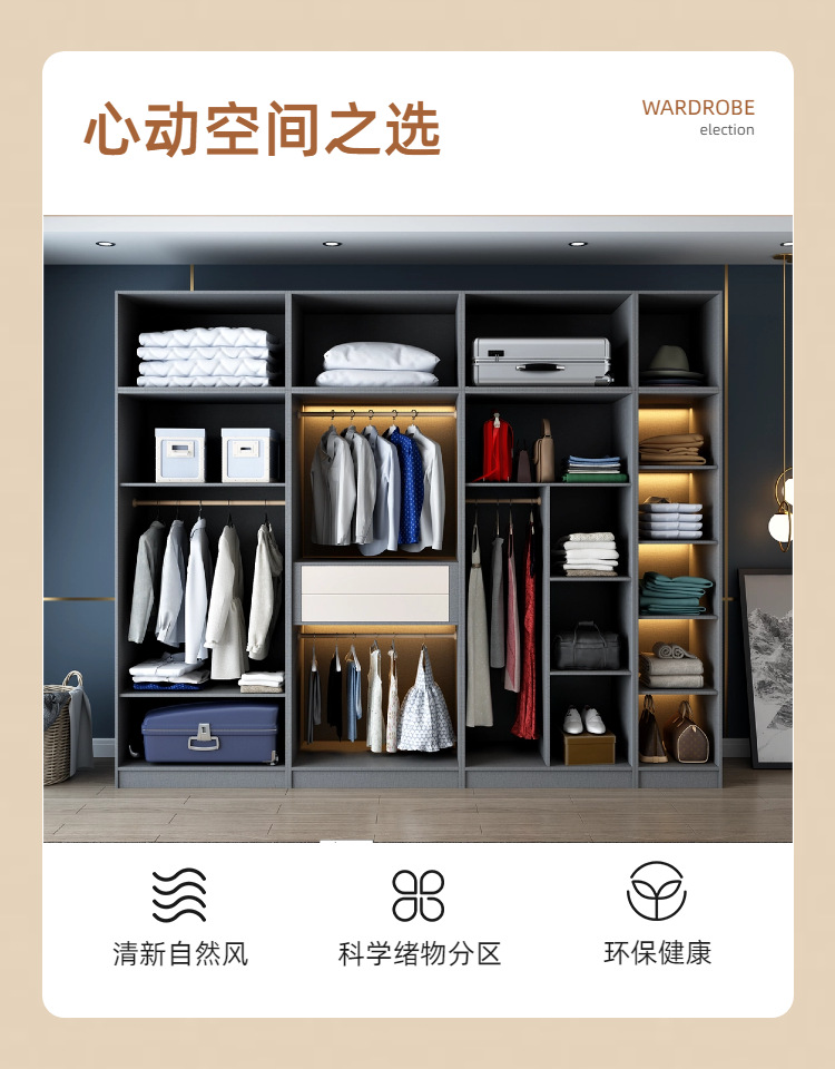 Деревянный домашний шкаф для спальни, большой шкаф, легкий роскошный шкаф для хранения вещей, комната для аренды, небольшая квартира с верхним шкафом для хранения вещей
