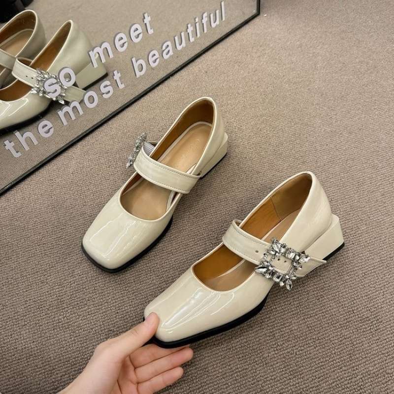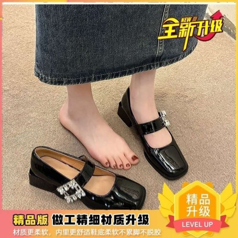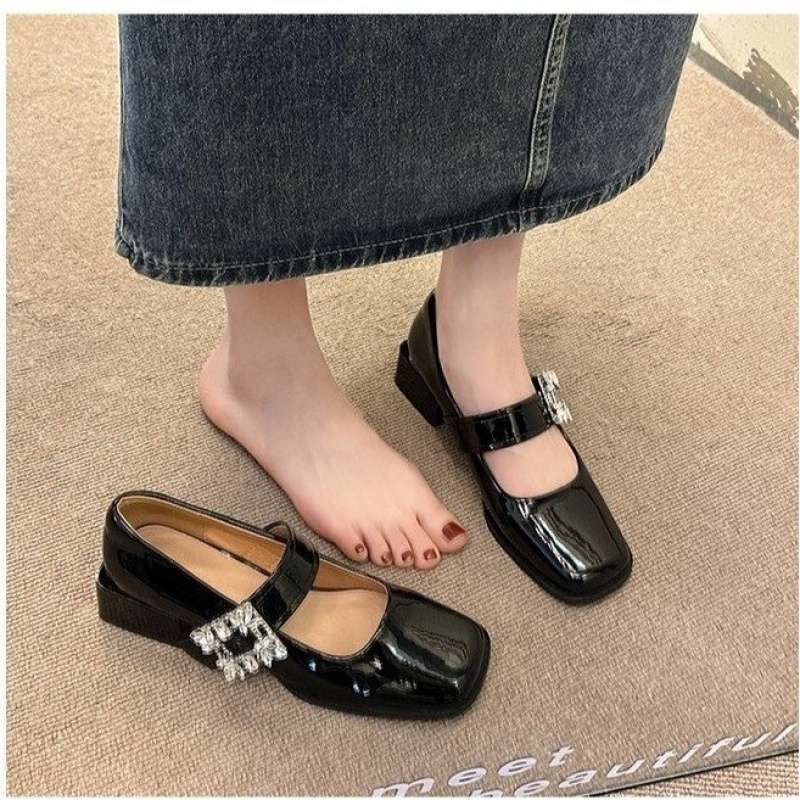 Женские туфли в стиле французского ретро 2025, весенняя новинка, туфли Мэри Джейн с юбкой, универсальные туфли с неглубоким вырезом и стразами