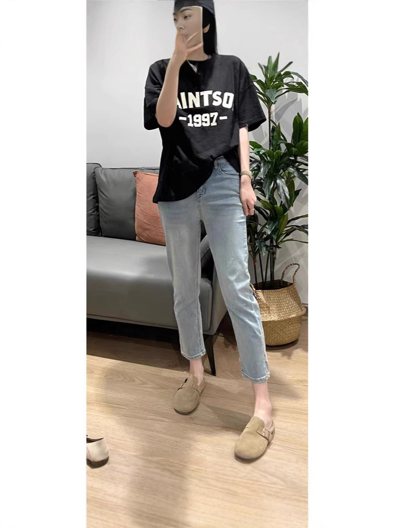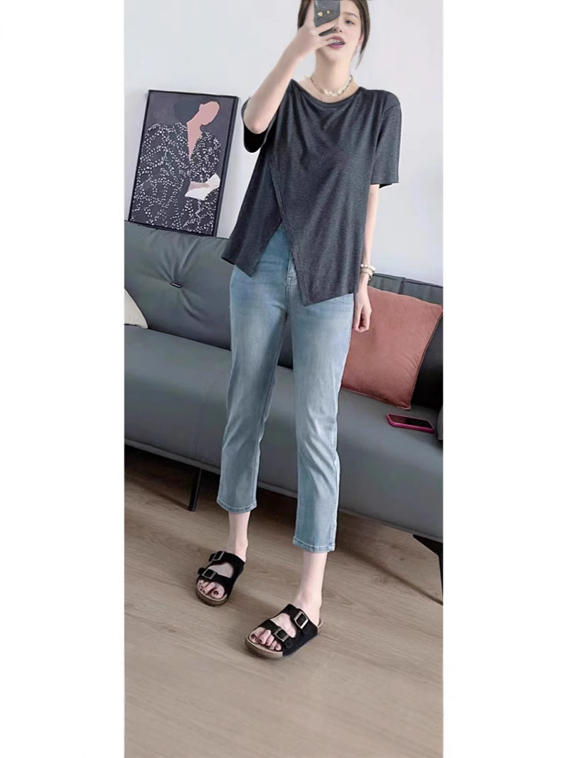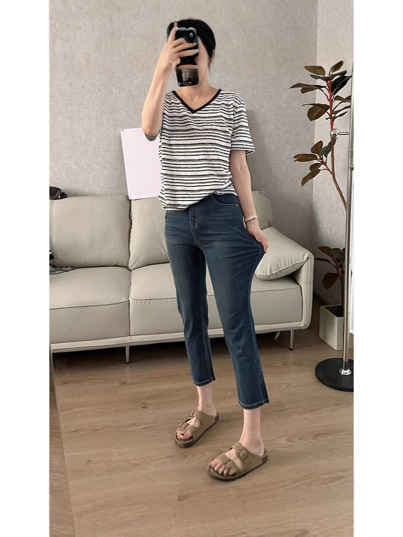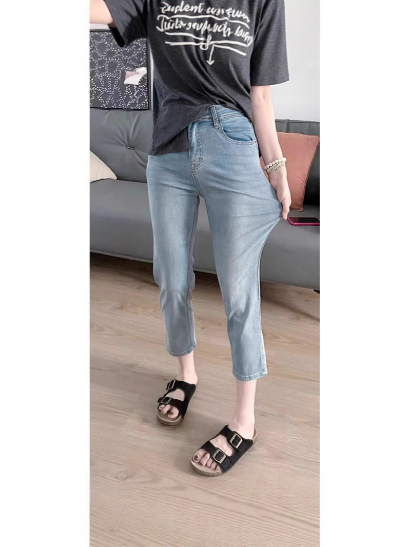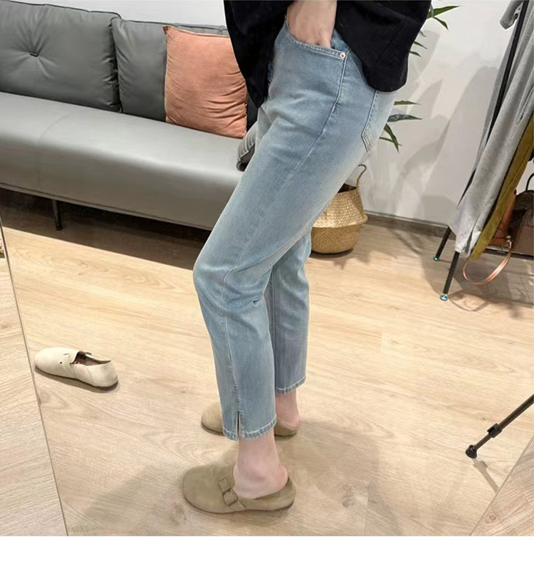 Женские эластичные укороченные джинсы больших размеров с разрезом, осенние утягивающие прямые брюки-сигареты с высокой талией для миниатюрных фигур больших размеров, оптовая продажа.