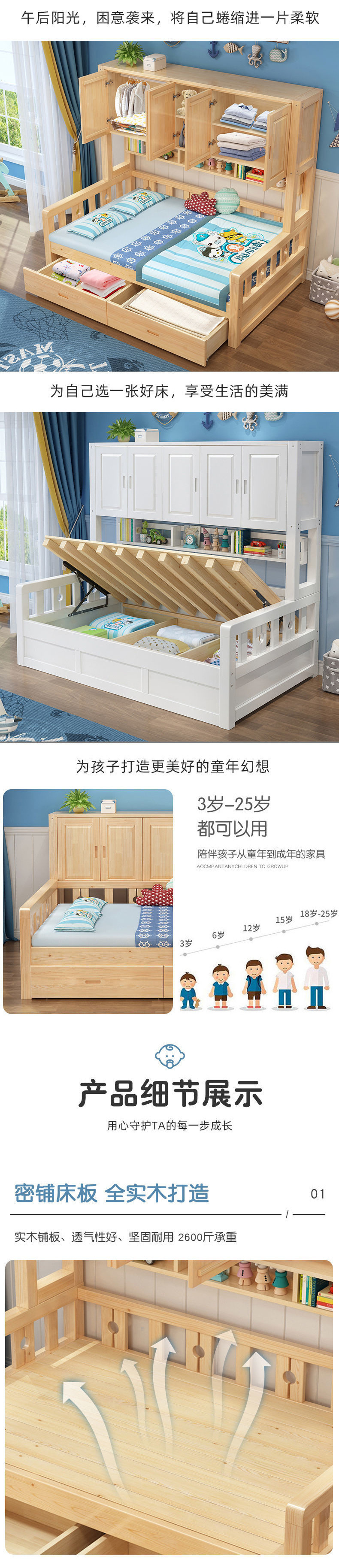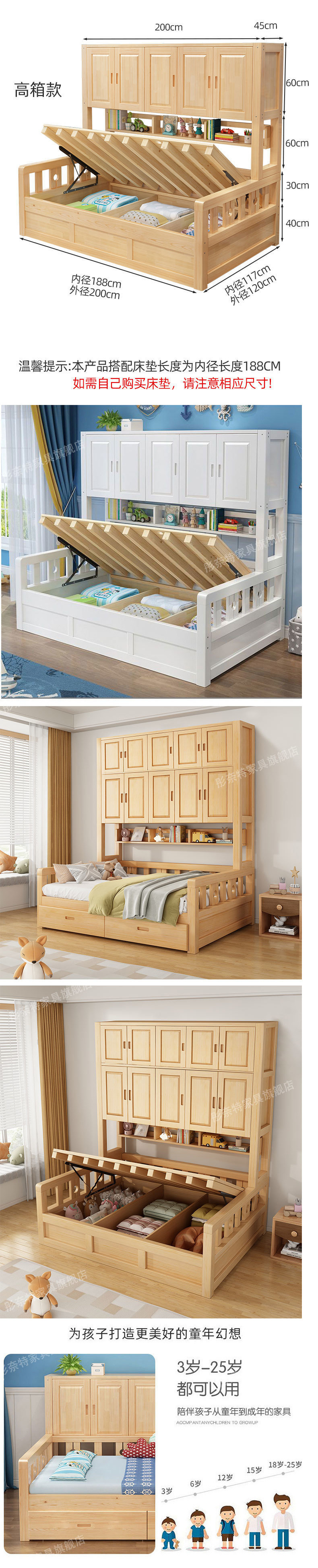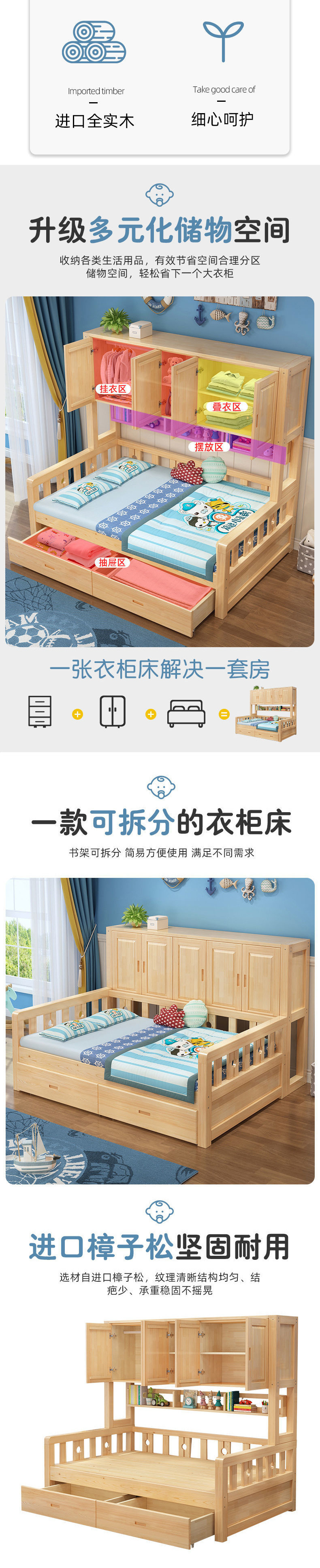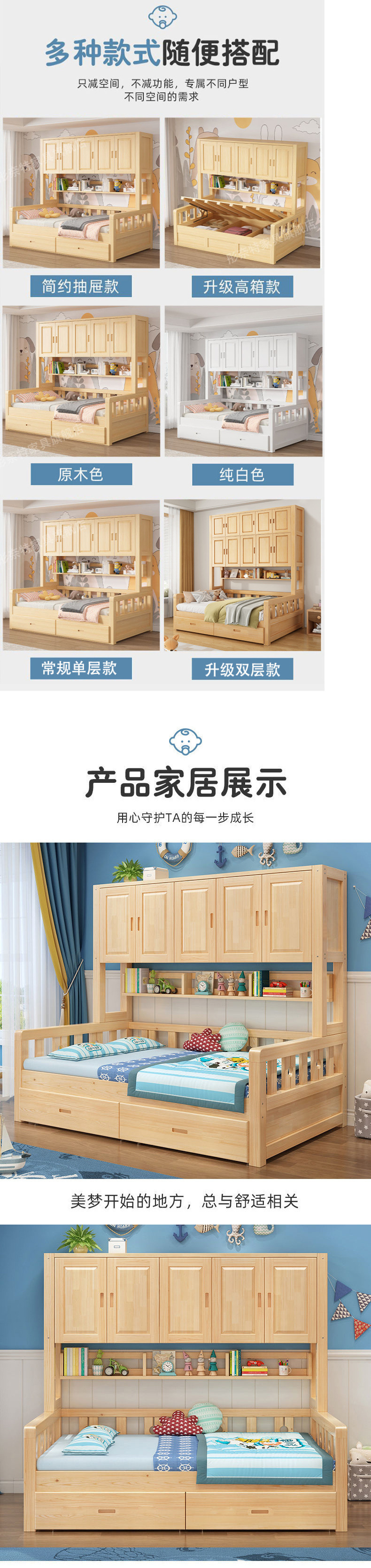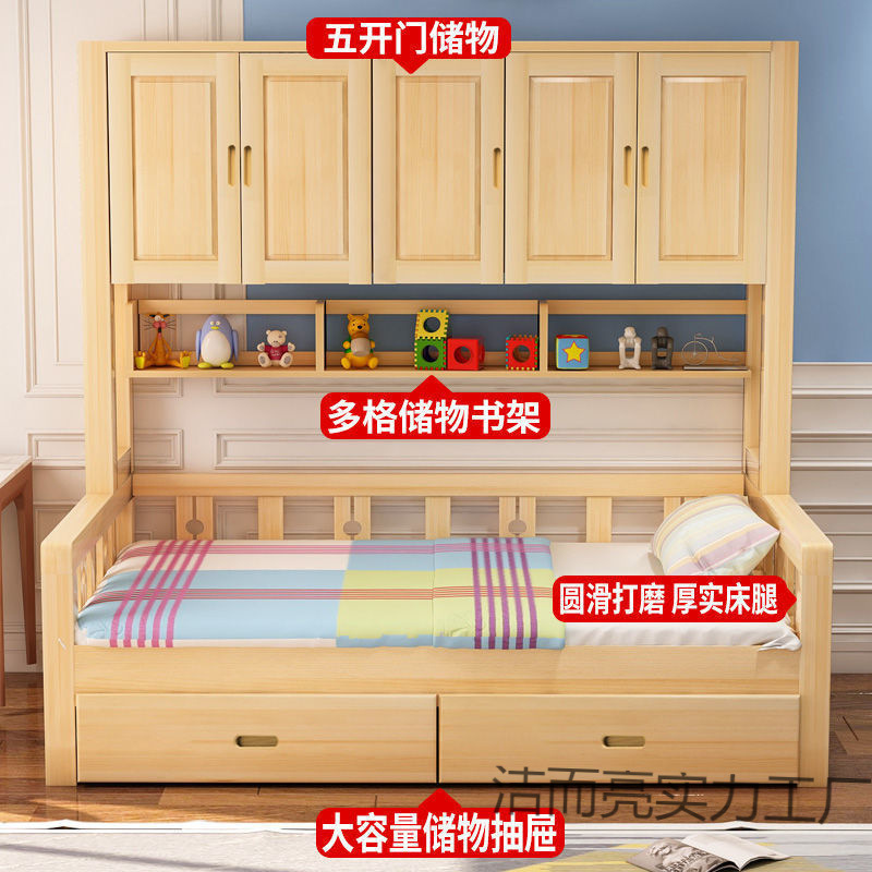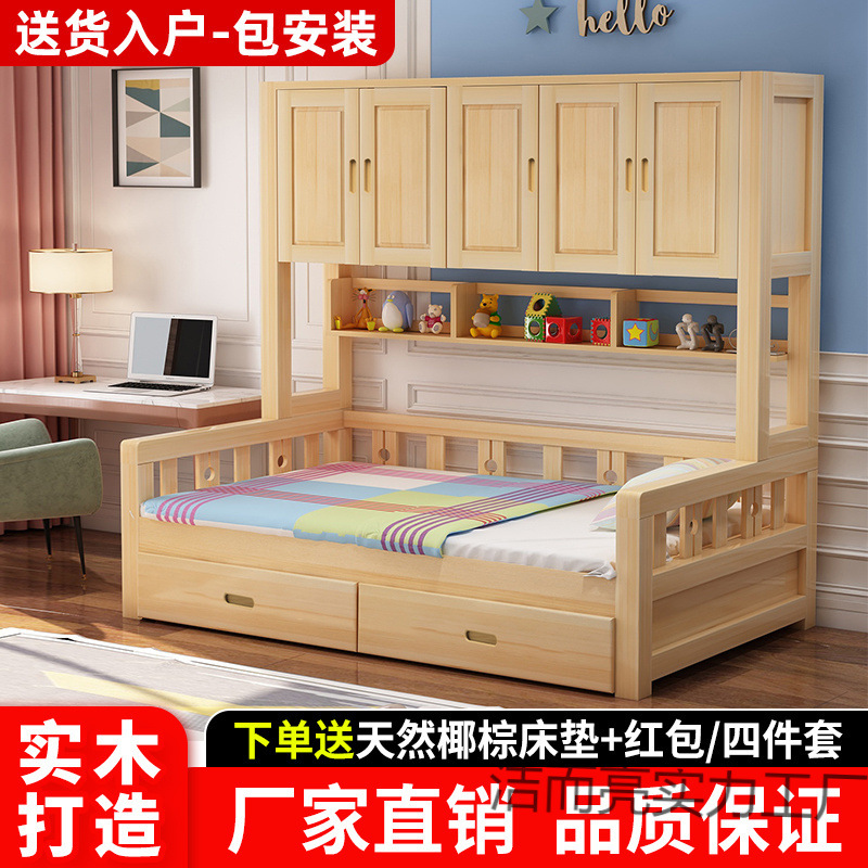 Детский шкаф-кровать татами с гардеробной из массива дерева с шкафом, многофункциональная комбинация, кровать для маленькой квартиры, шкаф, встроенная кровать