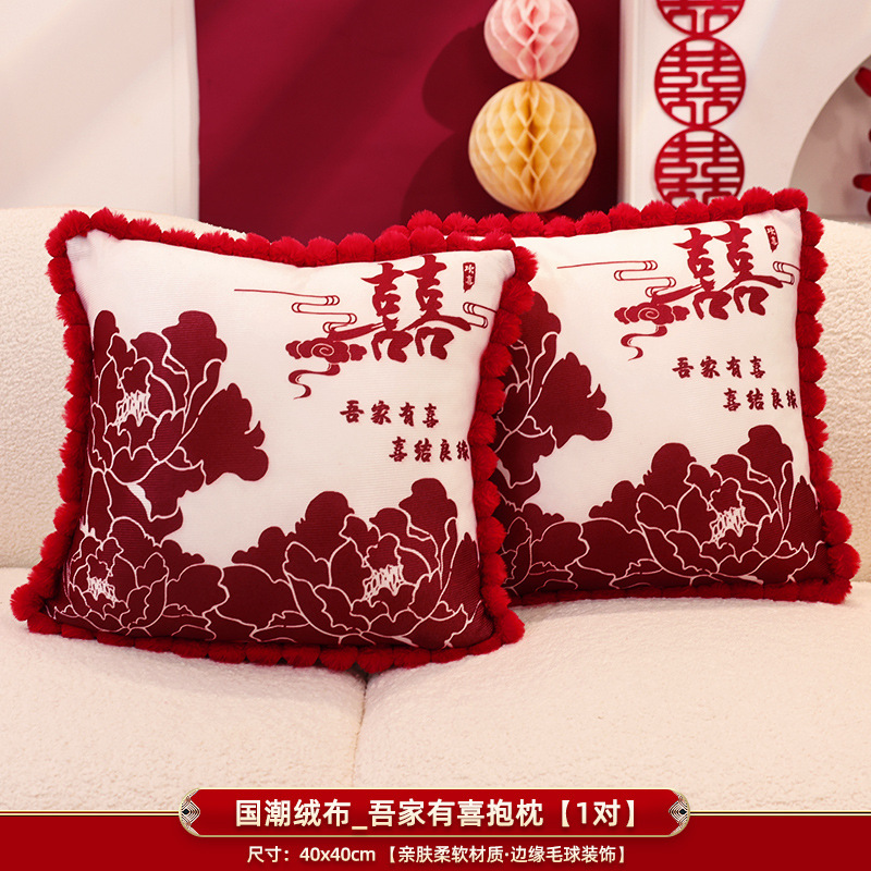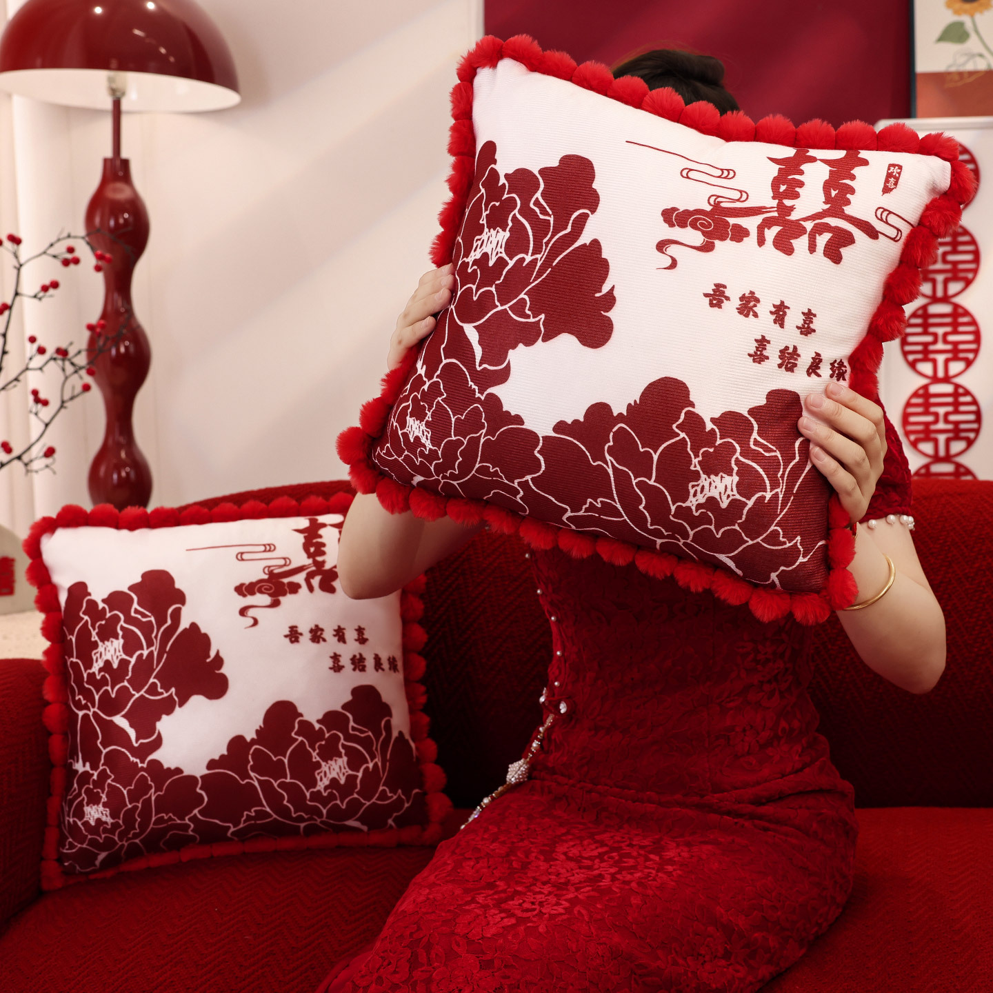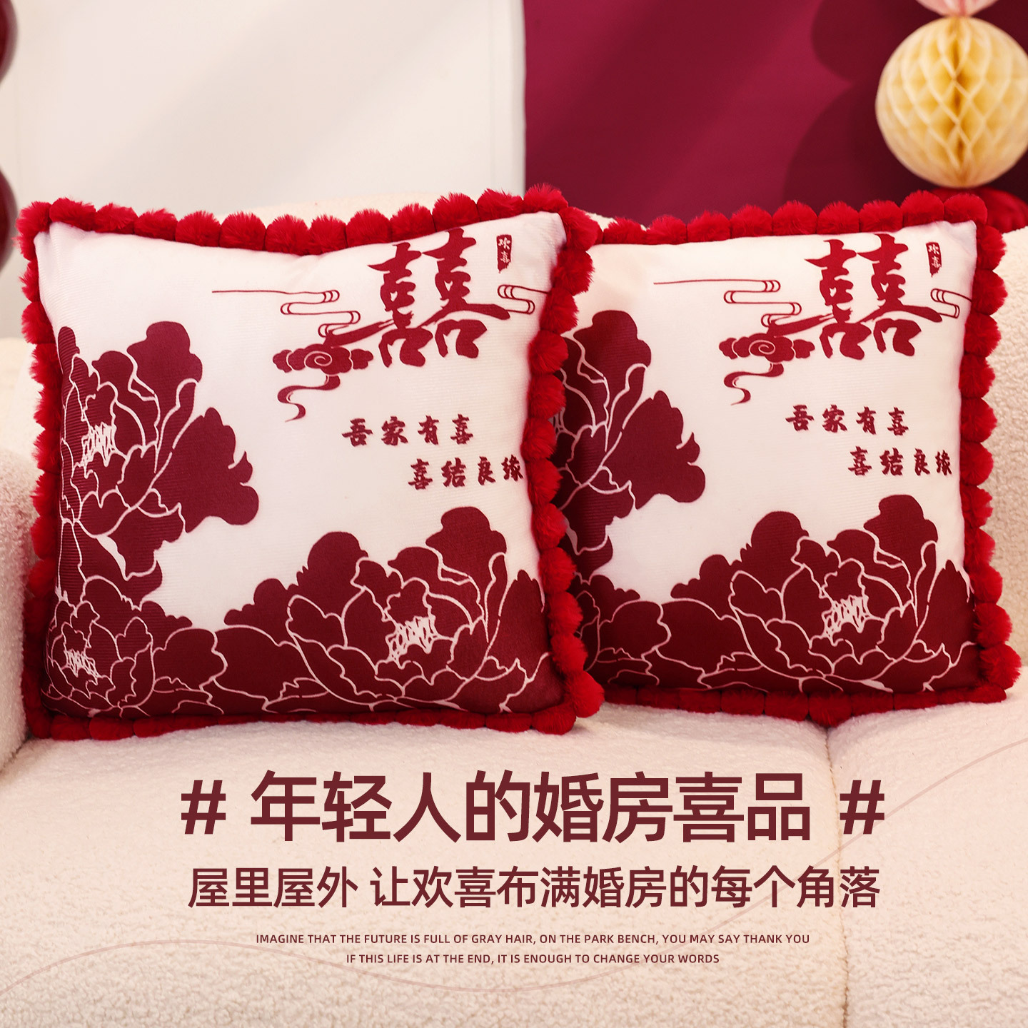 Свадебные подушки, пара красных 2025 новых свадебных комнат, кроватей, диванов, украшений для гостиной, спальни