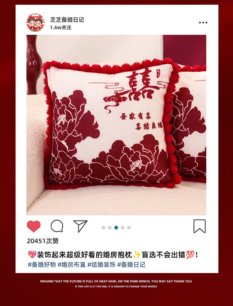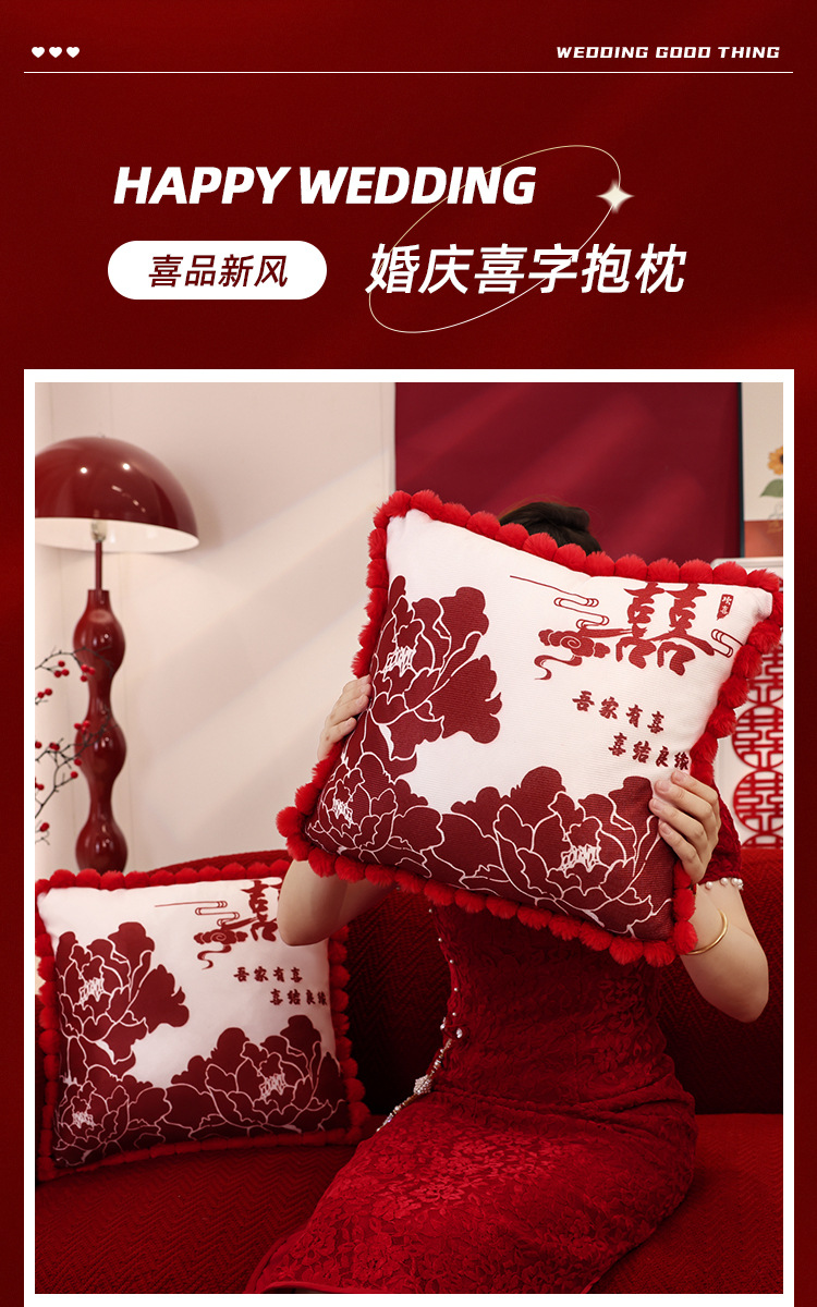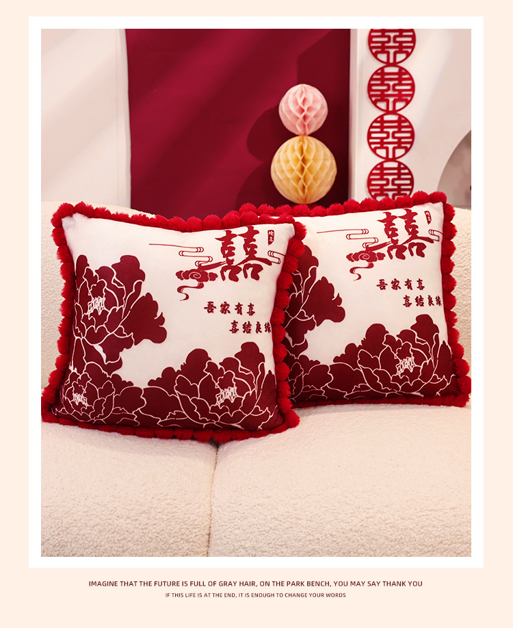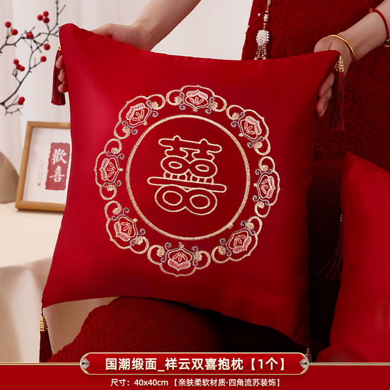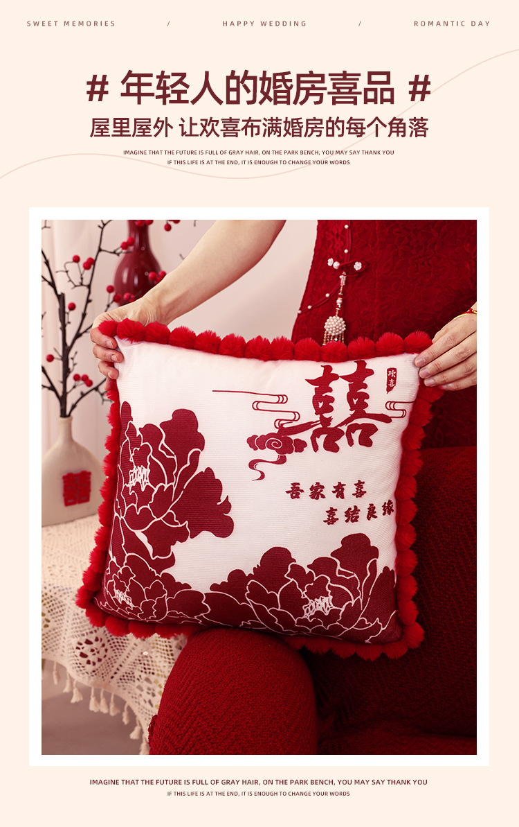 Свадебные подушки, пара красных 2025 новых свадебных комнат, кроватей, диванов, украшений для гостиной, спальни