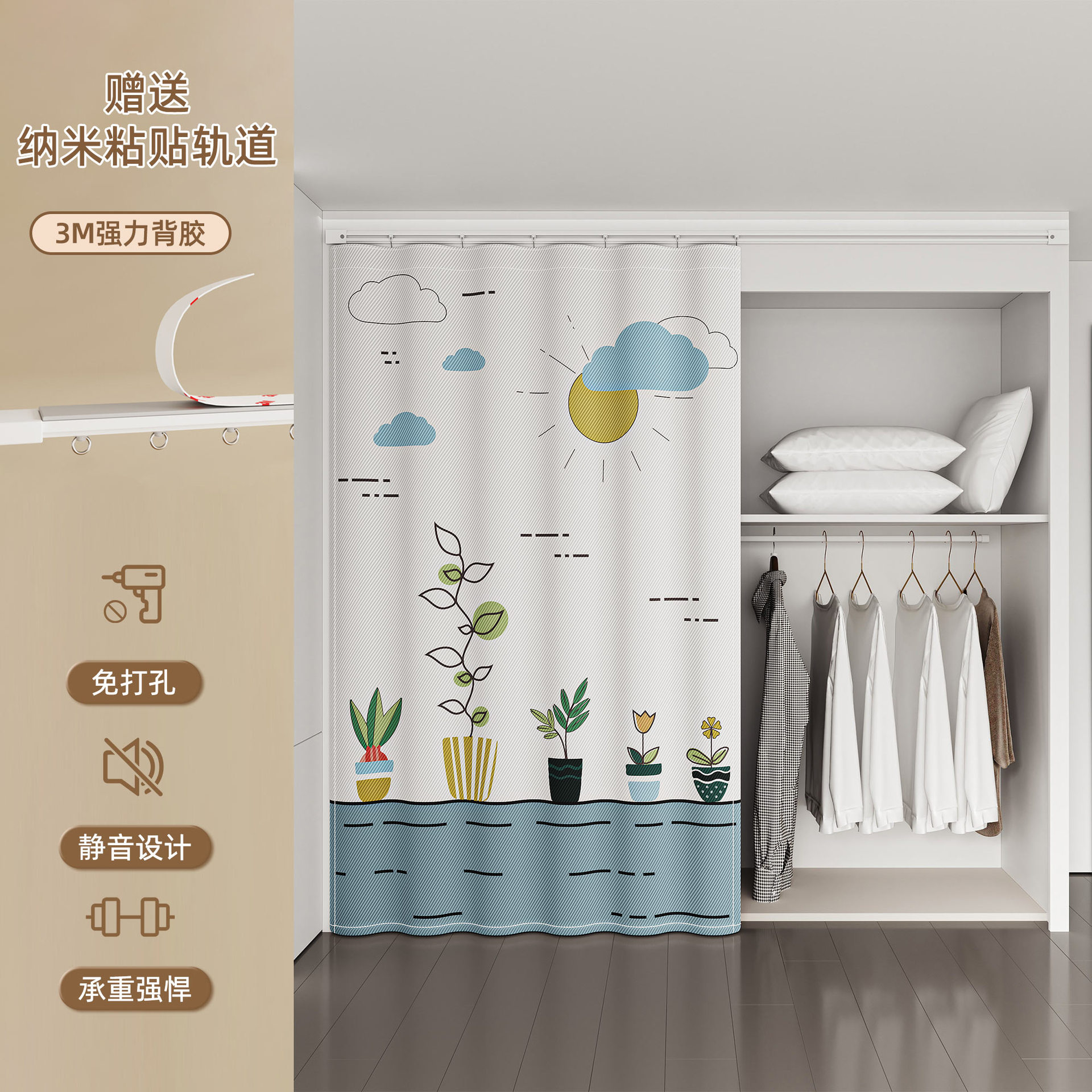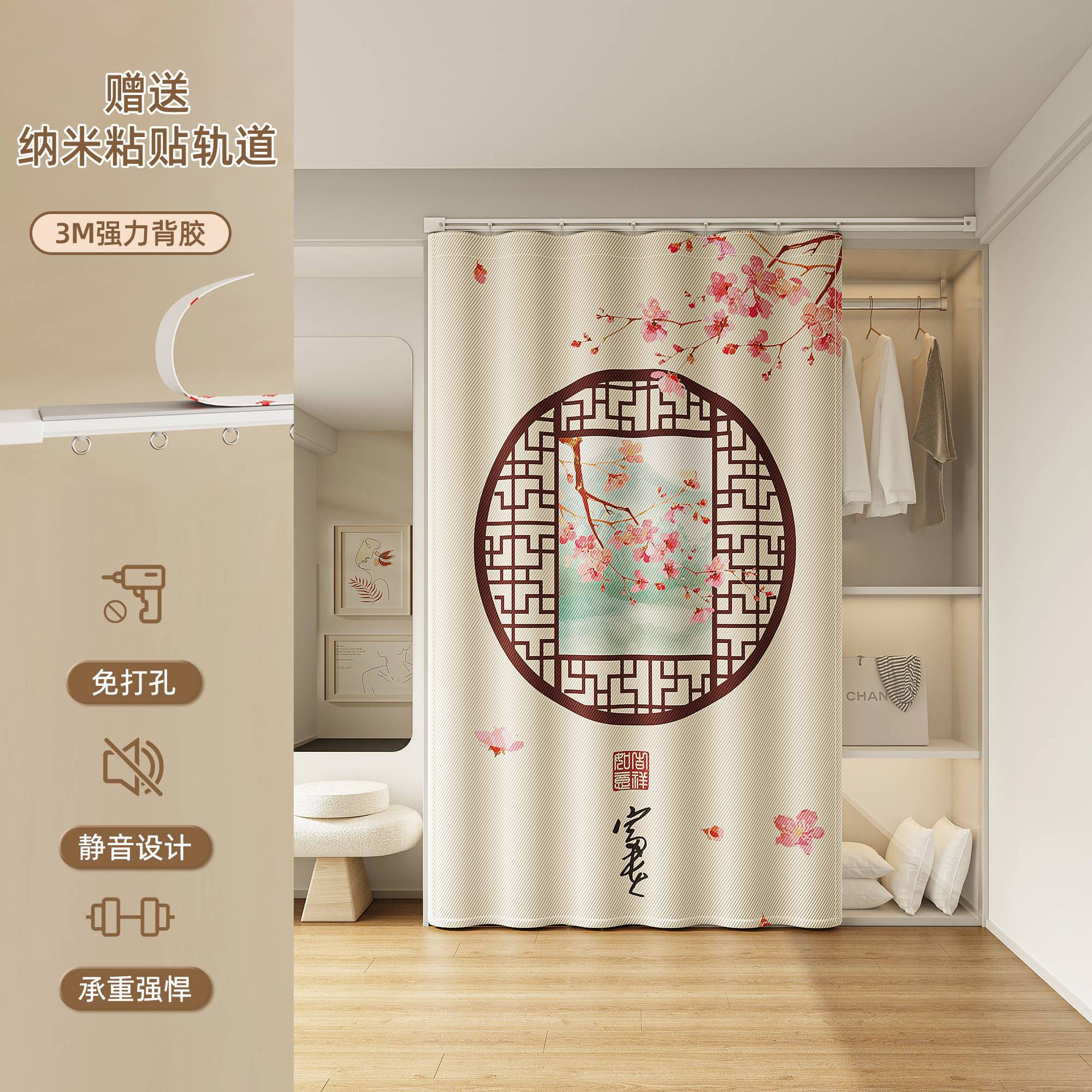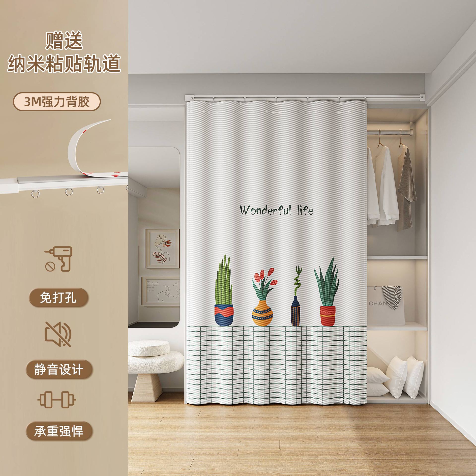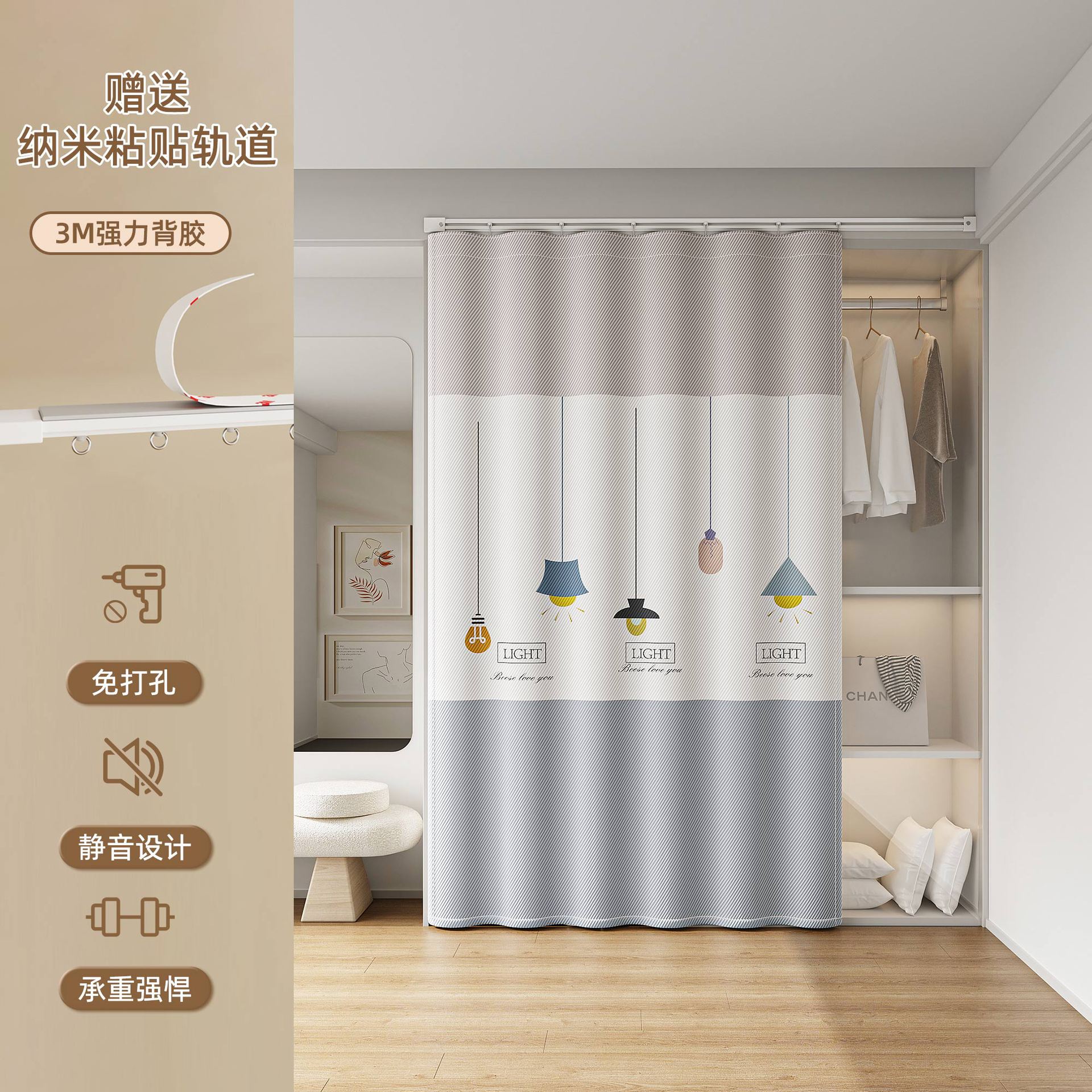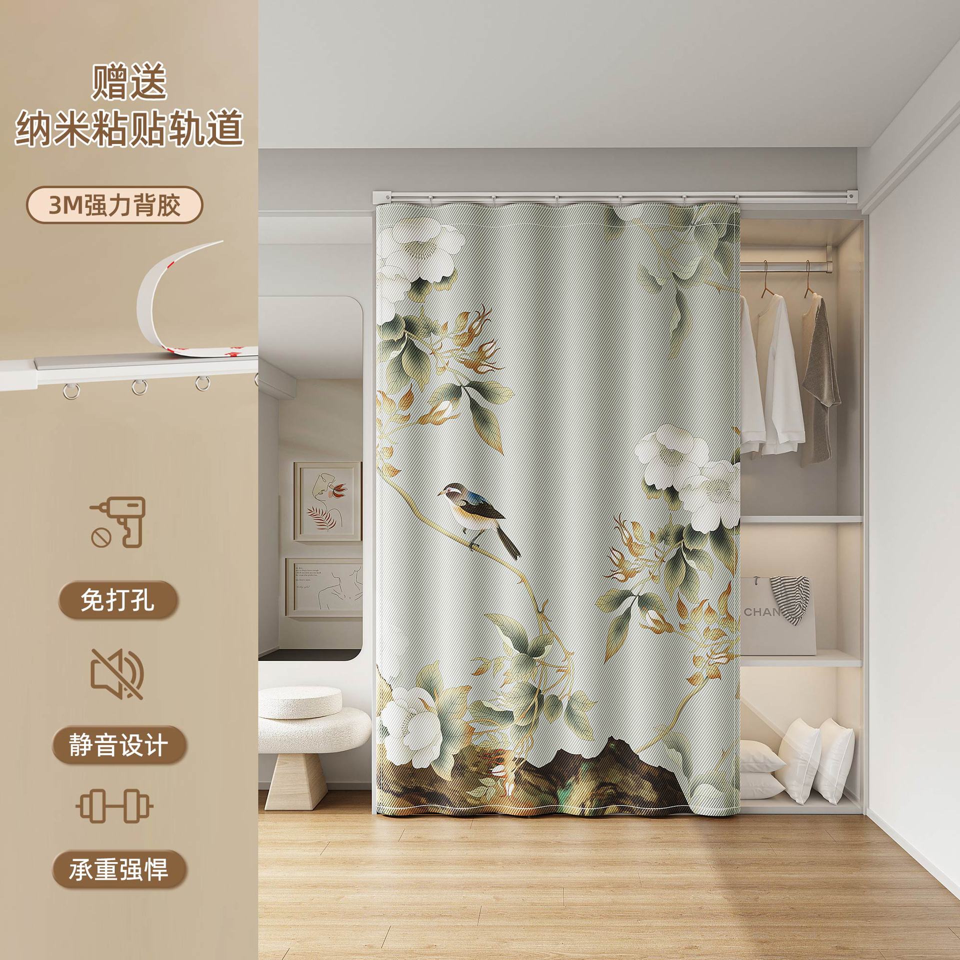 Штора для гардероба без двери, гардеробная, обувной шкаф, книжный шкаф, направляющая для шкафа, пылезащитная, без грязи, без перфорации, штора для открытой двери