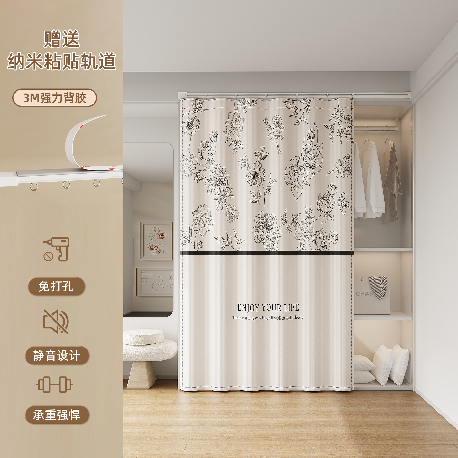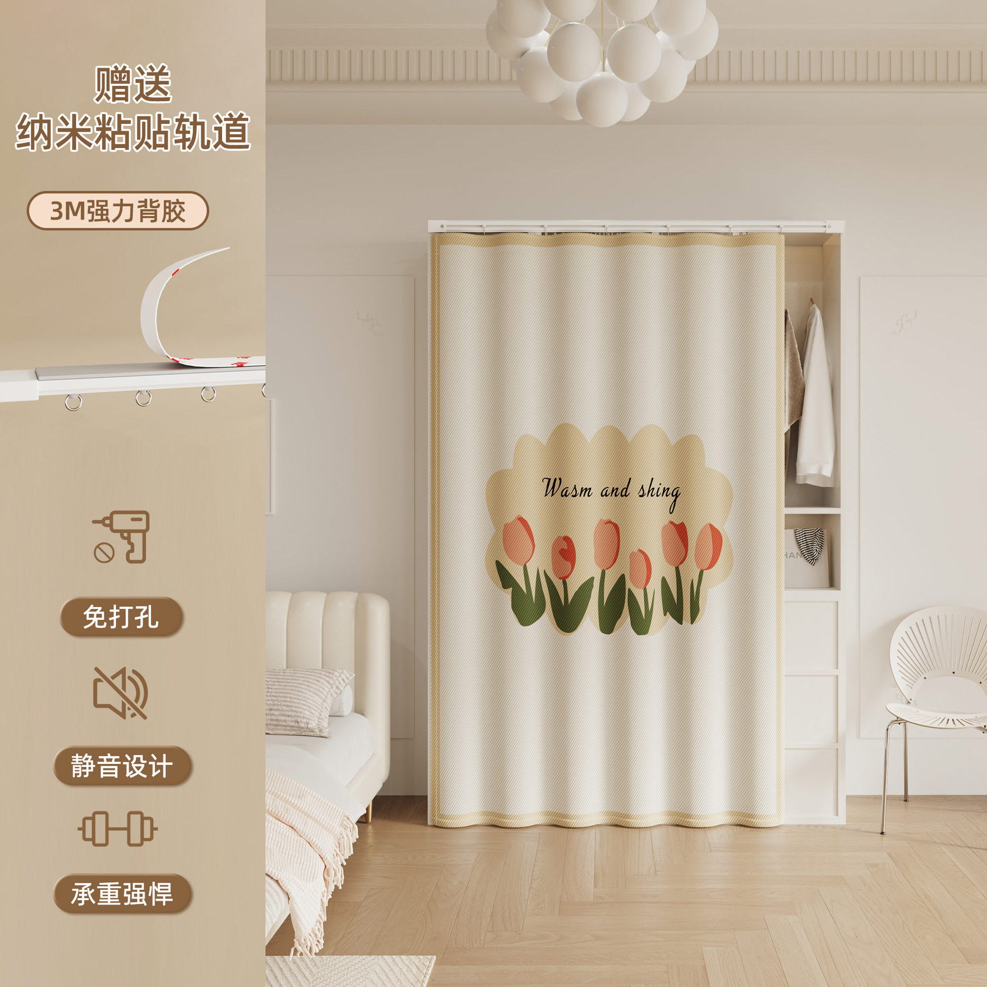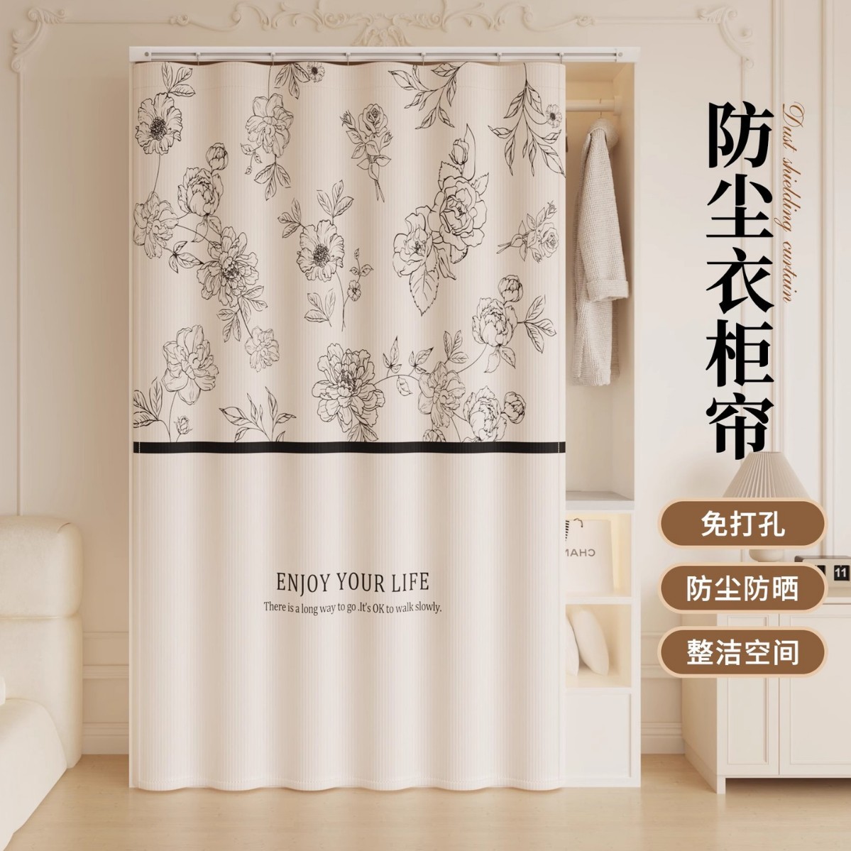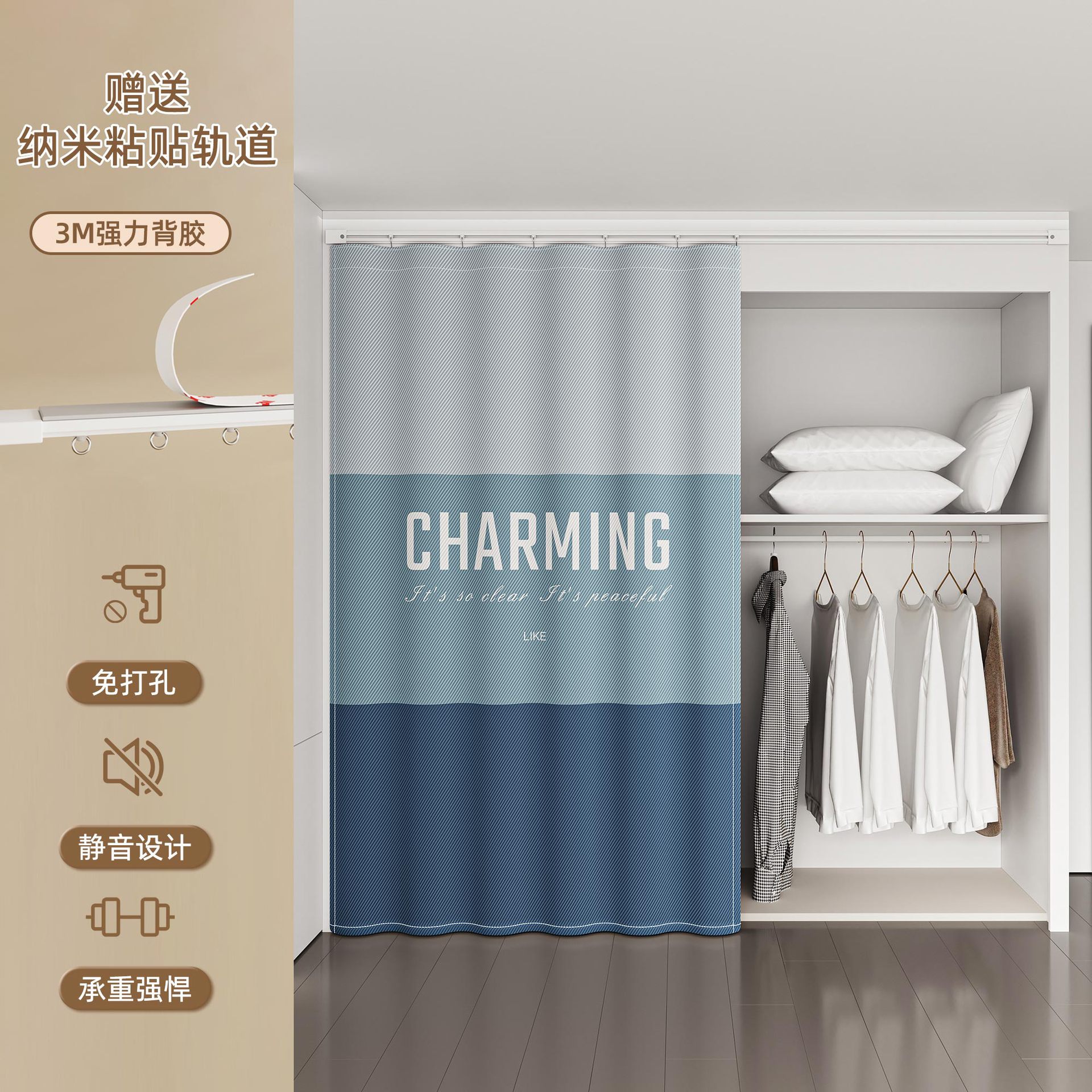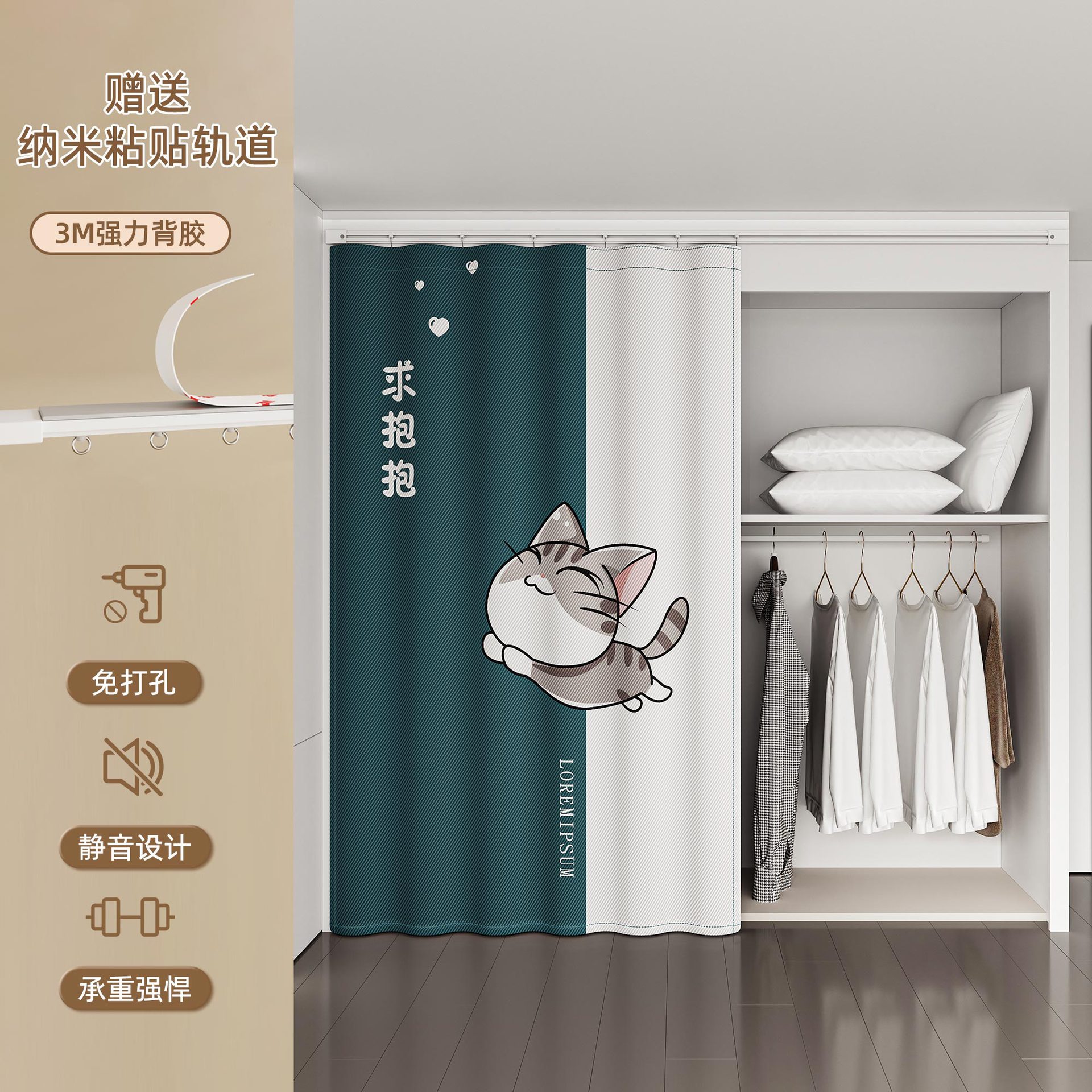 Штора для гардероба без двери, гардеробная, обувной шкаф, книжный шкаф, направляющая для шкафа, пылезащитная, без грязи, без перфорации, штора для открытой двери