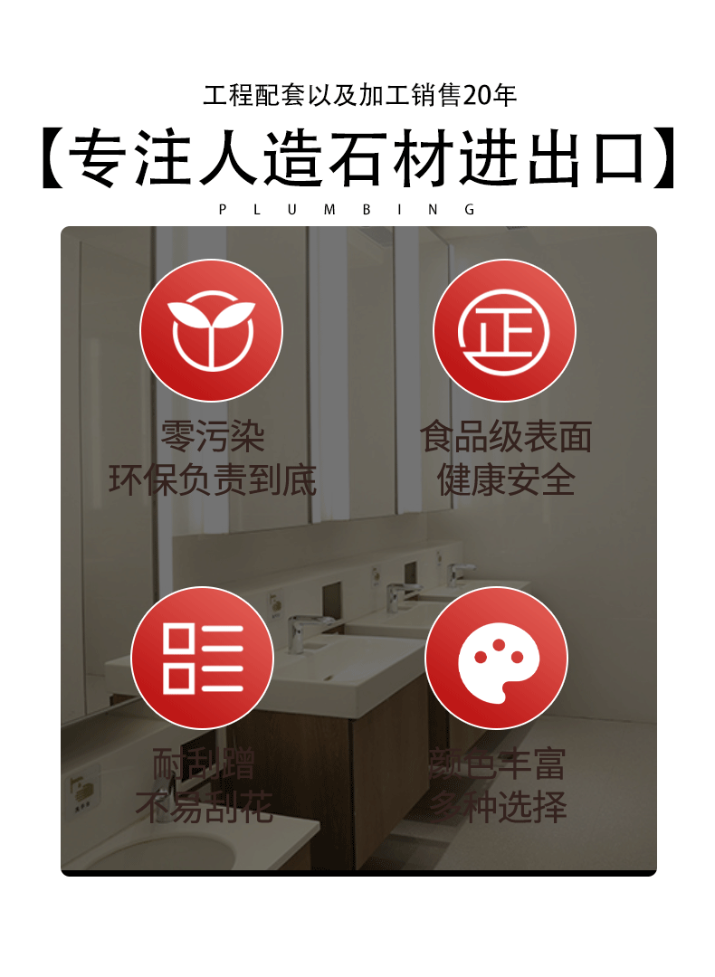 更值得信赖的是,我们有实力雄厚的人造石加工厂保驾护航,从设计到生产全程严控品质,确保每一件产品都符合你的期待;搭配实用的人造石修补膏,轻松解决日常使用中的细微损耗,让石材之美持久在线。