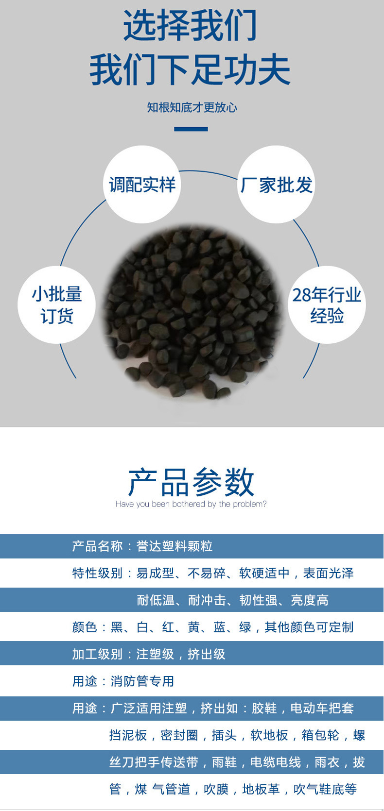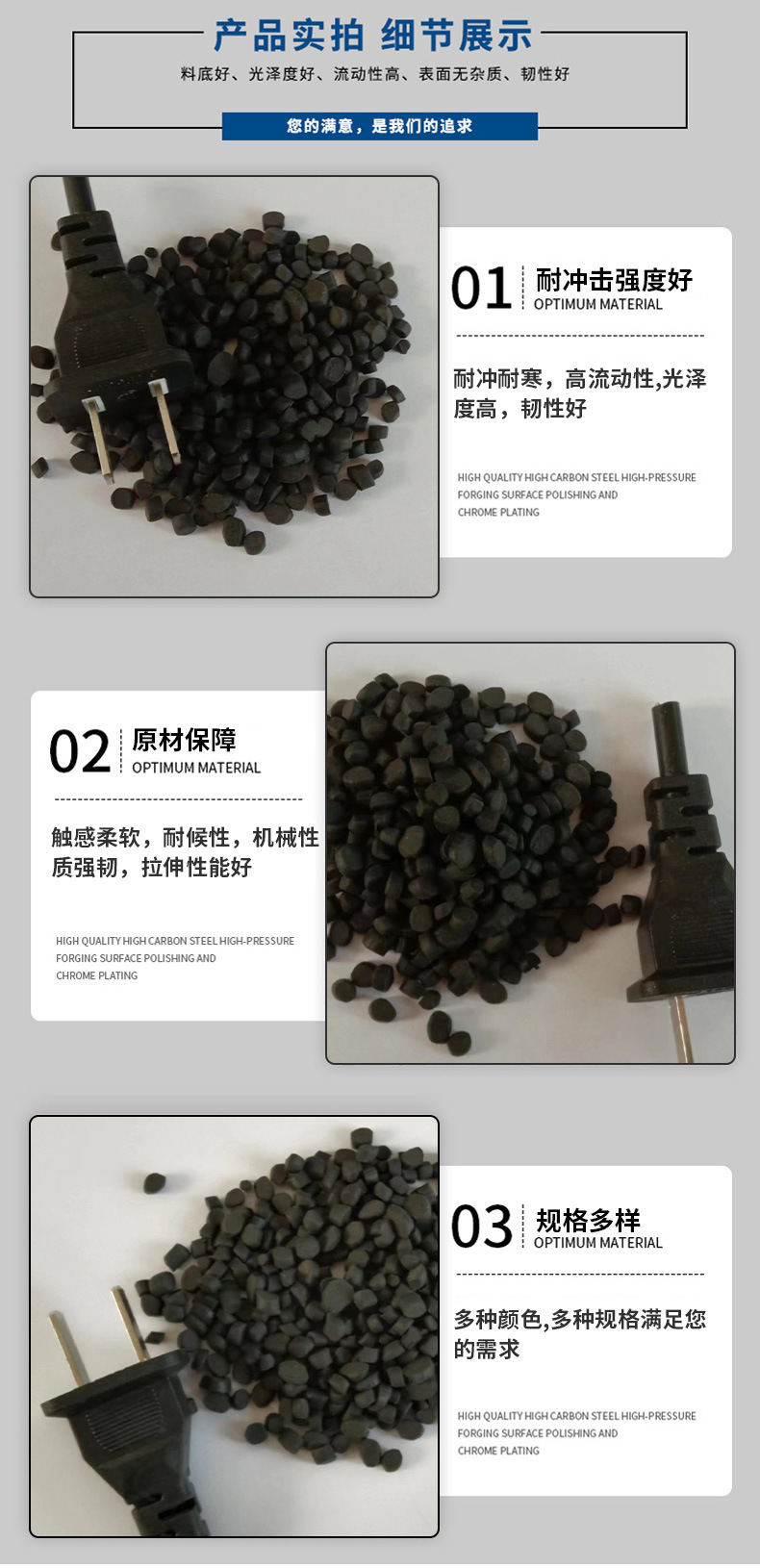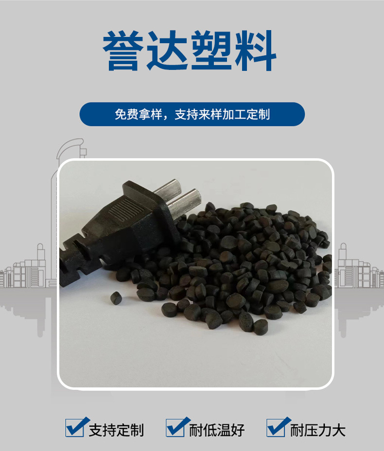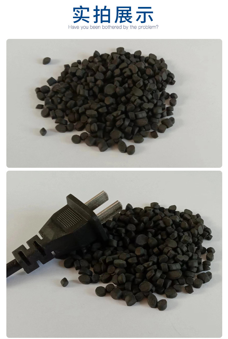 Огнестойкий материал для вилок-разъемов: гранулы ПВХ, экструзионный и инжекционный сорт, поливинилхлорид, мягкие черные гранулы из переработанного сырья.