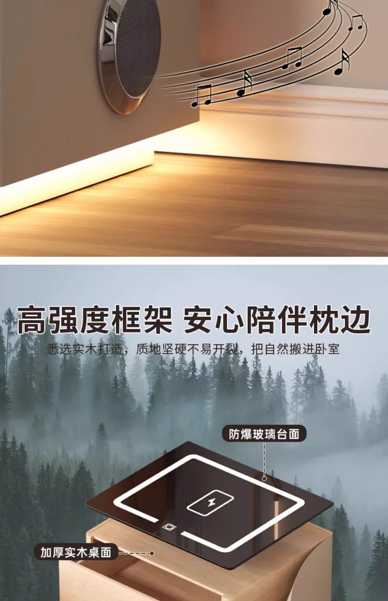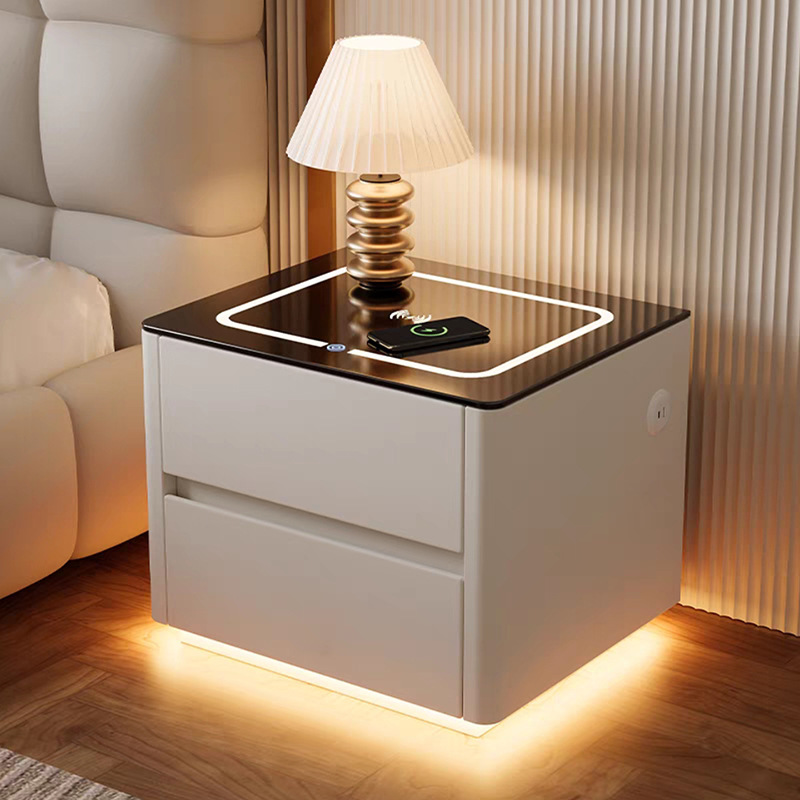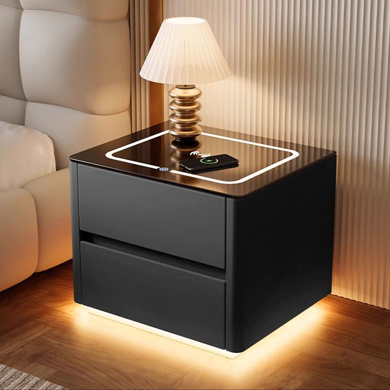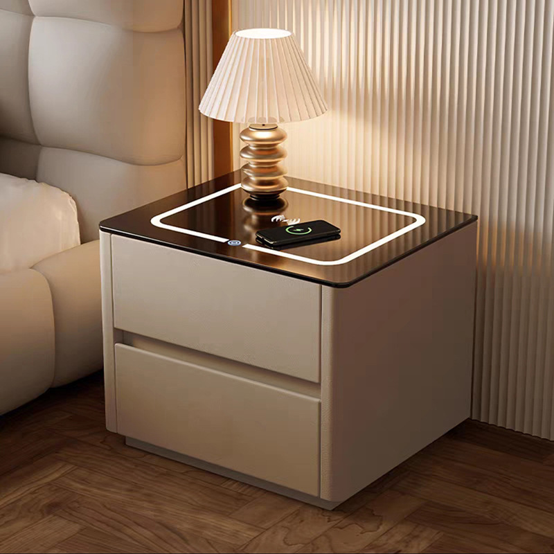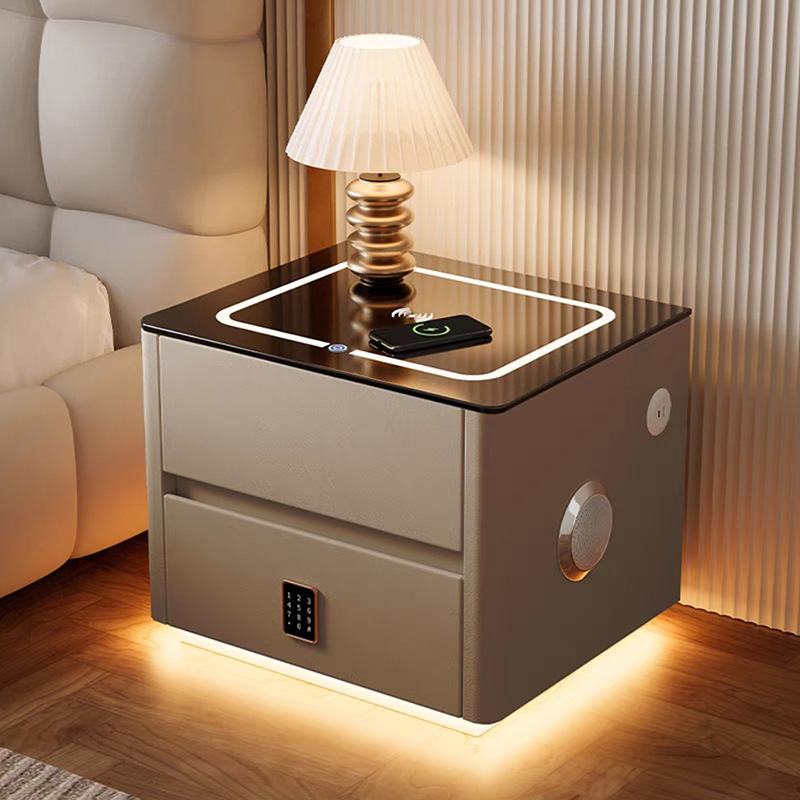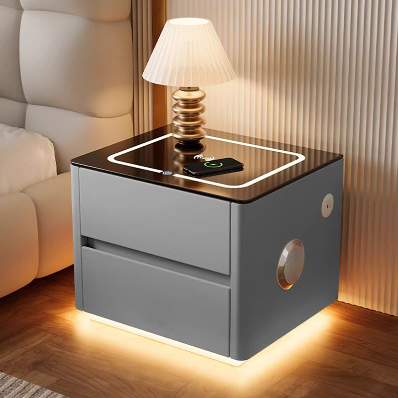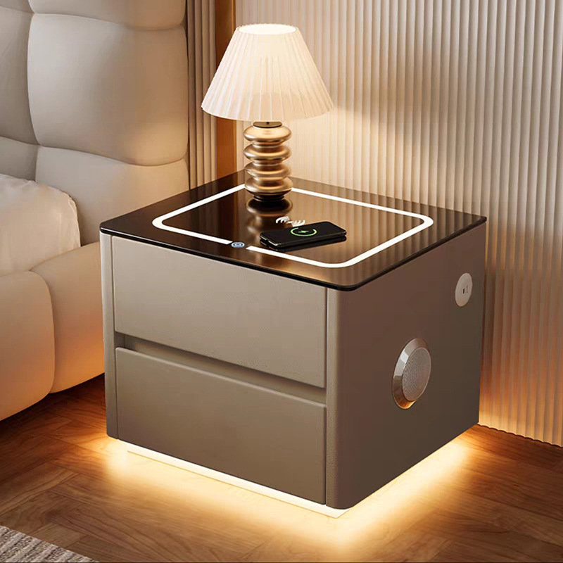 Умная прикроватная тумбочка для дома и спальни 2025 года, новый стиль, доступная роскошь, высококлассная компактная тумбочка с беспроводной зарядкой и аудиосистемой.