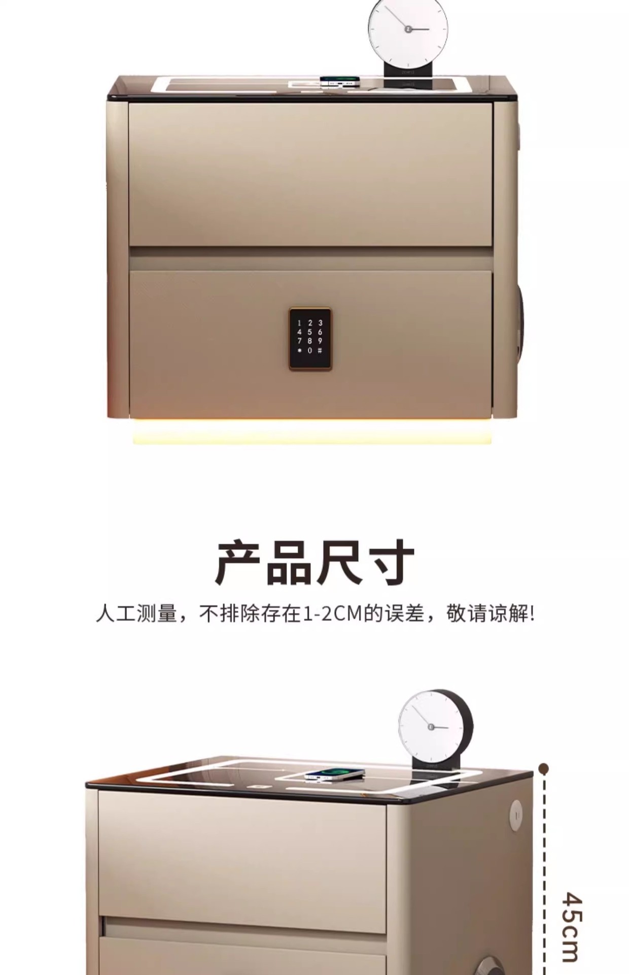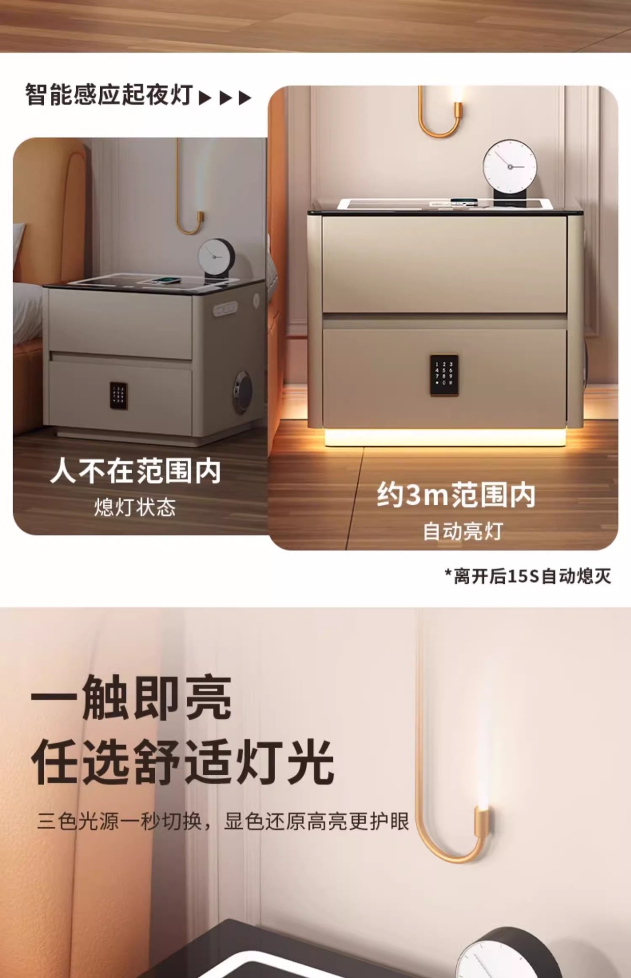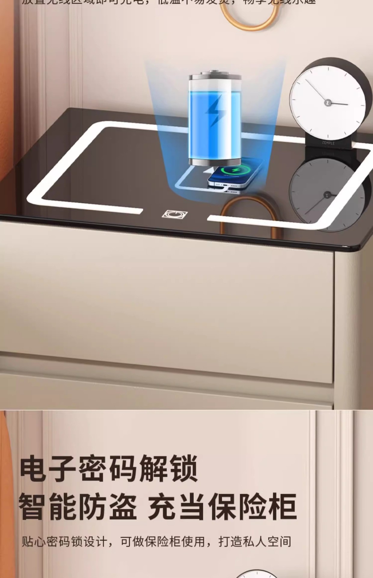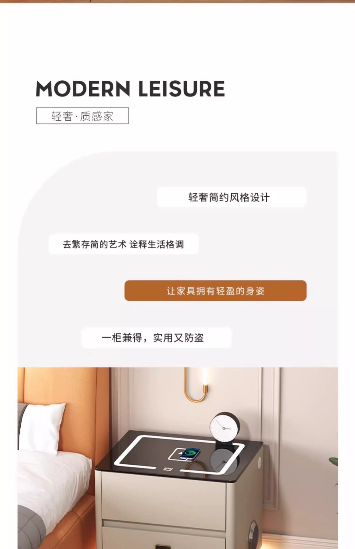 Умная прикроватная тумбочка для дома и спальни 2025 года, новый стиль, доступная роскошь, высококлассная компактная тумбочка с беспроводной зарядкой и аудиосистемой.