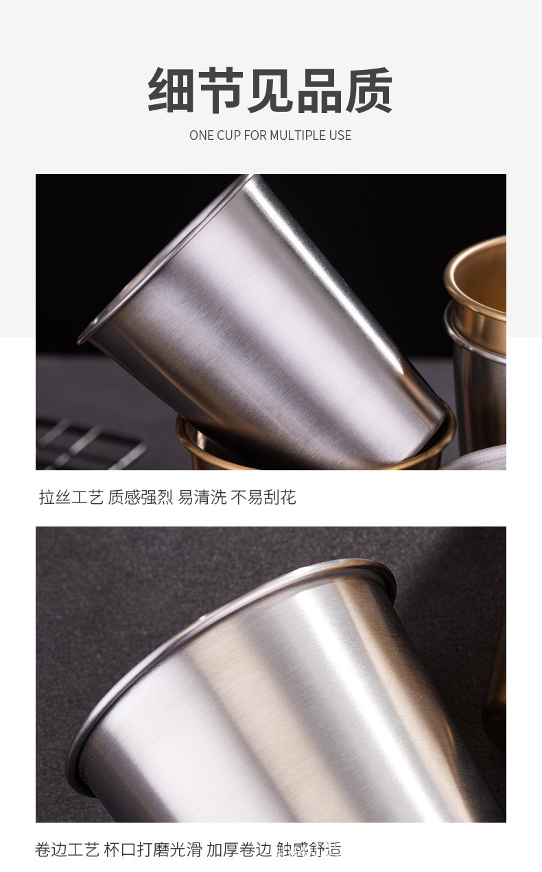 Чашка из нержавеющей стали 304, однослойная чашка для воды, пивная чашка, чашка для холодных напитков, чашка для ресторана, чашка для сока, чашка против падения, может быть изготовлена по индивидуальному заказу с логотипом