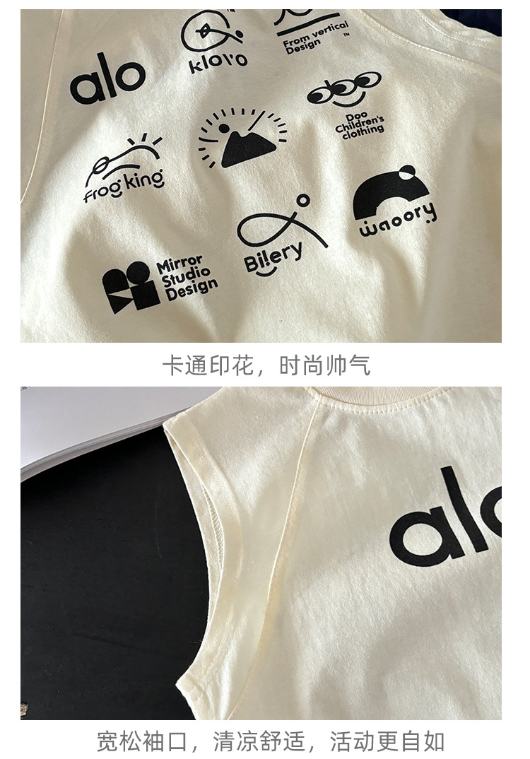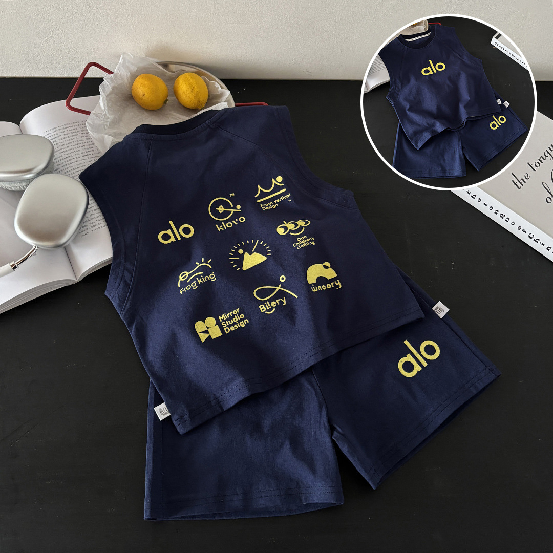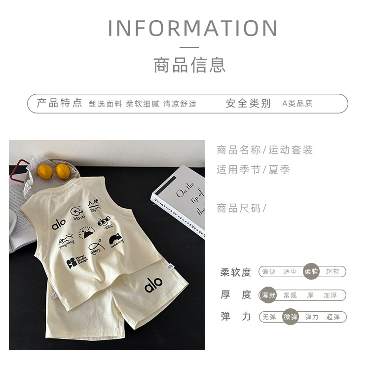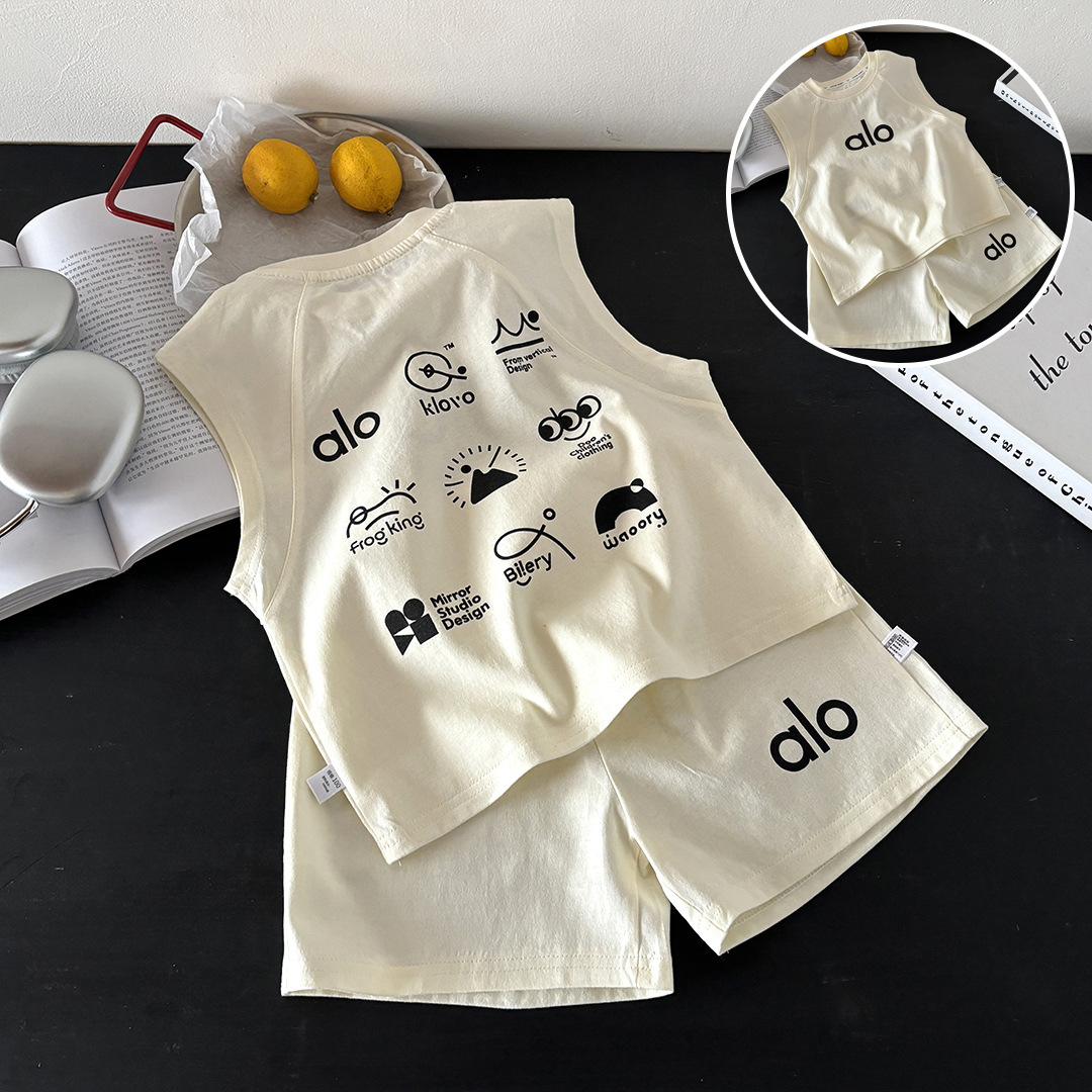 Летний комплект жилета без рукавов в корейском стиле из чистого хлопка, уличный жилет для мальчиков и девочек + шорты, комплект из двух предметов