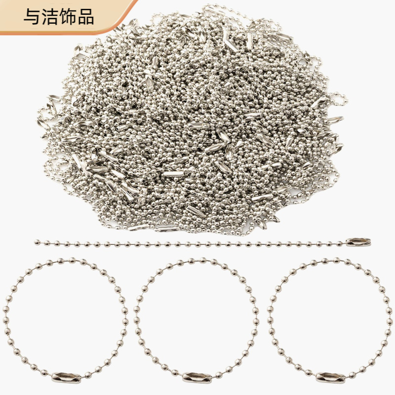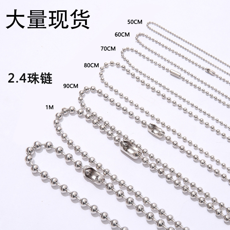 Цепочка для бирки производителя, оптовая продажа, DIY ювелирные изделия, брелок для ключей, 2,4 мм, серебряная цепочка из бисера, материал, железная цепочка из бисера, цепочка для ожерелья