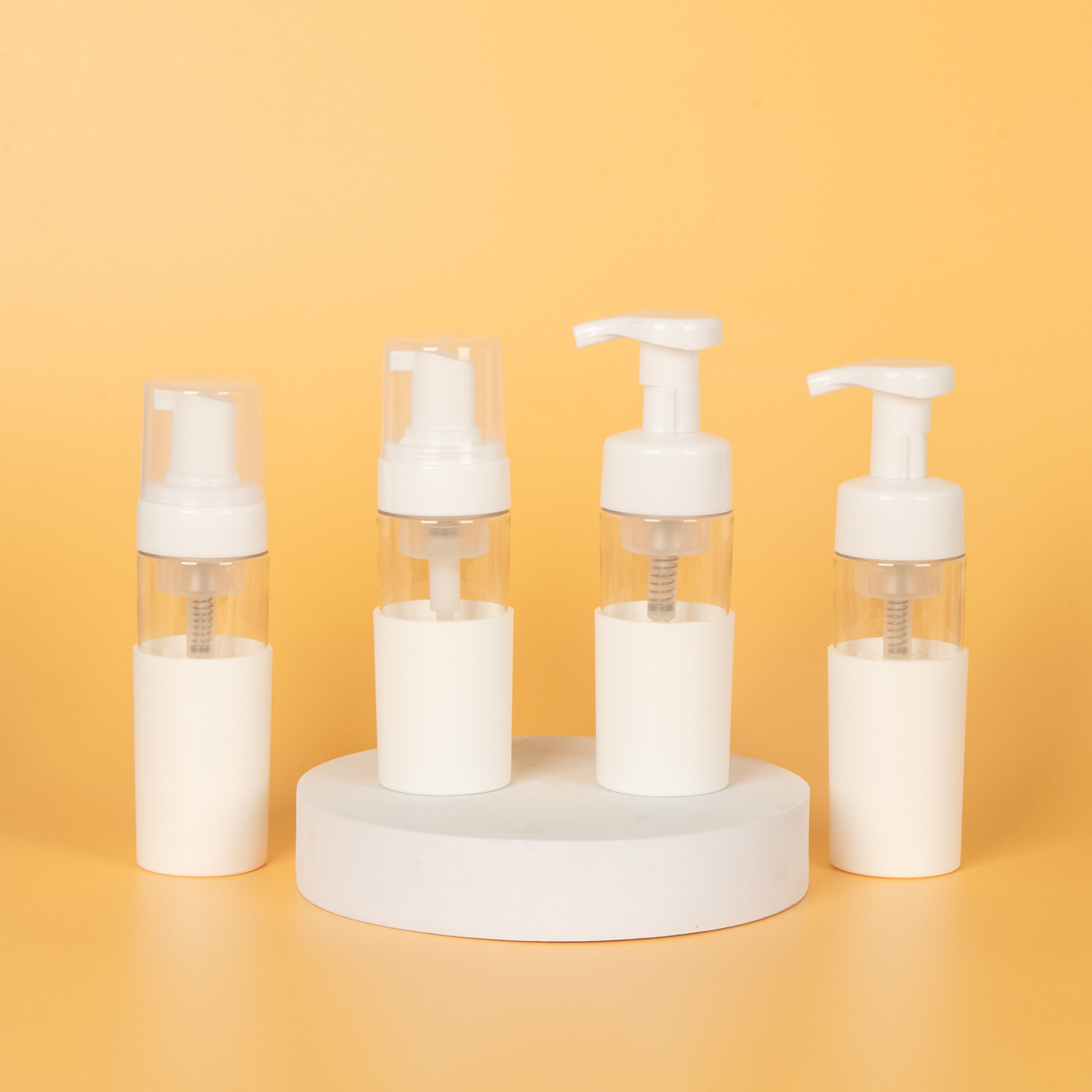 Прозрачная бутылка + головка пенопластового насоса с крышкой (модель второго поколения, модернизированная); Прозрачная бутылка + пенопластовая головка с зажимом (модернизированная модель второго поколения)