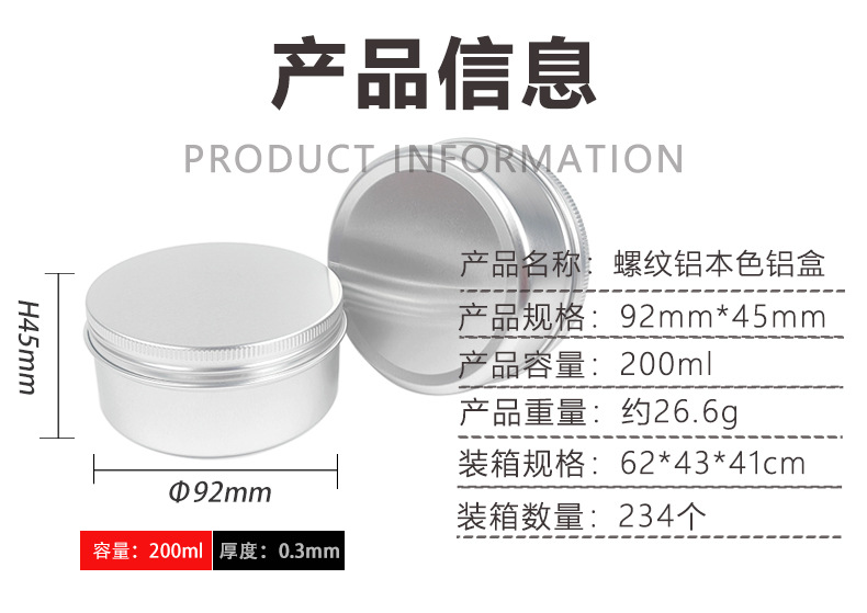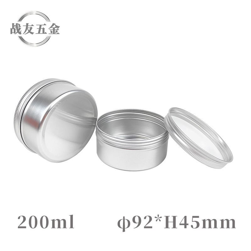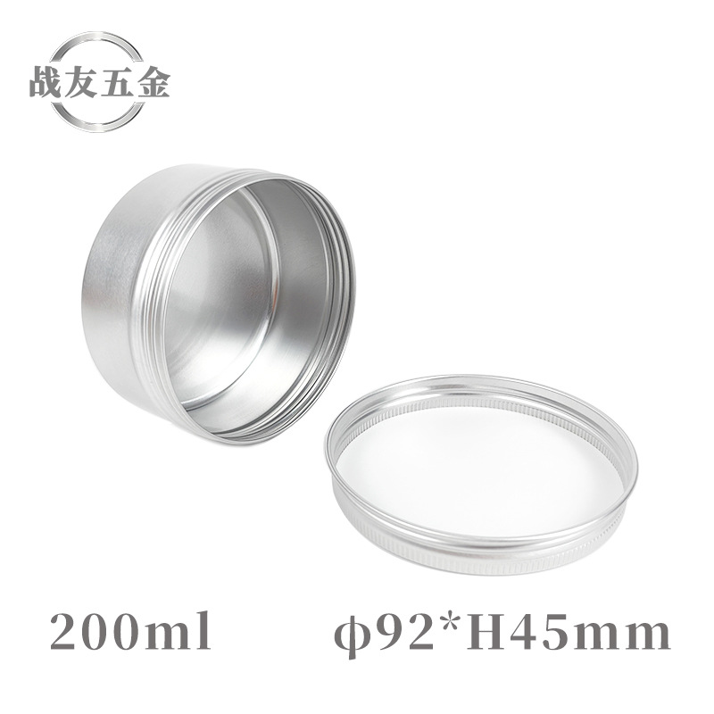 Металлическая алюминиевая коробка 92*45 мм с резьбой, серебряного цвета, круглая, для пасты, воска, чая, герметичная, 200 г/мл