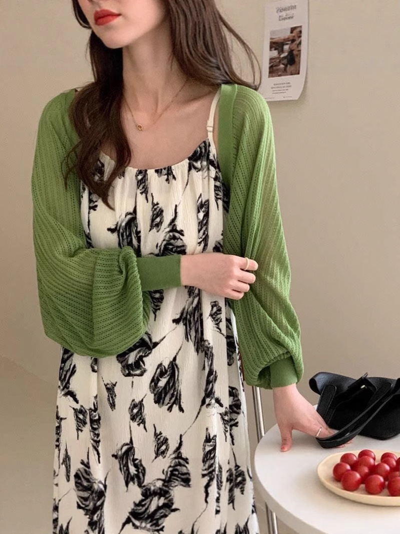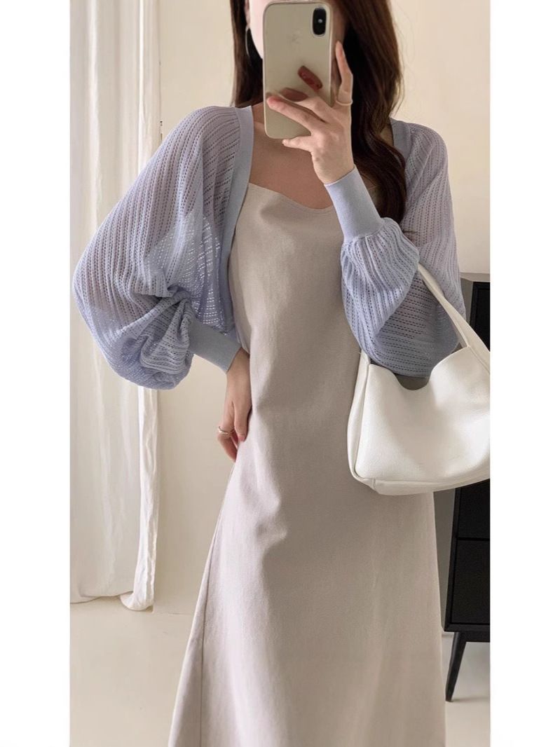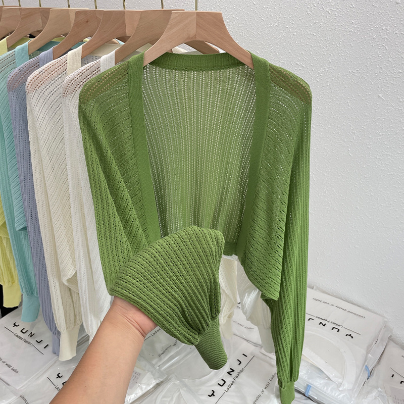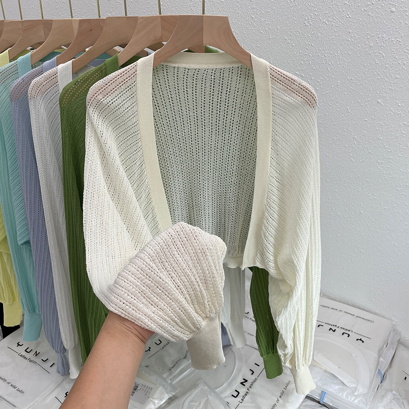 Женская летняя блузка 2025 года, тонкая, свободного кроя, с короткими рукавами-фонариками, защита от солнца, трикотажный кардиган, маленькая куртка