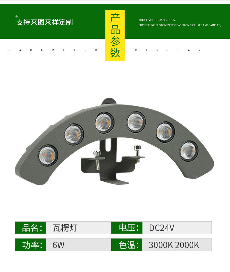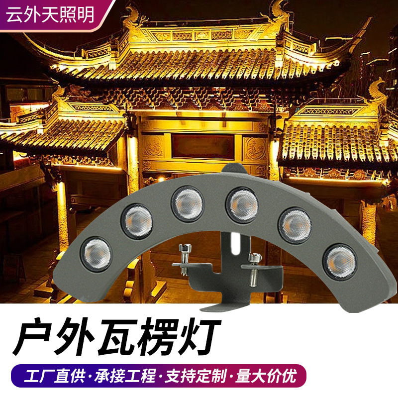 Светодиодный гофрированный светильник на заказ, 6 Вт, древнее здание, павильон, B & B, плиточная лампа, освещение крыши храма, лампа в форме полумесяца