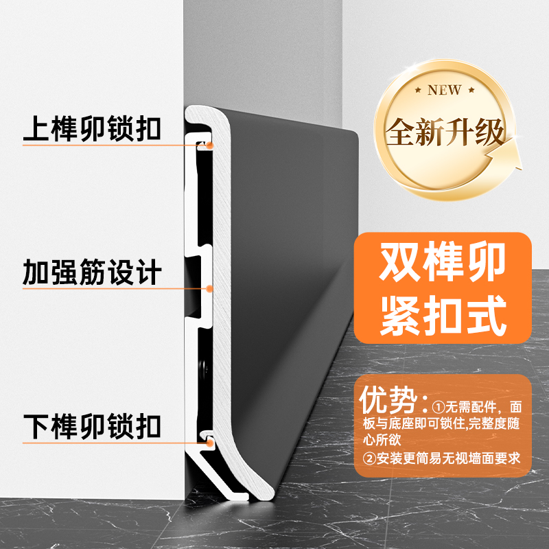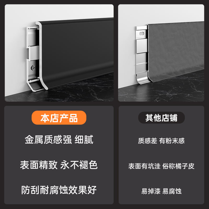 Плинтус из утолщенного алюминиевого сплава, защелкивающийся плинтус из черной нержавеющей стали, изогнутая металлическая полностью алюминиевая самособираемая угловая линия.