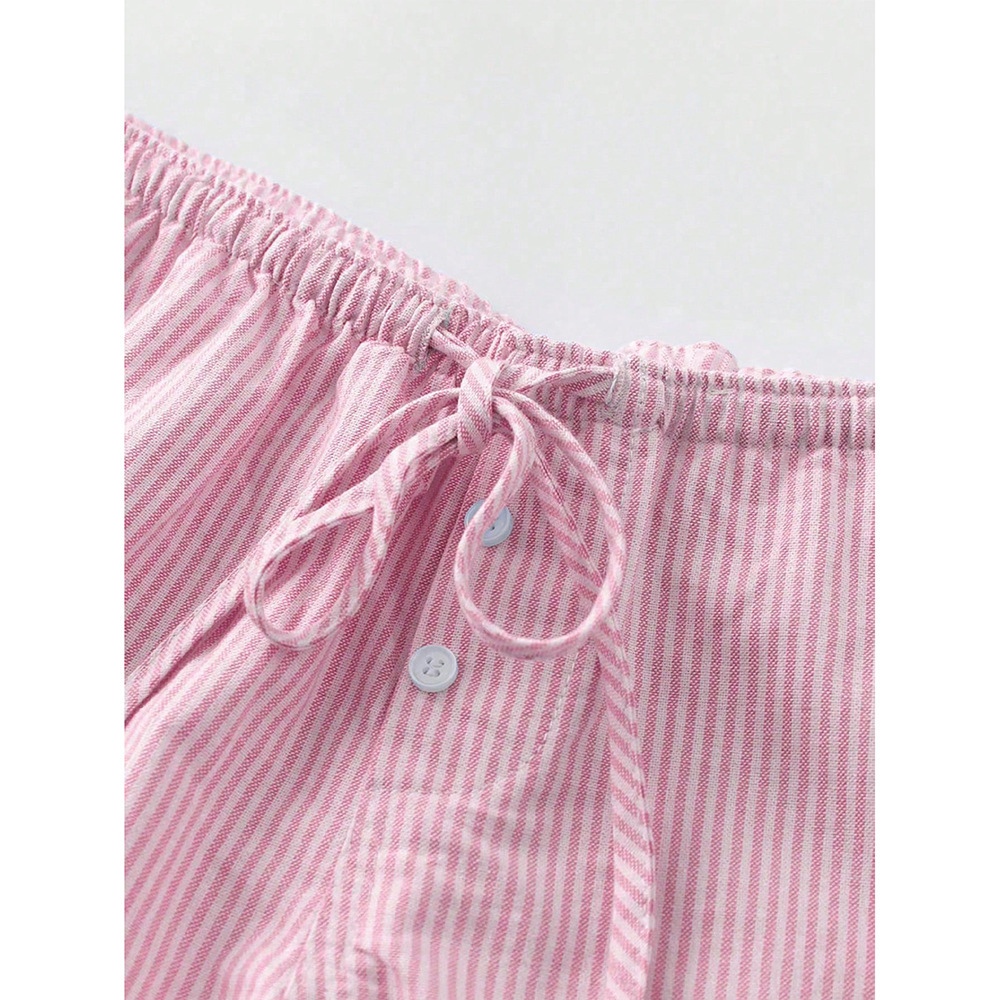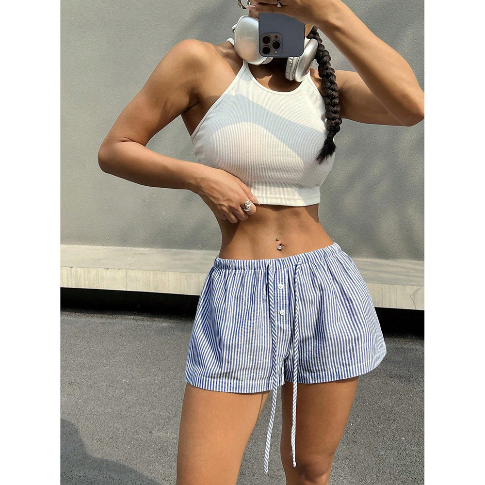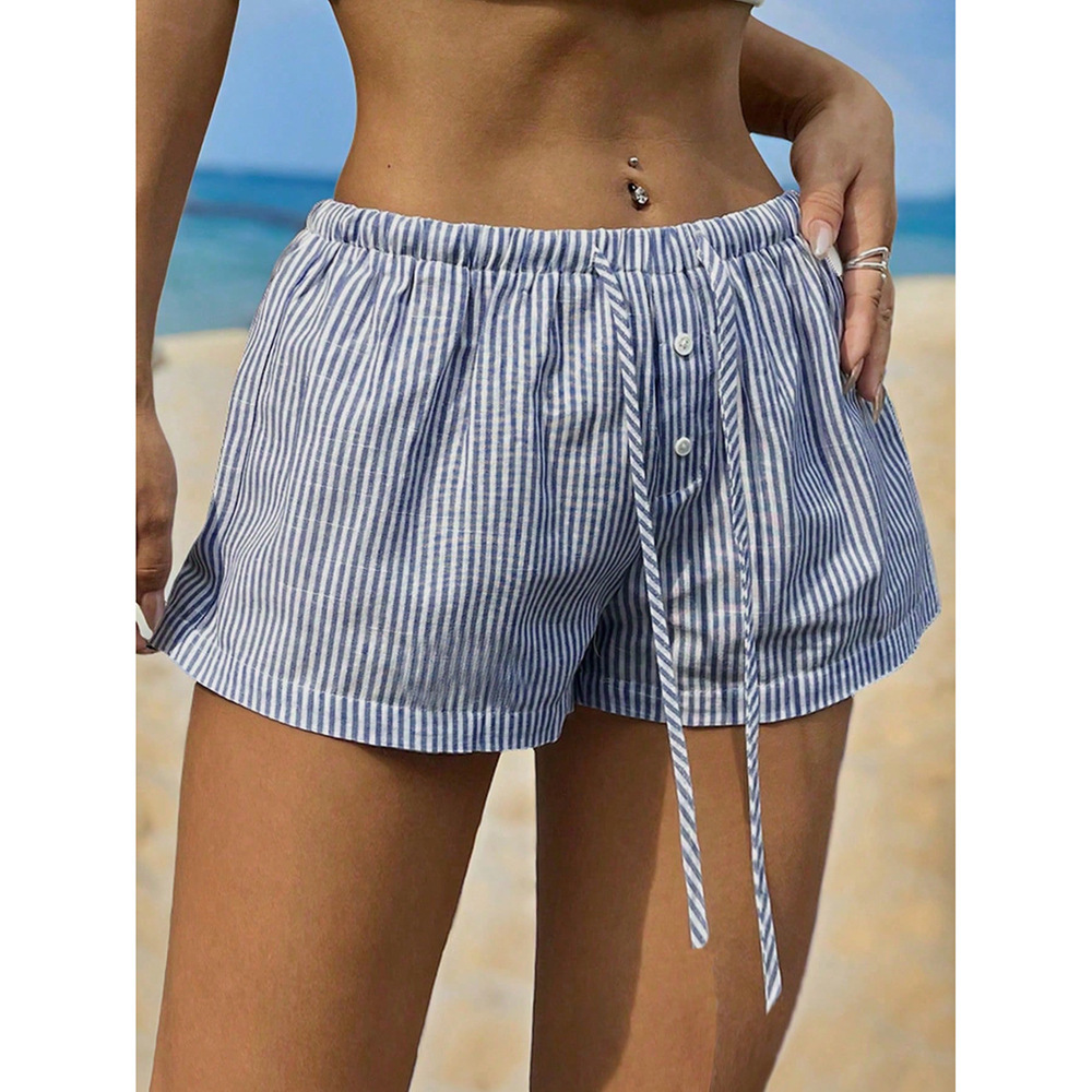 2025 Европейская и американская мода базовые нишевые полосатые женские повседневные шорты летние домашние свободные трендовые для трансграничной внешней торговли