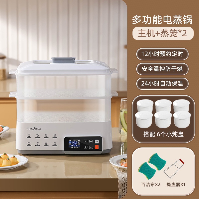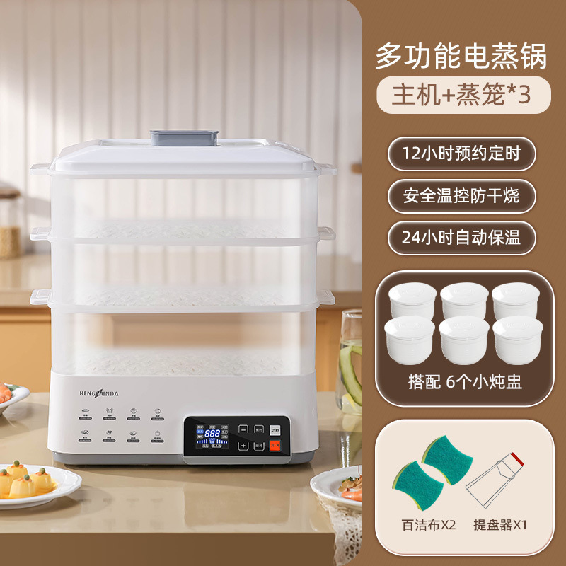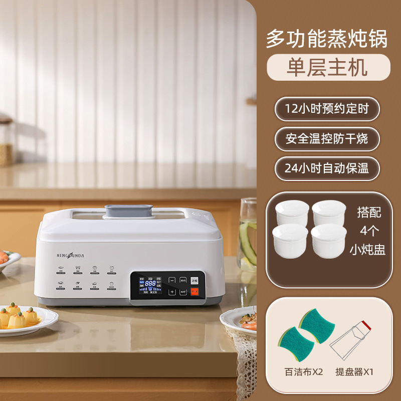 Керамическая кастрюля для тушения с водоотделителем для домашнего использования, подходит для четырех-шести человек, с корзиной для пароварки, многофункциональной электрической пароваркой и кастрюлей для тушения.
