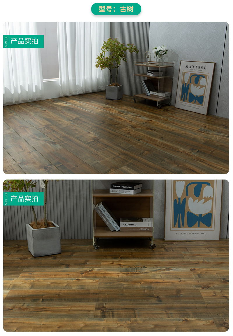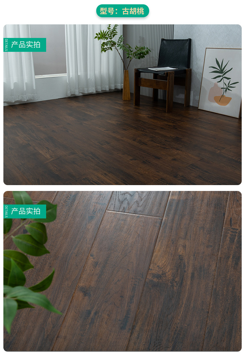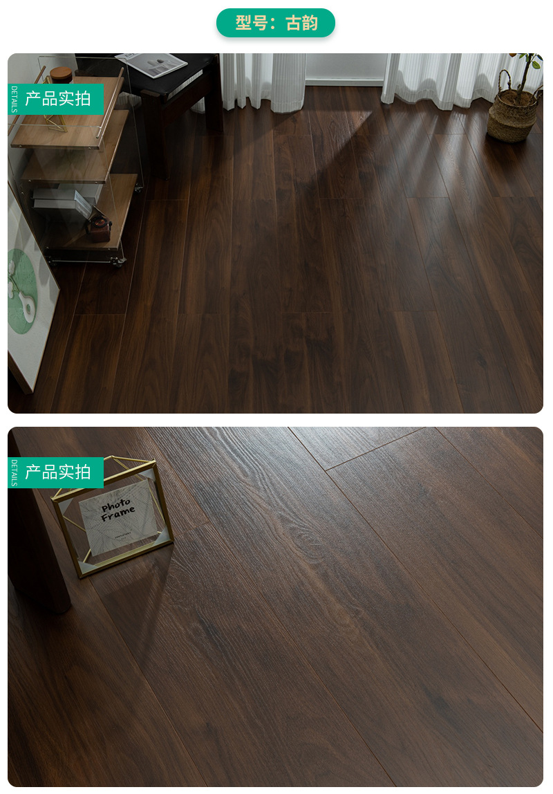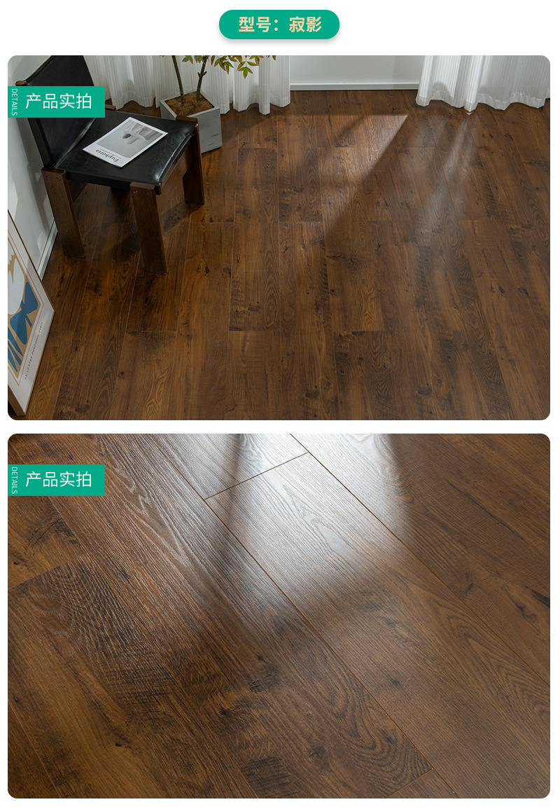 中古侘寂风强化复合地板 12mm复古锯齿纹锁扣耐磨家装强化木地板