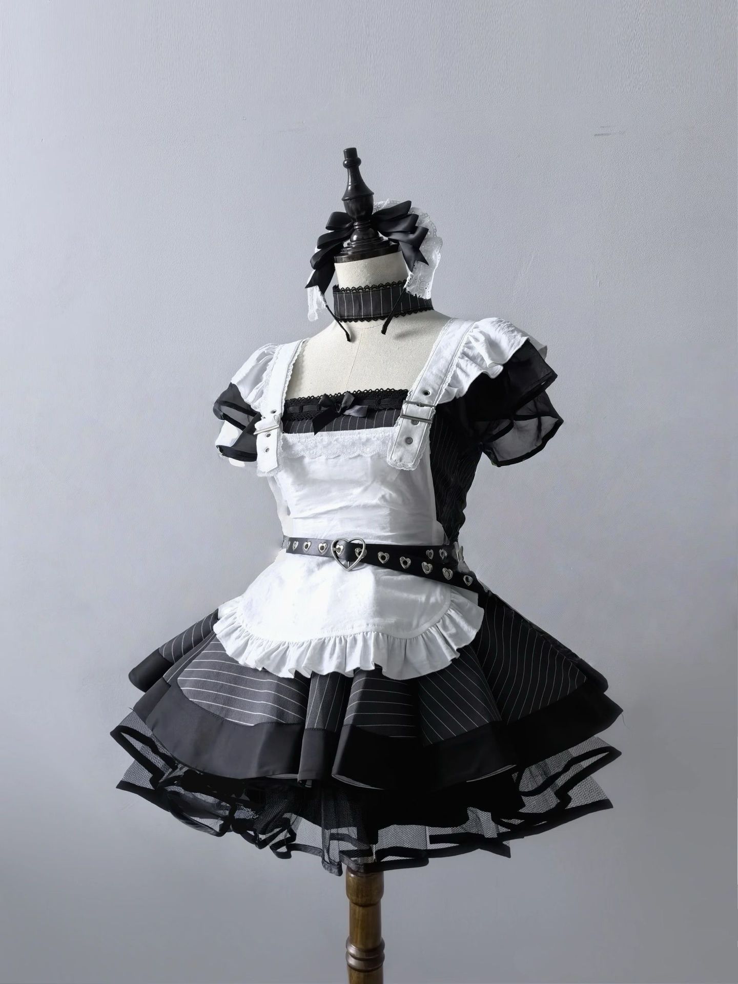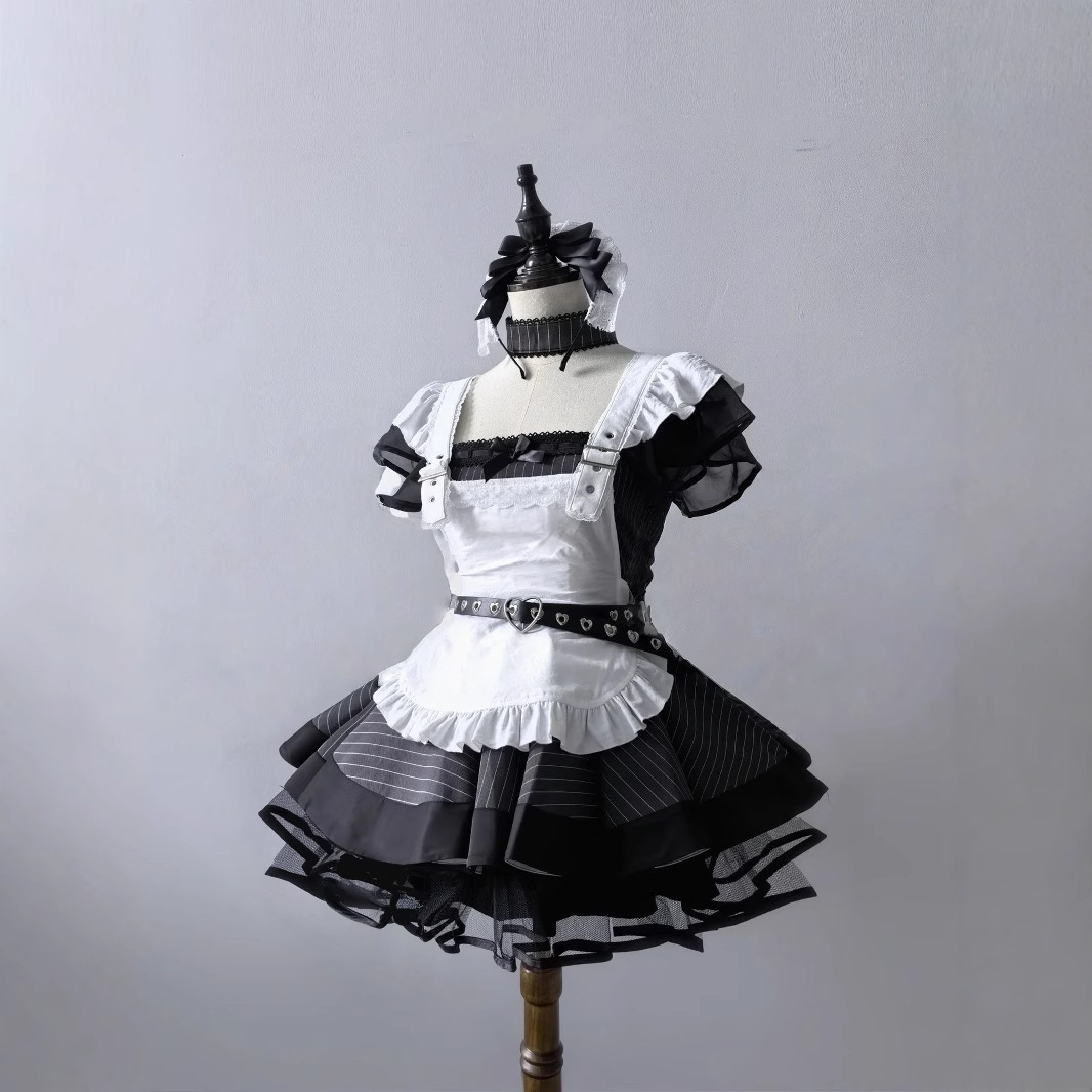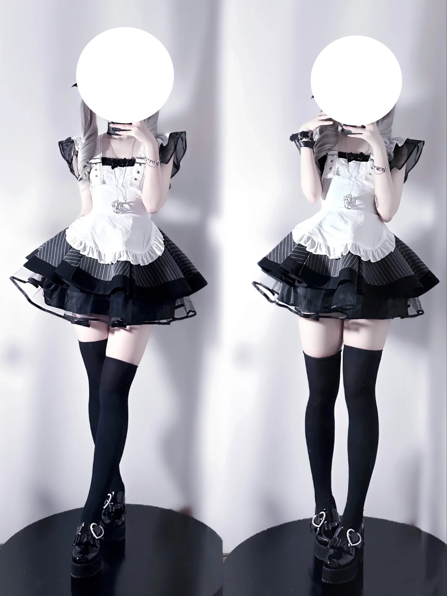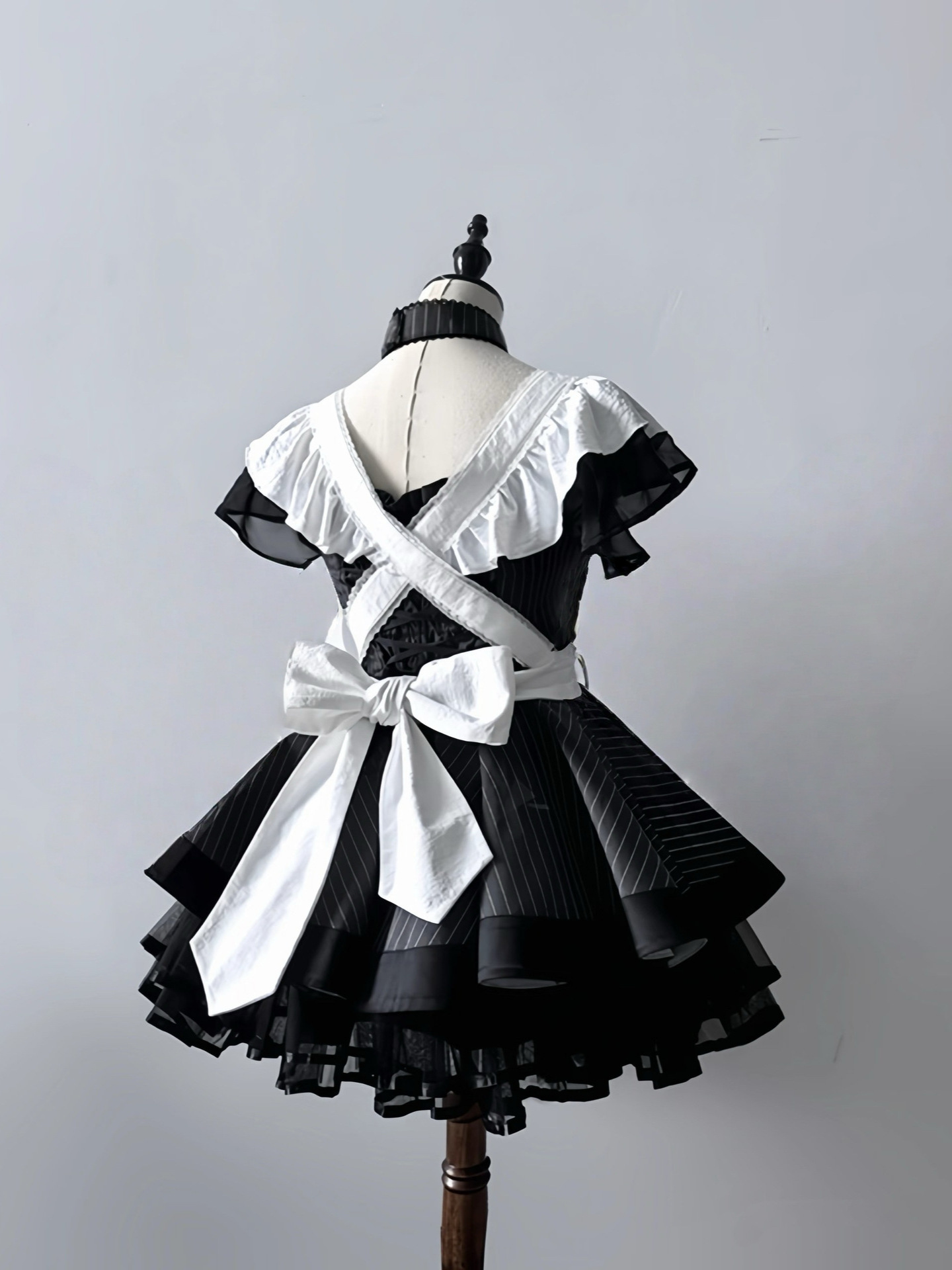 Ретро черно-белый полосатый наряд горничной Лолиты, субкультура, милый фартук в японском стиле, костюм, платье для косплея