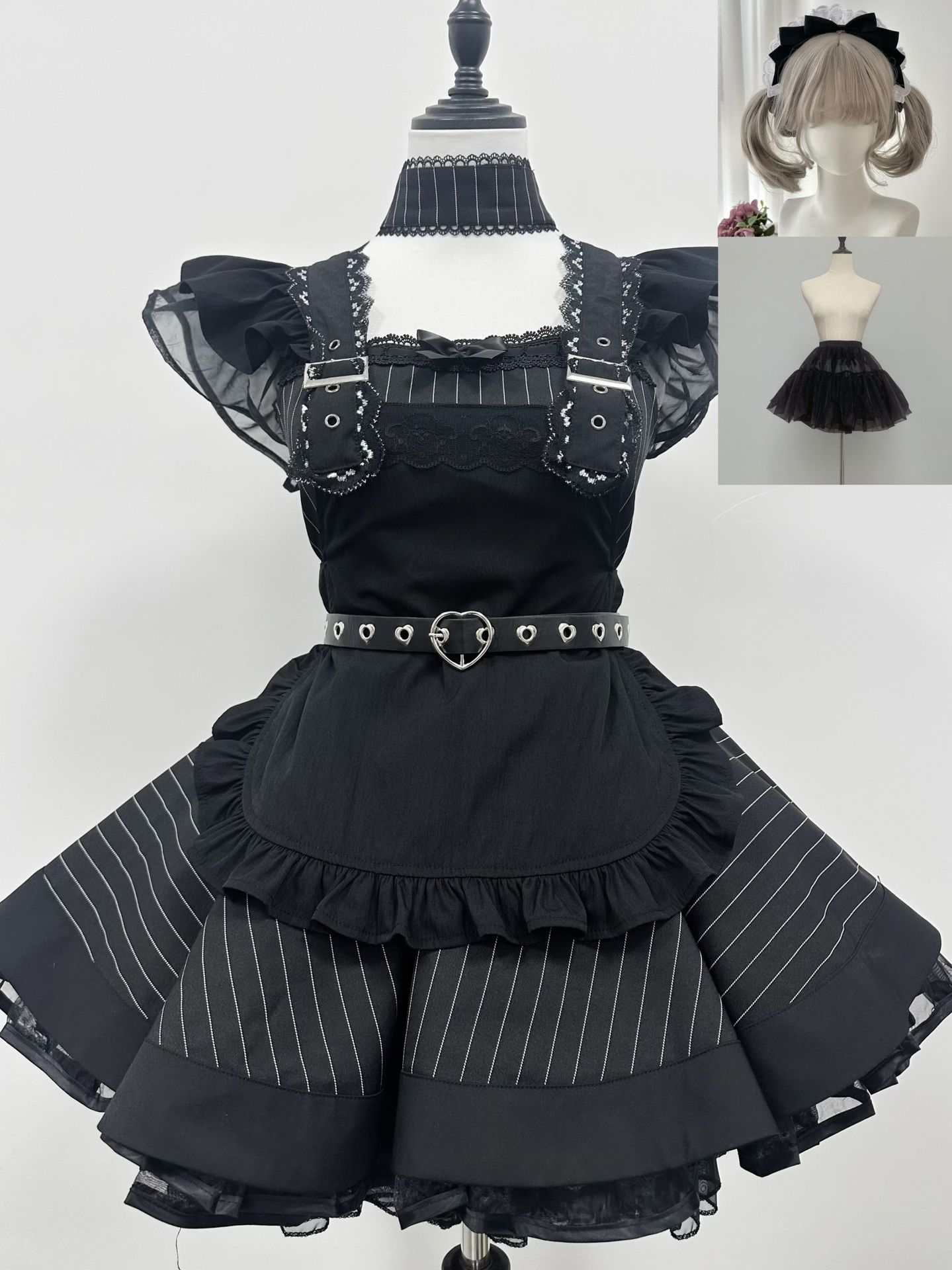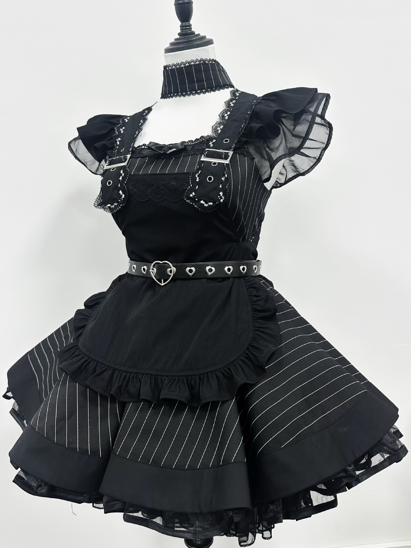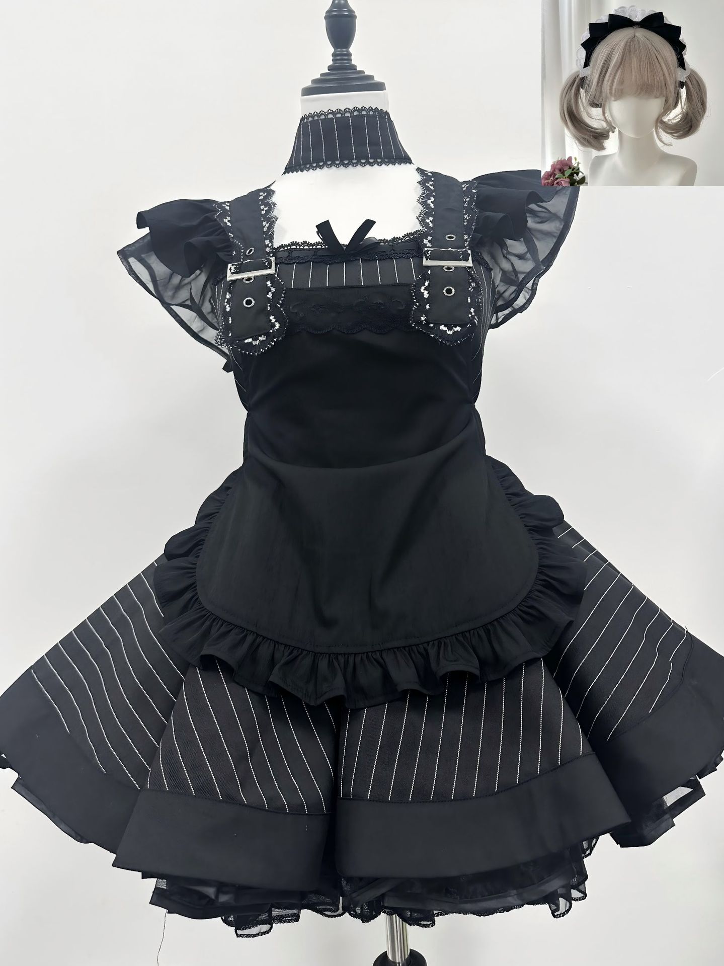 Ретро черно-белый полосатый наряд горничной Лолиты, субкультура, милый фартук в японском стиле, костюм, платье для косплея
