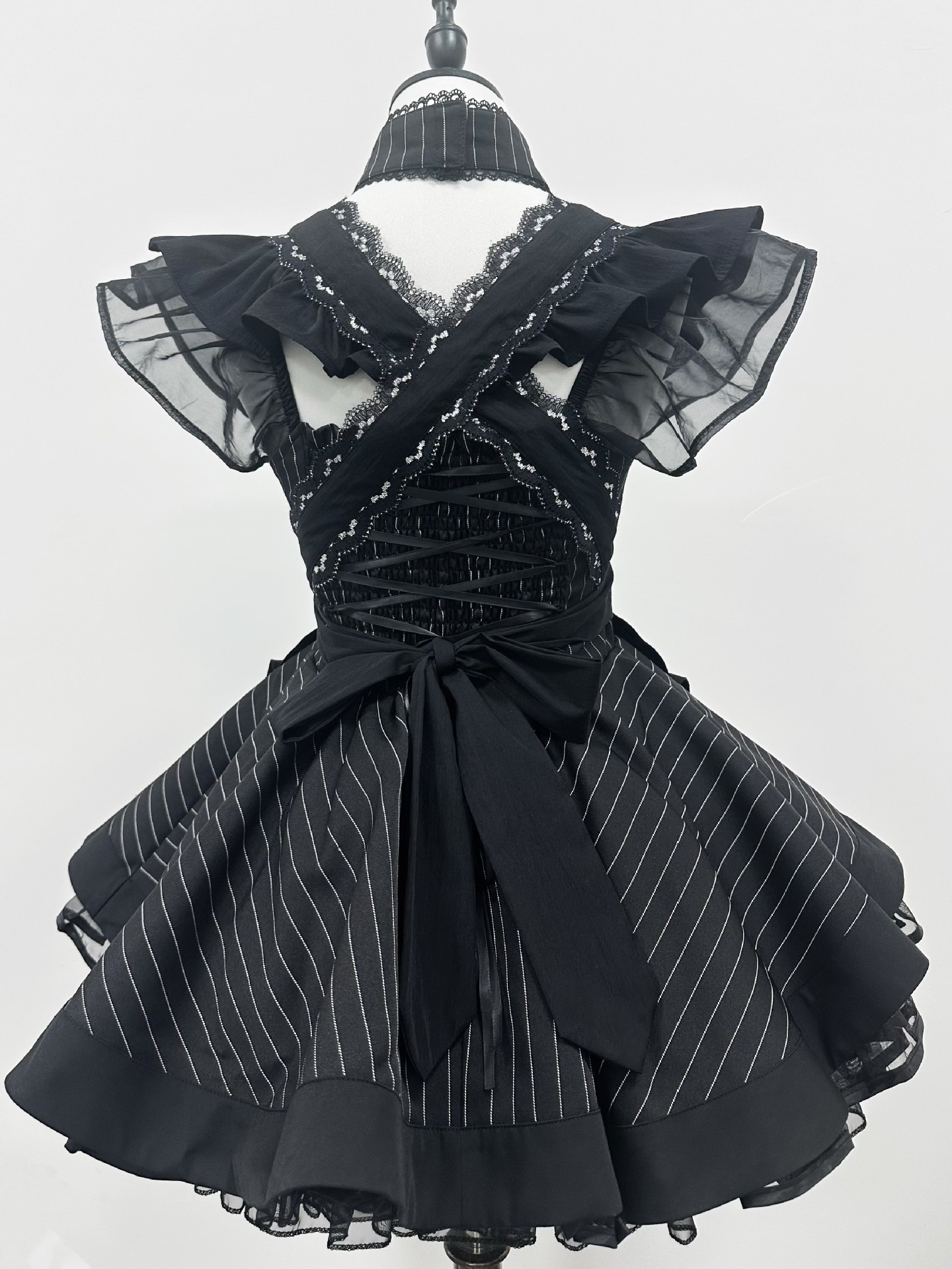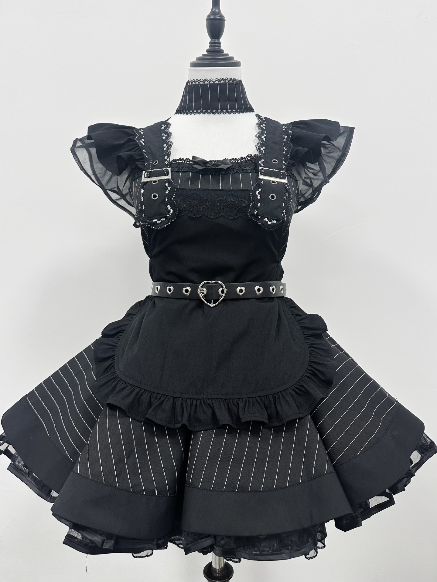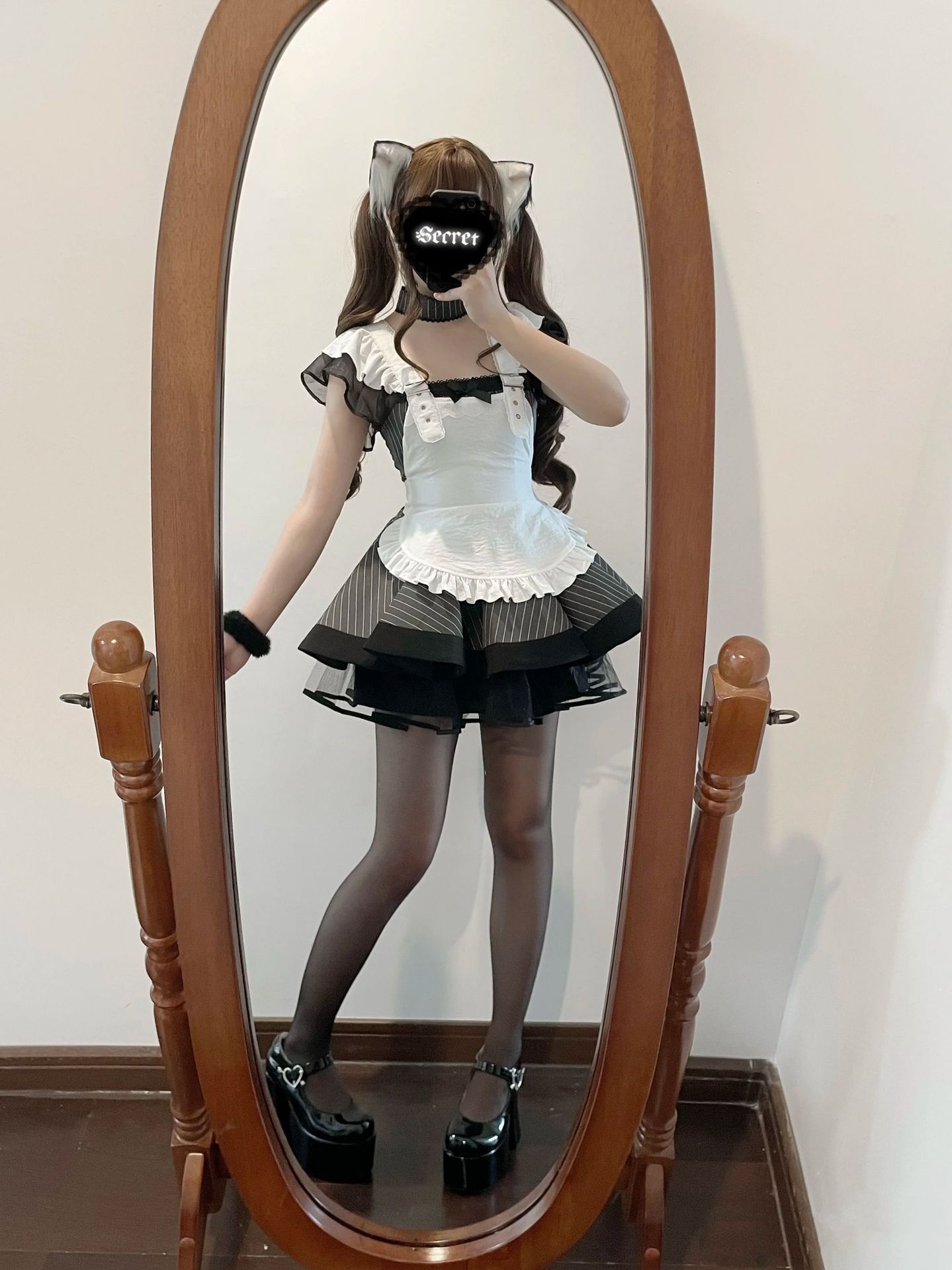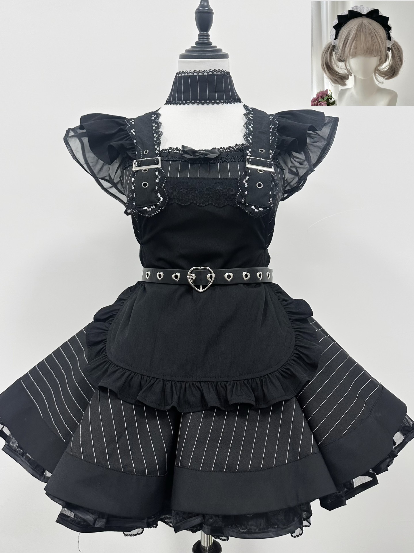 Ретро черно-белый полосатый наряд горничной Лолиты, субкультура, милый фартук в японском стиле, костюм, платье для косплея