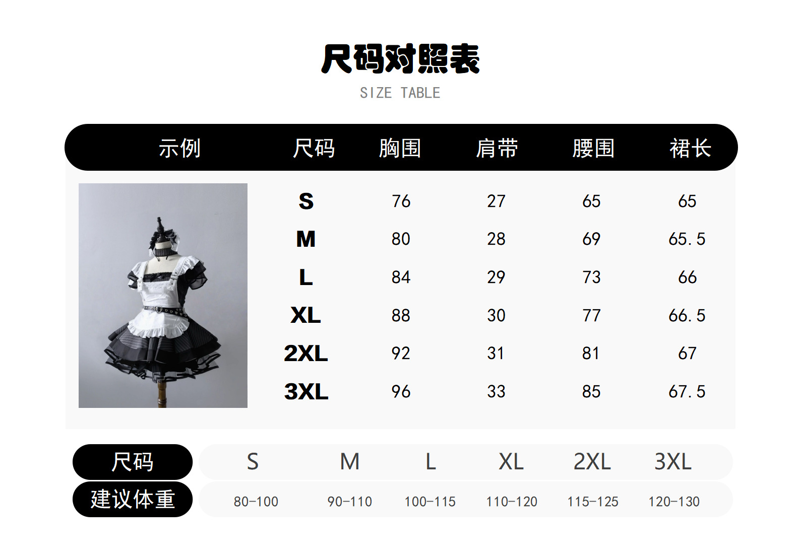 Костюм в черно-белую полоску (включая повязку на голову); Черно-белый полосатый костюм + пояс; Черно-белый полосатый костюм + черная юбка из мягкой марли.; Костюм в черно-белую полоску + пояс + поддержка юбки из мягкой черной марли; Черный костюм в полоску (включая повязку на голову); Черный костюм в полоску + пояс; Черный костюм в полоску + черная юбка из мягкой тюля; Черный костюм в полоску + ремень + черная юбка из мягкой ткани