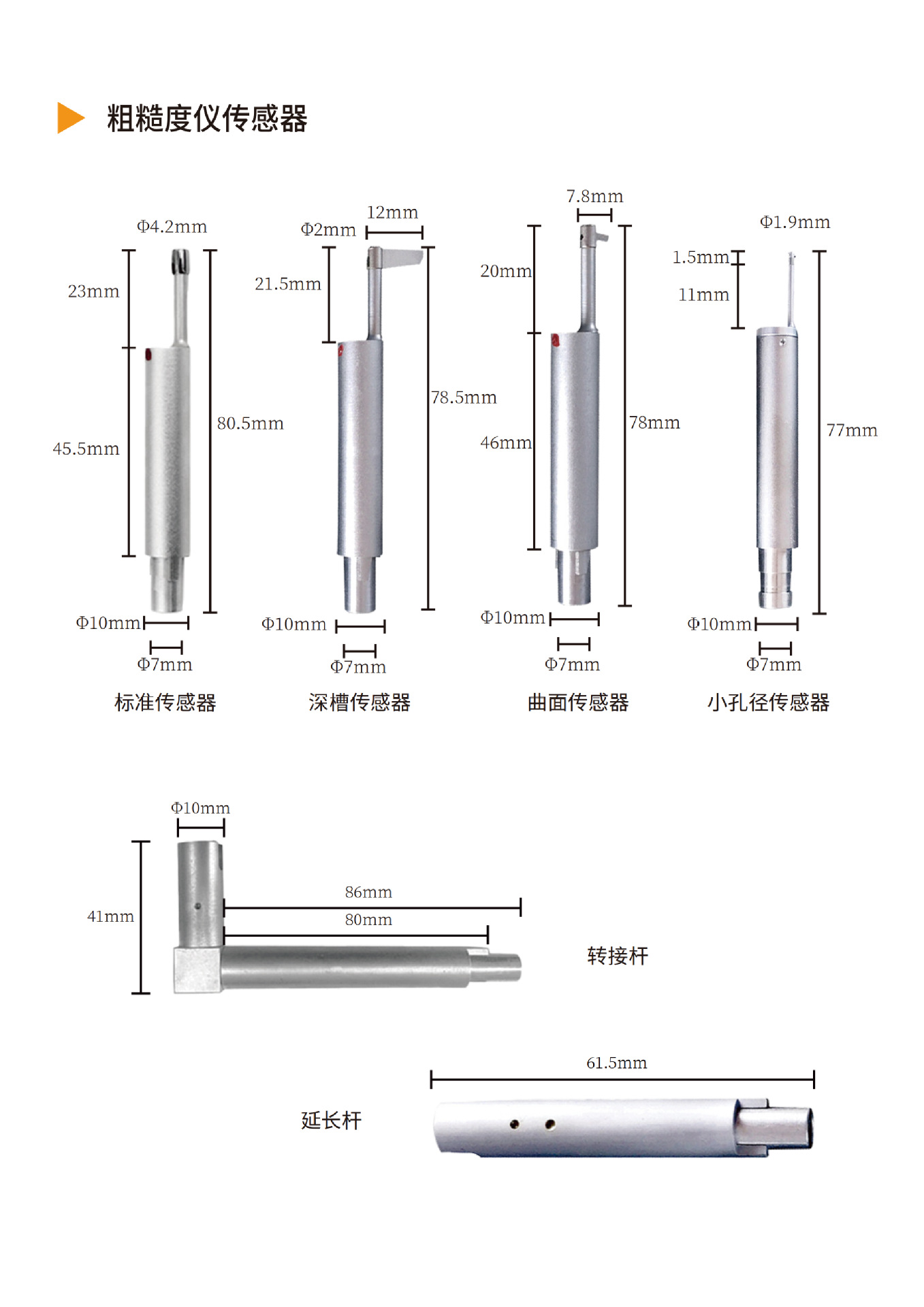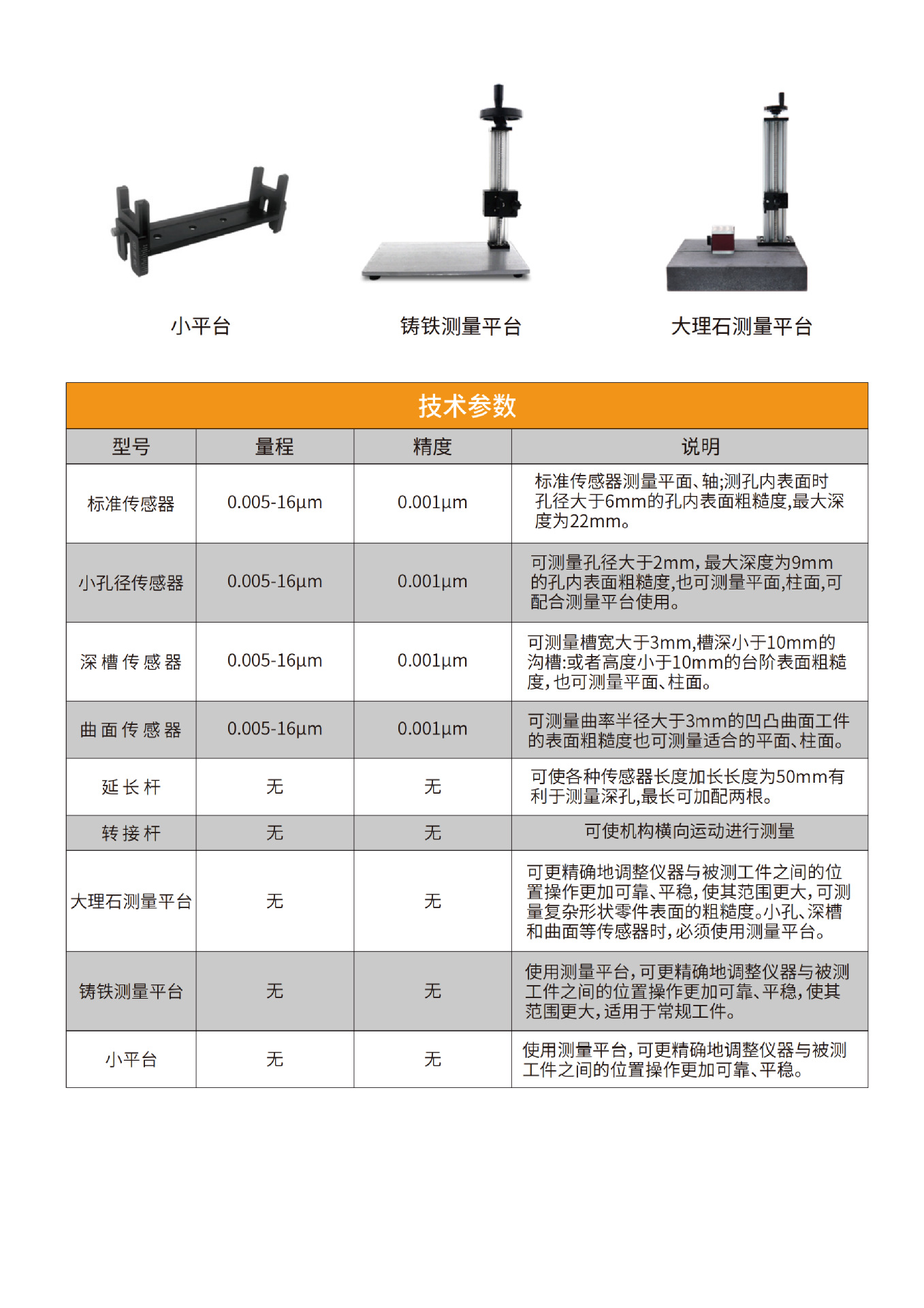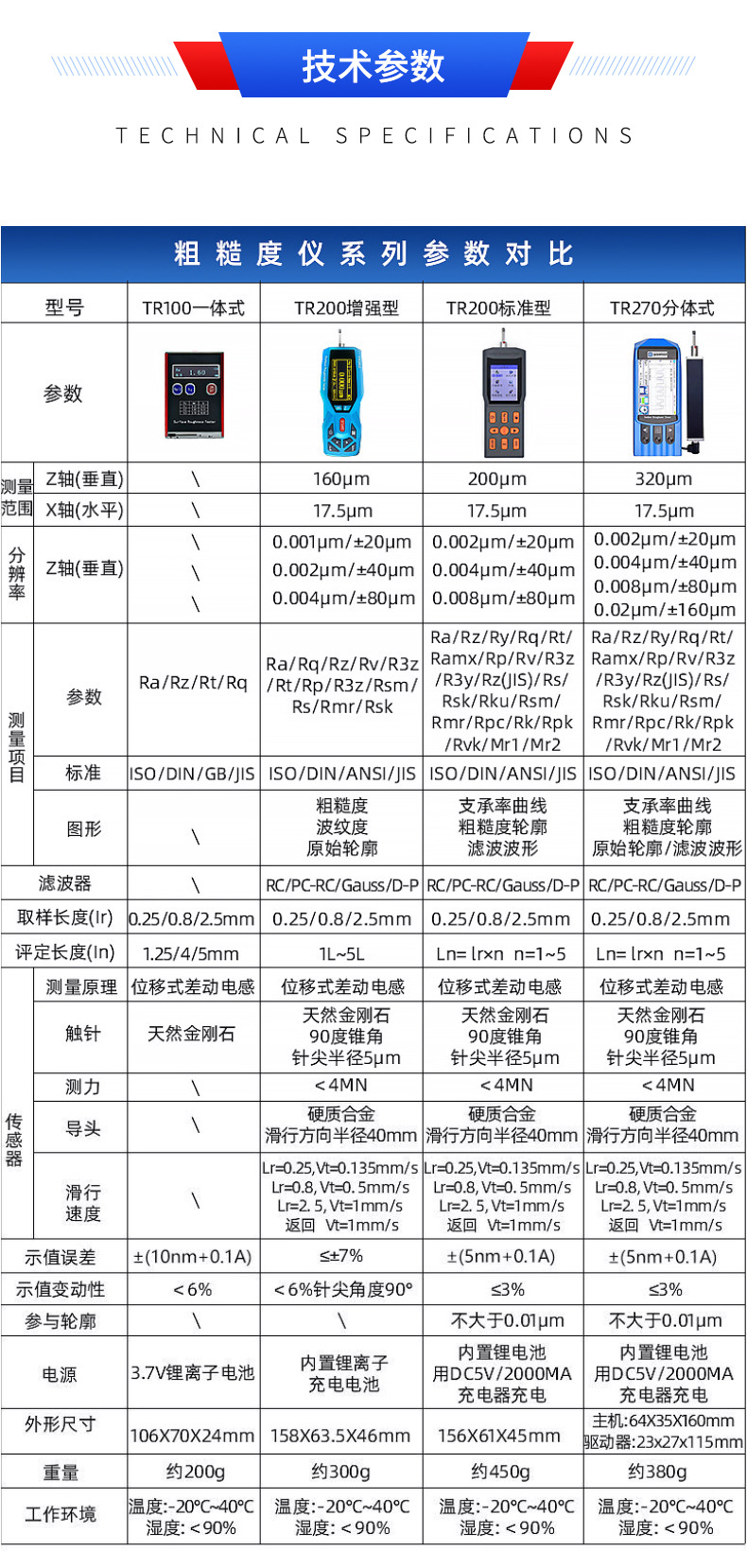 Тестер шероховатости поверхности TR100 (испытательный блок из металлического блока); Тестер шероховатости поверхности TR100 (испытательный блок из стеклянного блока); Тестер шероховатости поверхности TR200 (стандартная версия); Тестер шероховатости поверхности TR200 (расширенная версия); Тестер шероховатости поверхности TR270 (военный класс); Тестовый блок калибровки шкалы; Стандартный датчик (измеряет отверстия и плоскости диаметром более 6 мм) может быть оснащен ERA.; Датчики с глубокими канавками (с шириной канавки более 3 мм и глубиной канавки менее 10 мм) совместимы с Era.; Датчики с маленькими отверстиями (с диаметром отверстия более 2 мм) совместимы с Era.; Датчики с изогнутой поверхностью (радиусом более 3 мм) совместимы с Era.; Удлинительный стержень (длина 50 мм), совместимый с моделями Era.; Адаптерный стержень под прямым углом