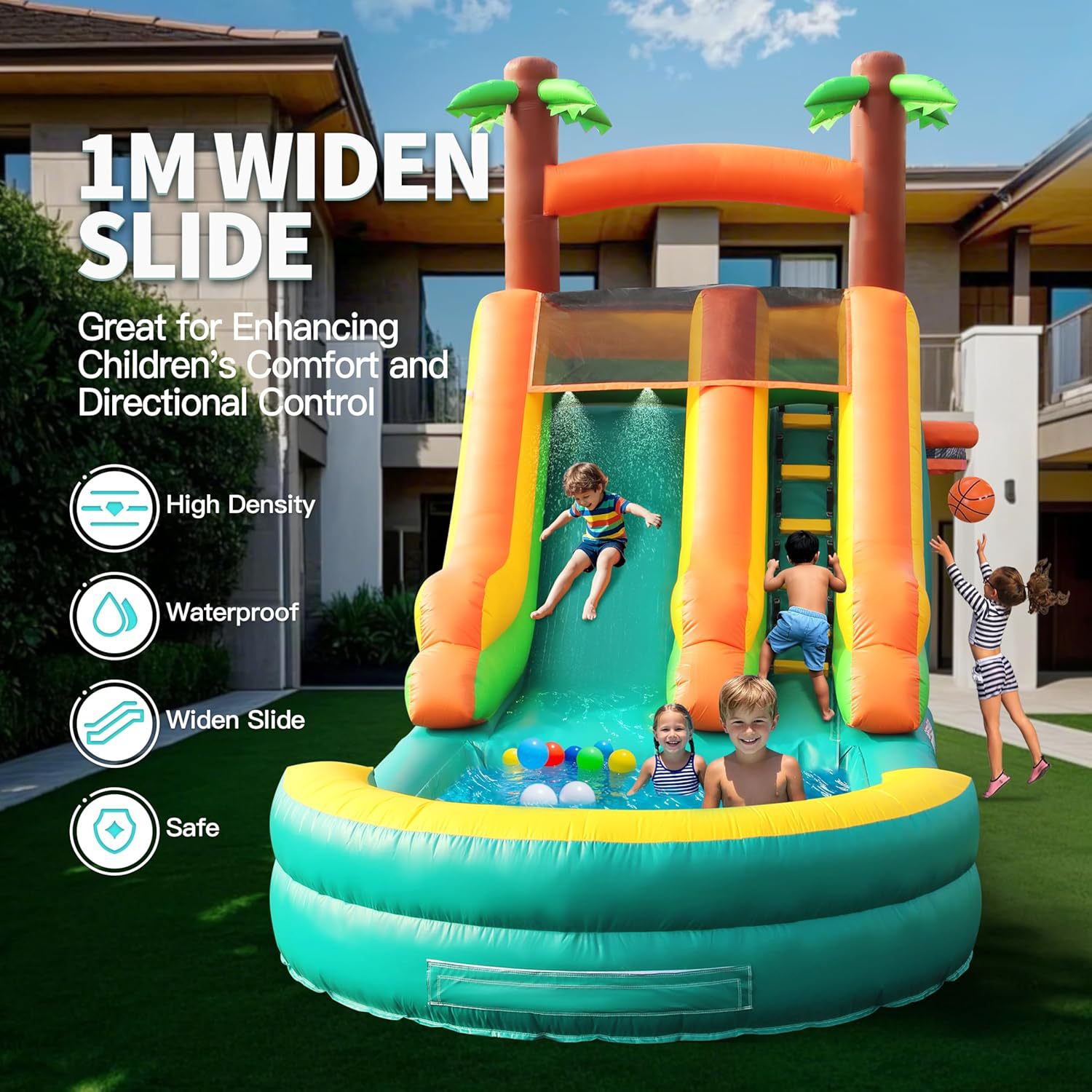 Надувная водная горка в виде кокосовой пальмы для улицы, летняя водная горка, утолщенная детская развлекательная надувная уличная детская ванна