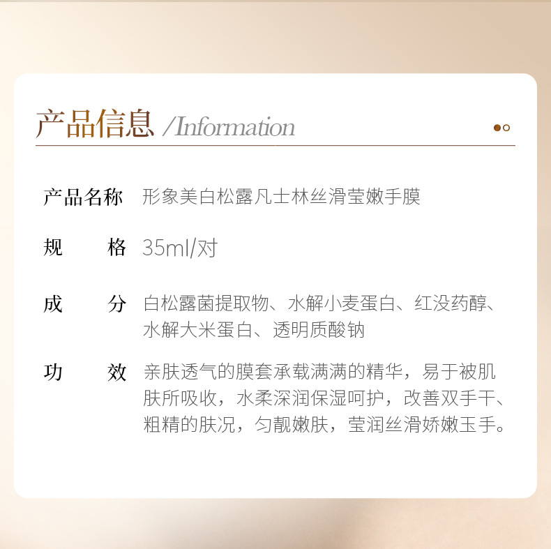 Image Beauty Белый трюфель Вазелин Шелковистая гладкая маска для рук Увлажняющая отшелушивающая увлажняющая маска для рук, улучшающая сухость