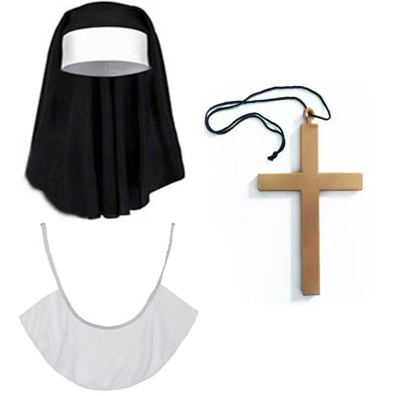 крест; черный платок; белый шарф; Комплект из двух предметов (платок + шарф); Комплект из трех предметов (платок + шарф + крест); Комплект из четырех предметов (тюрбан + шарф + белые чулки + крест); Комплект из четырех предметов (тюрбан + шарф + черные чулки + крест); Комплект из пяти предметов (тюрбан + шарф + чулки + крест + длинные перчатки)