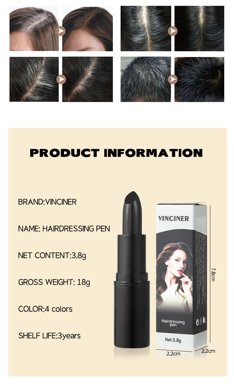 Эксклюзивная поставка VINCINER: одноразовые карандаши для окрашивания волос для маскировки седины, портативные временные карандаши-помады для коррекции цвета.