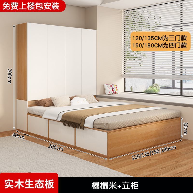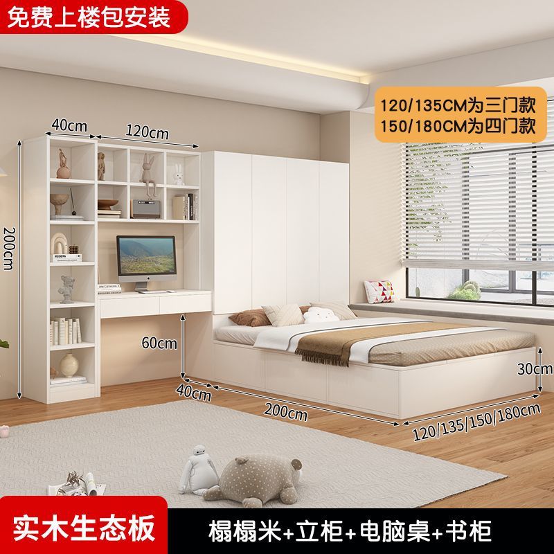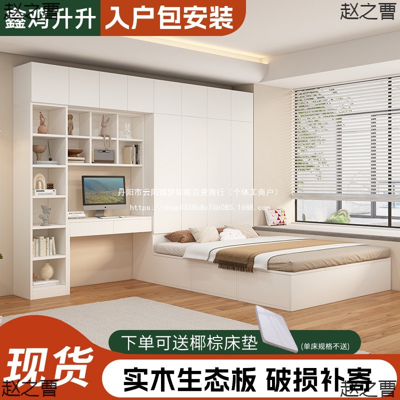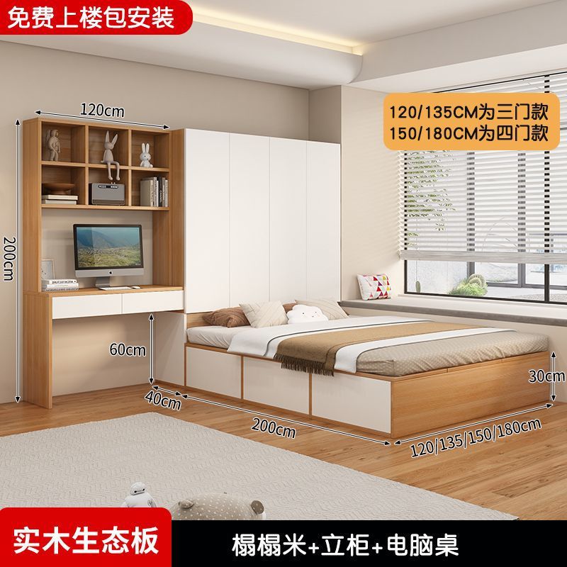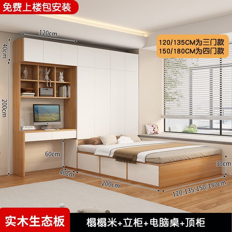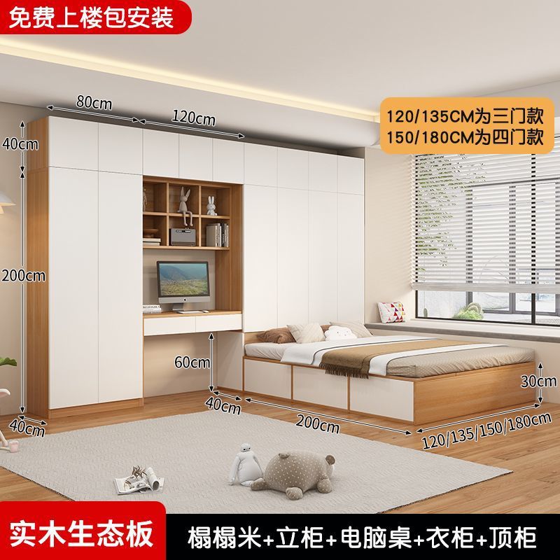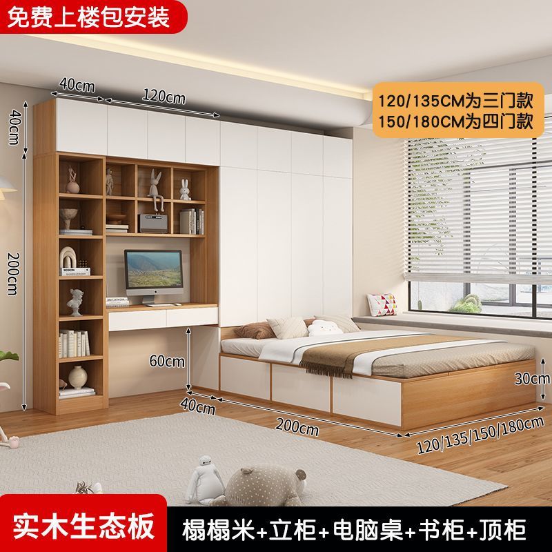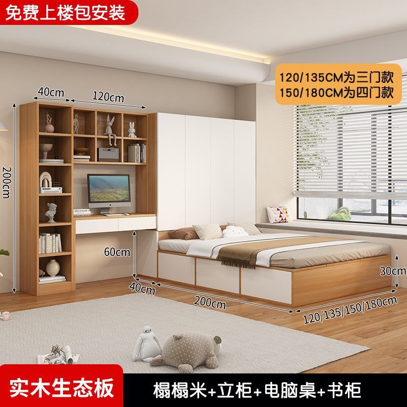 Татами кровать-шкаф, встроенная кровать для маленькой квартиры, компактная детская кровать с местом для хранения, столом и книжным шкафом, может быть изготовлена из дерева.