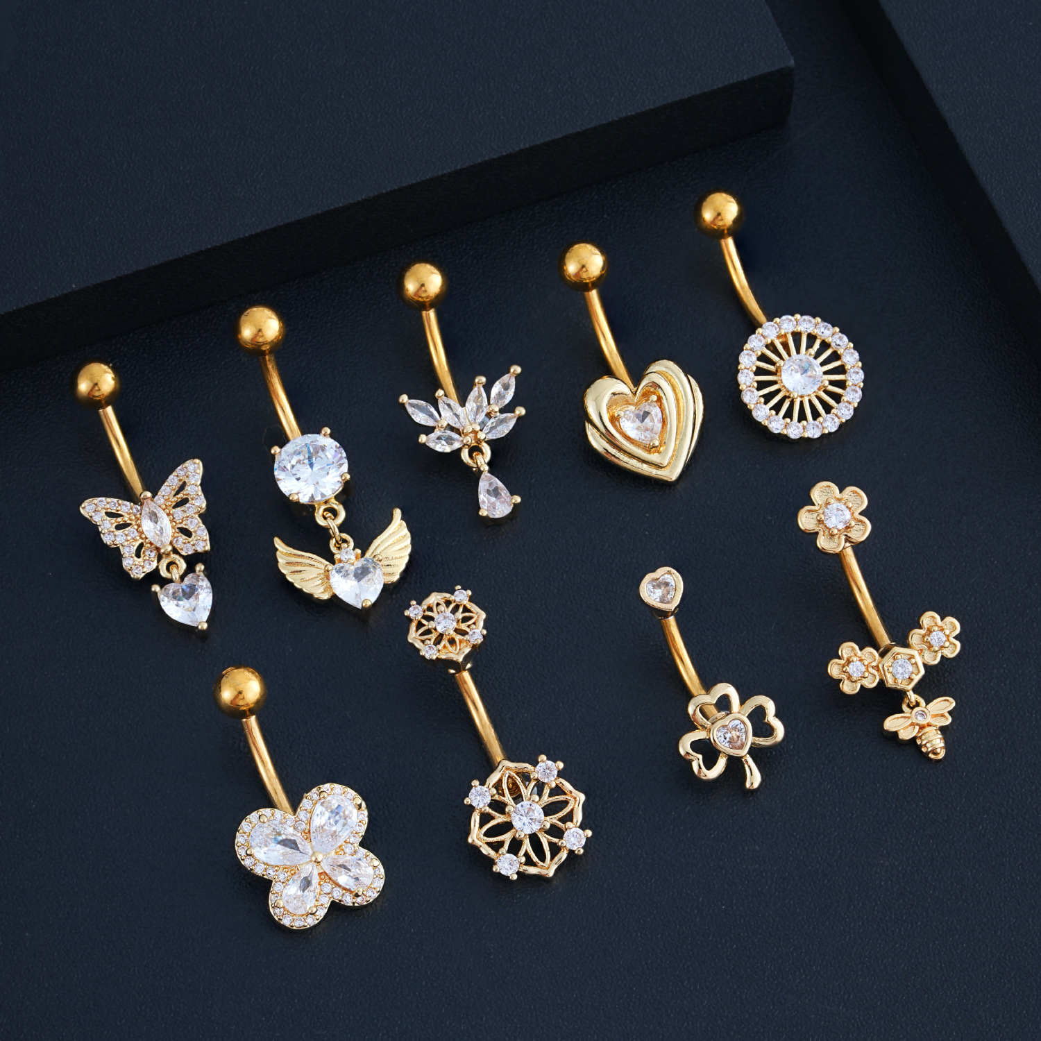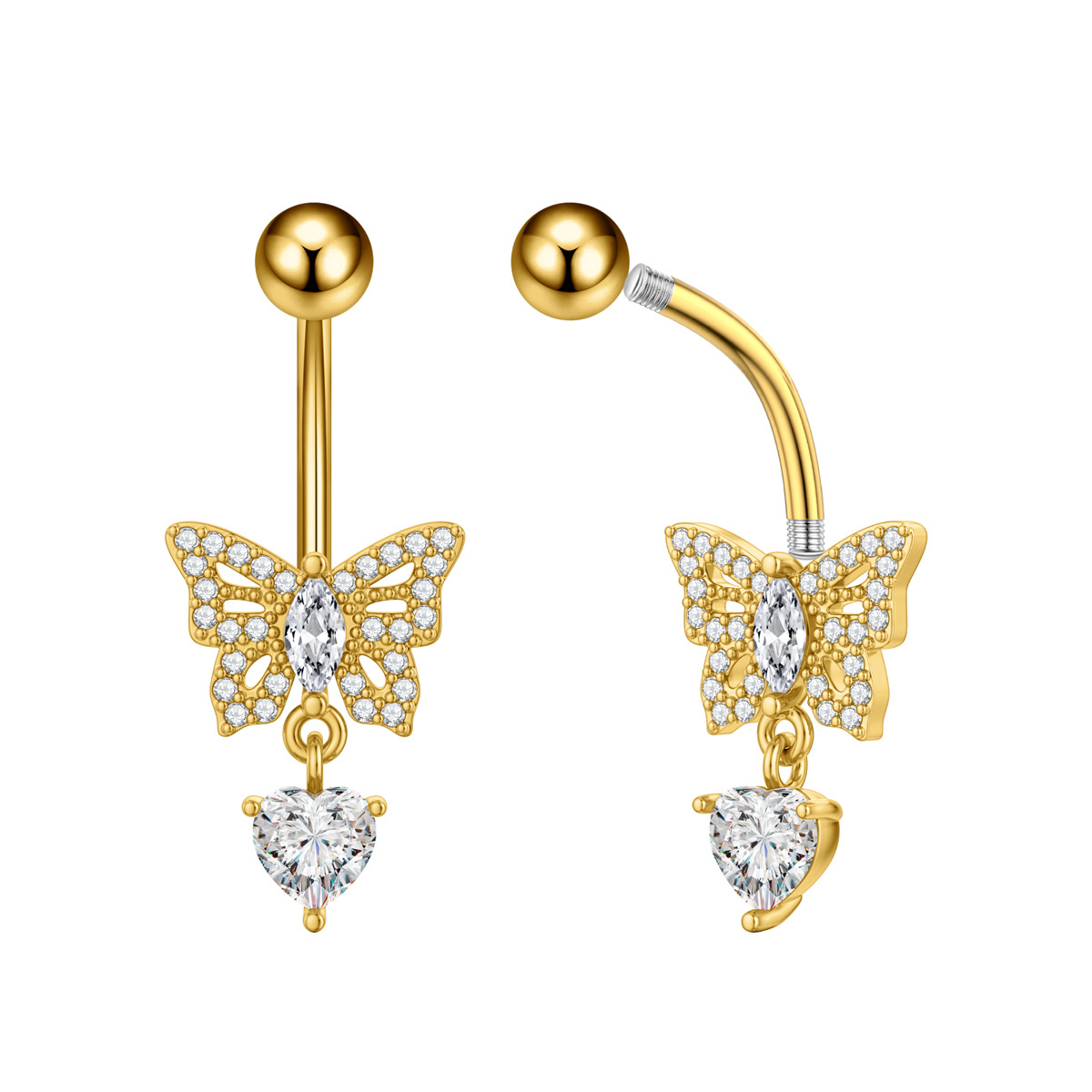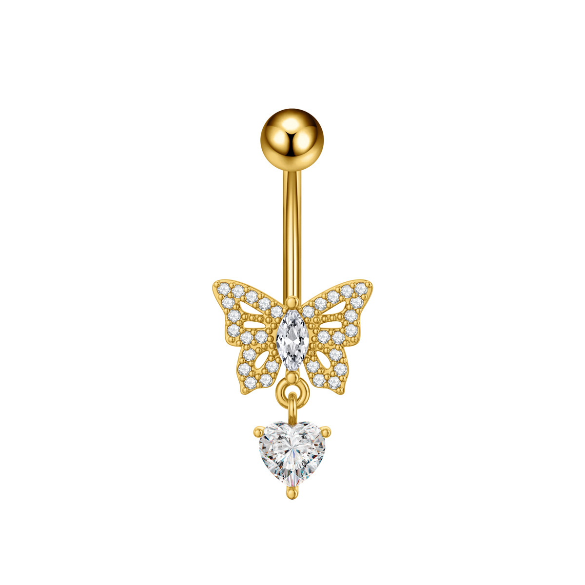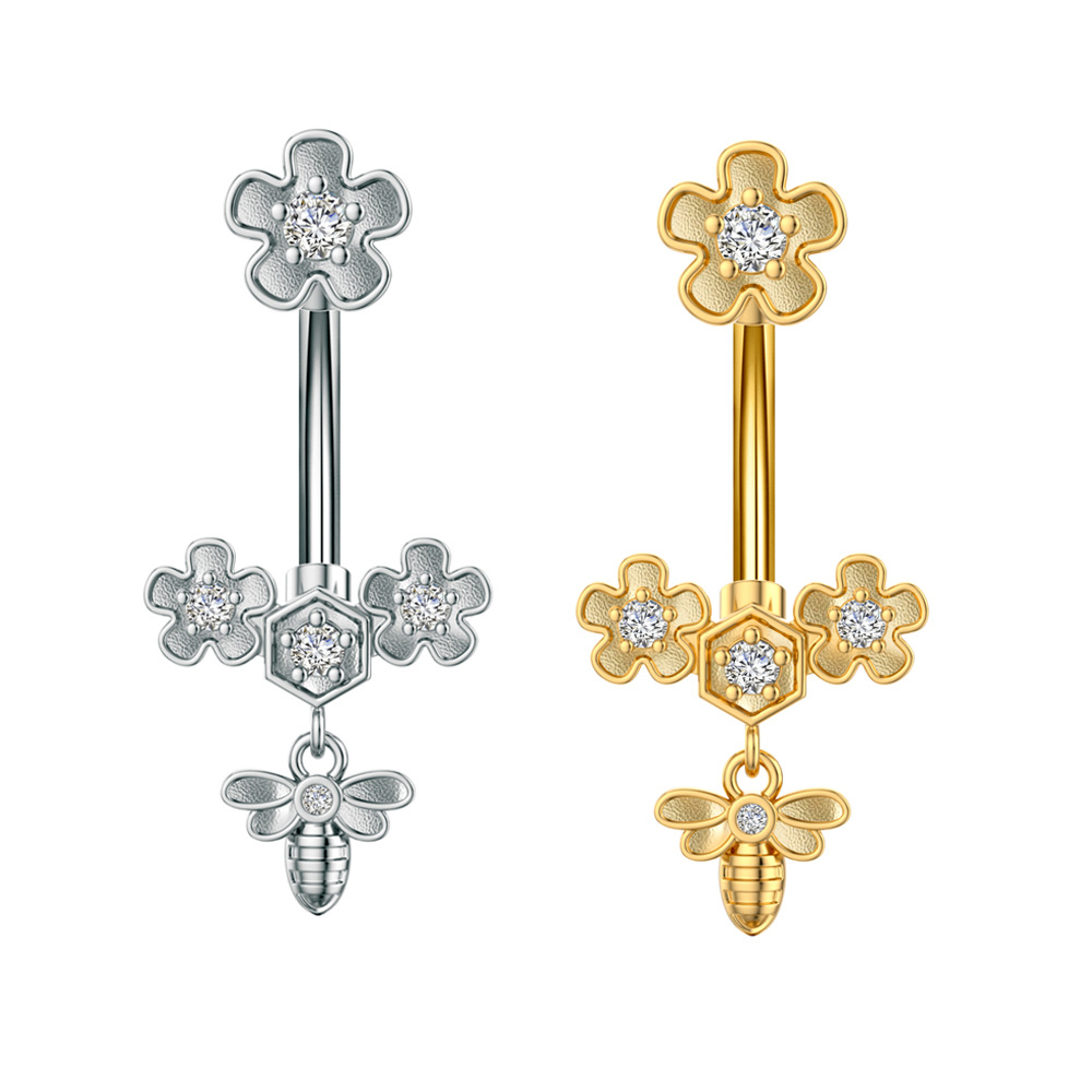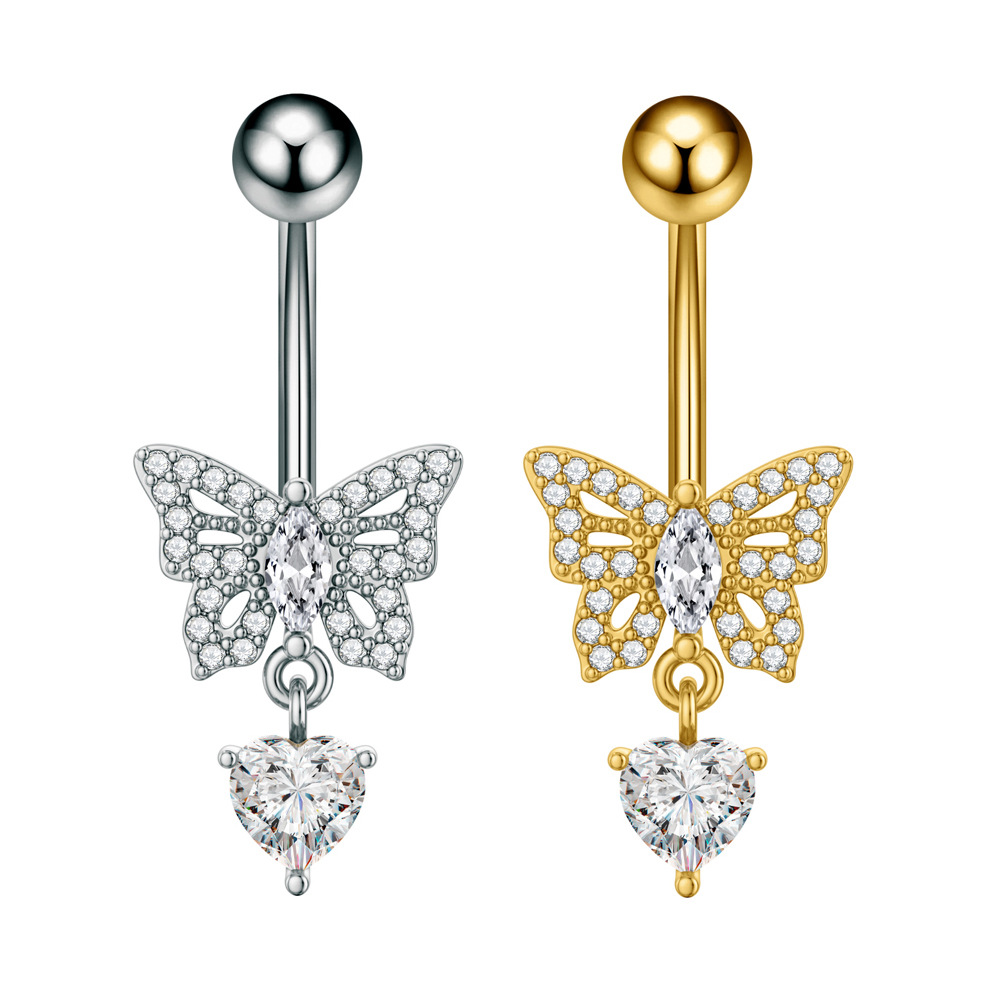 Новое кольцо для пупка в форме сердца с цирконом, бабочка, пчела, пирсинг пупка, готово к продаже