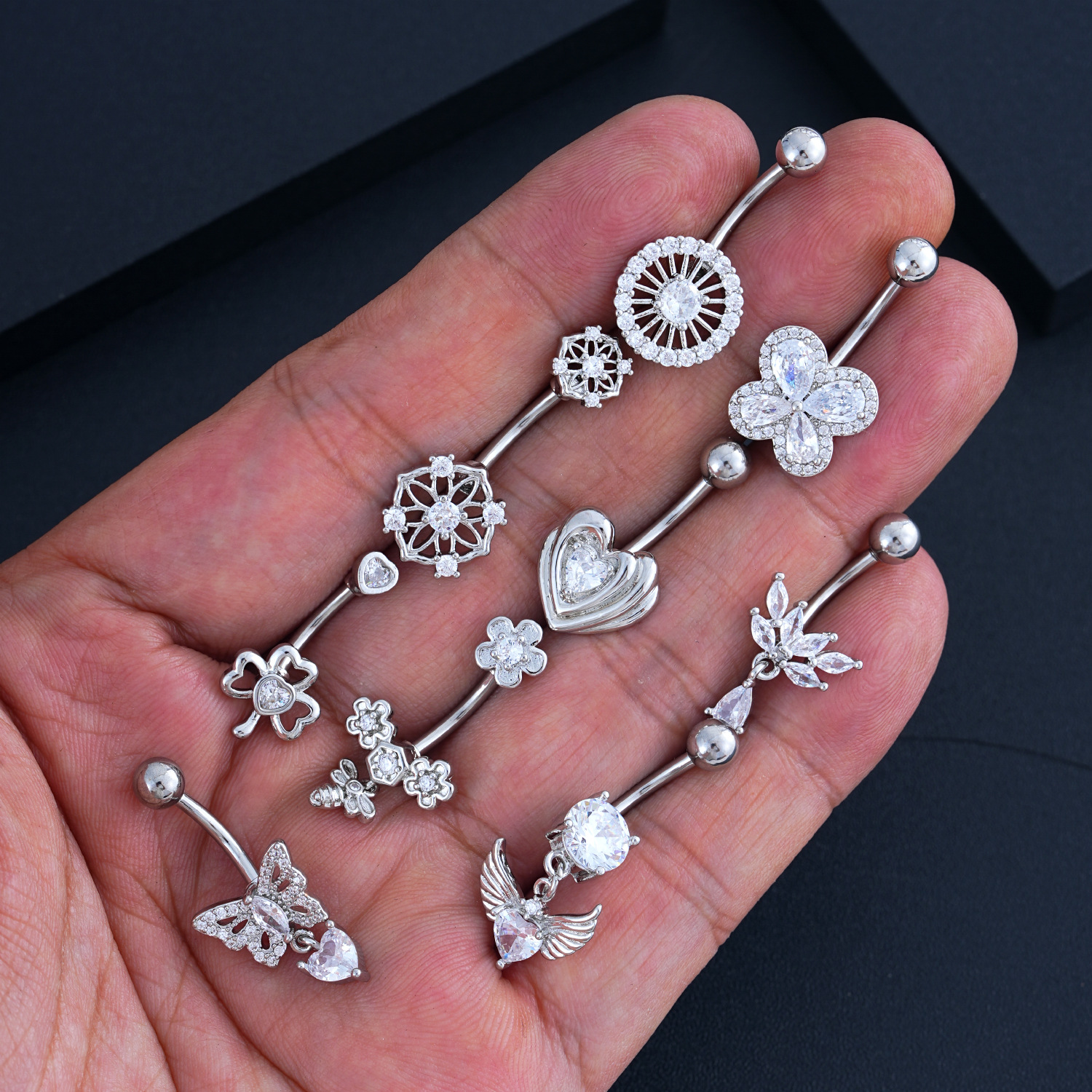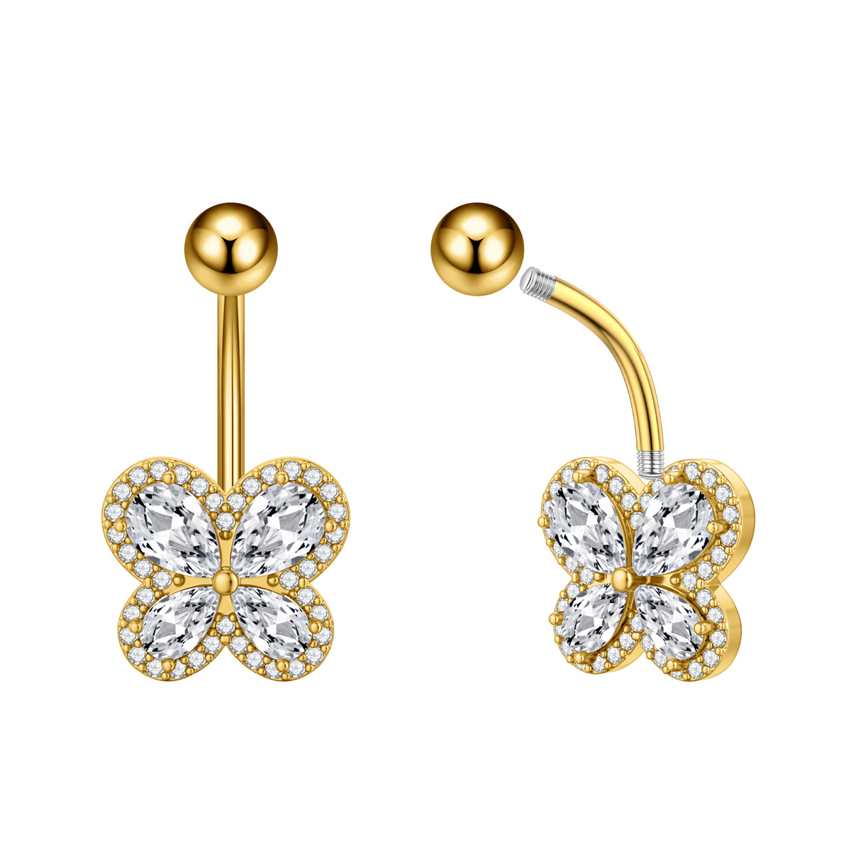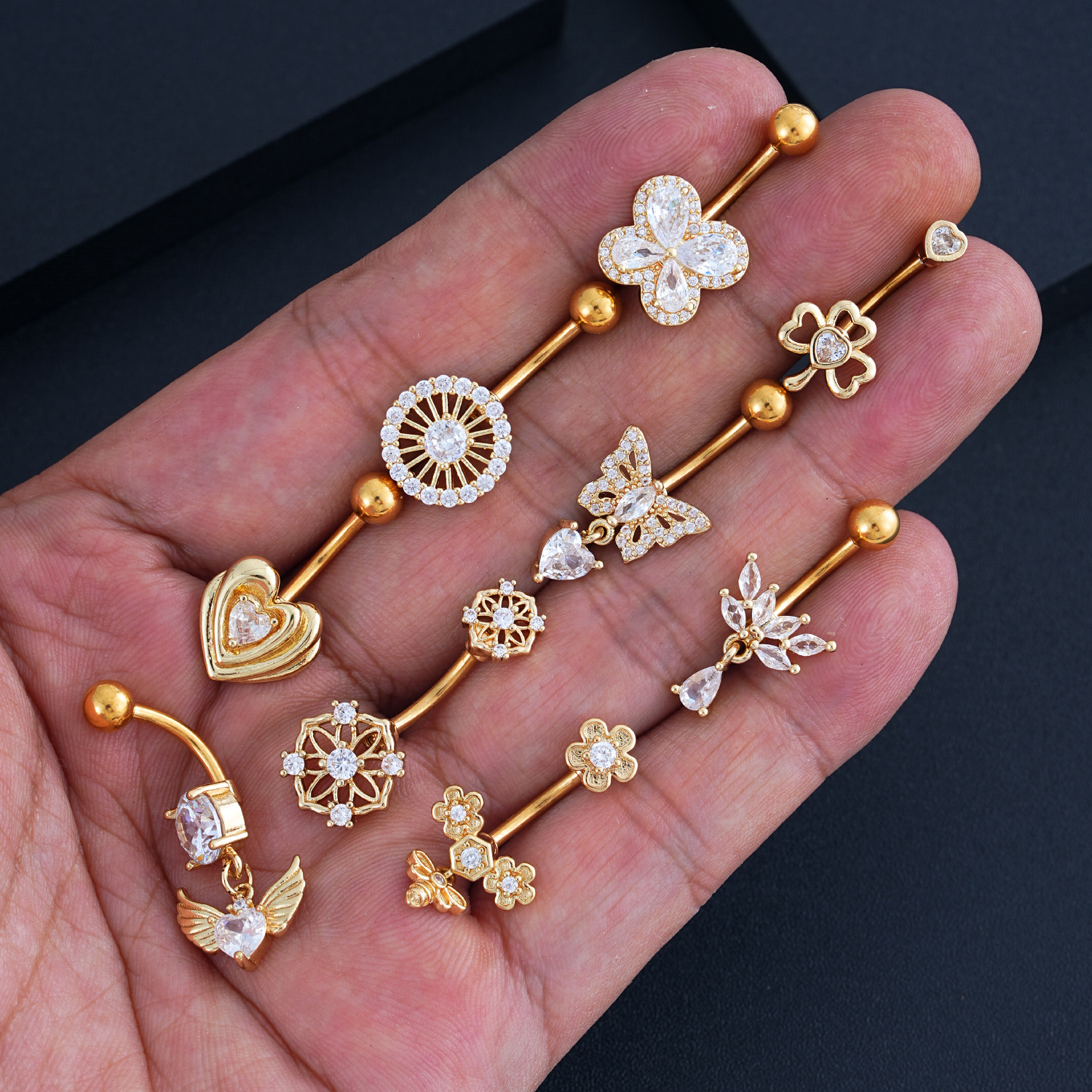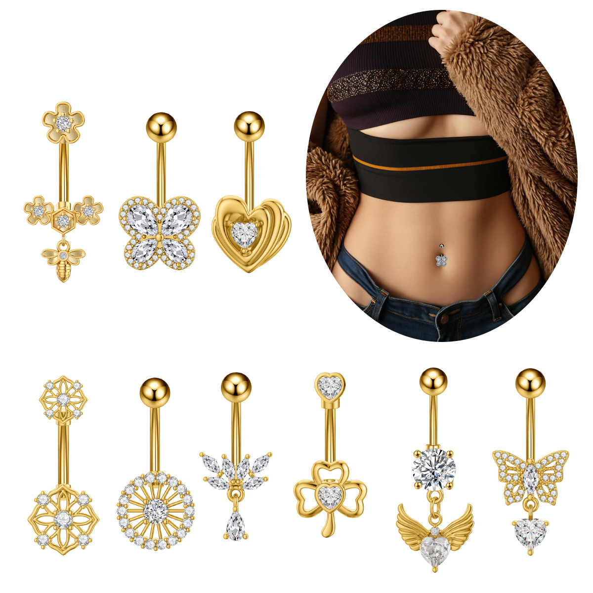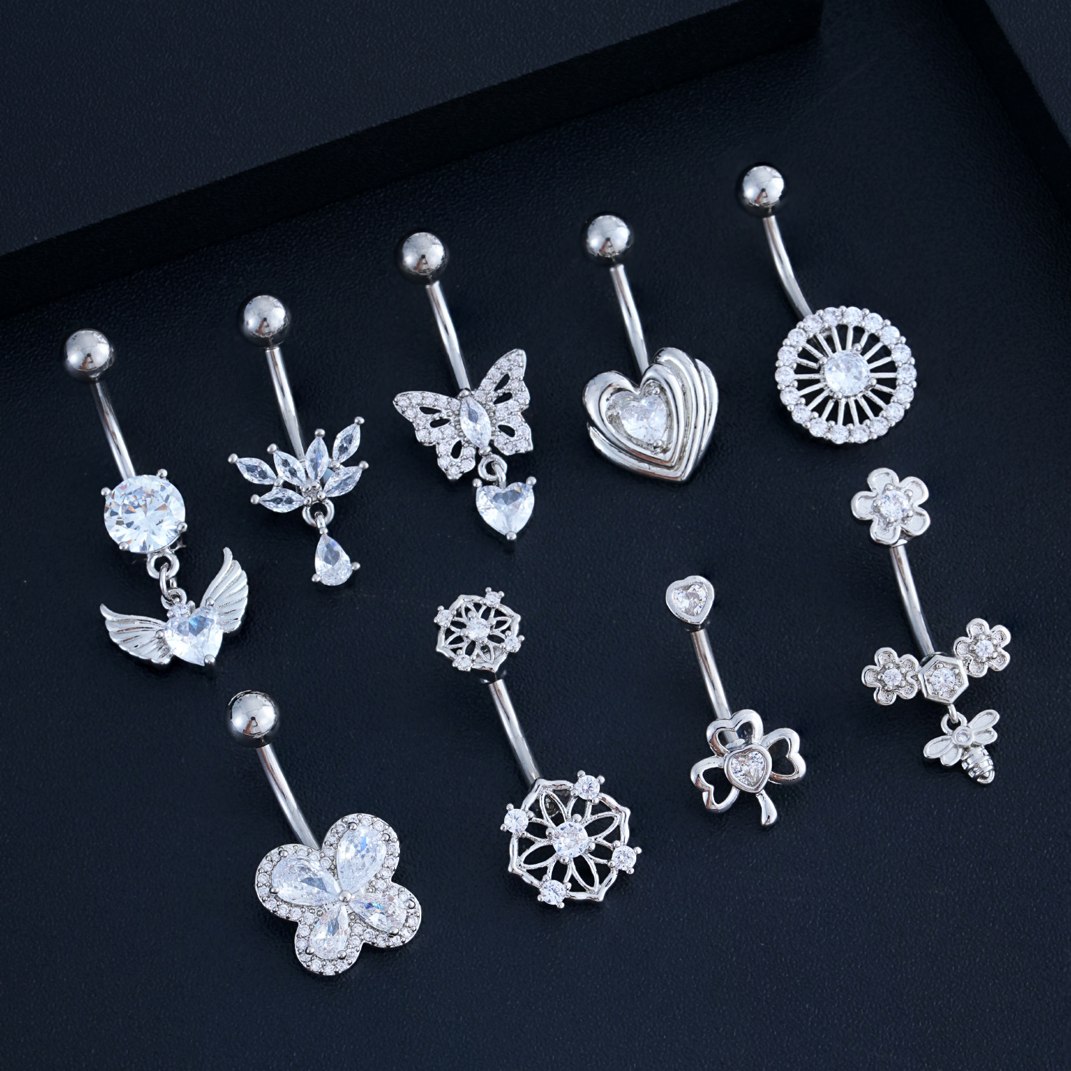 Новое кольцо для пупка в форме сердца с цирконом, бабочка, пчела, пирсинг пупка, готово к продаже