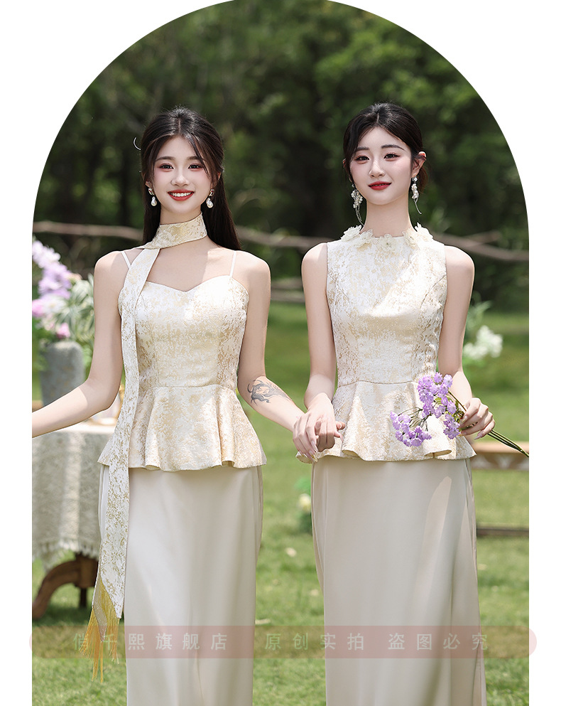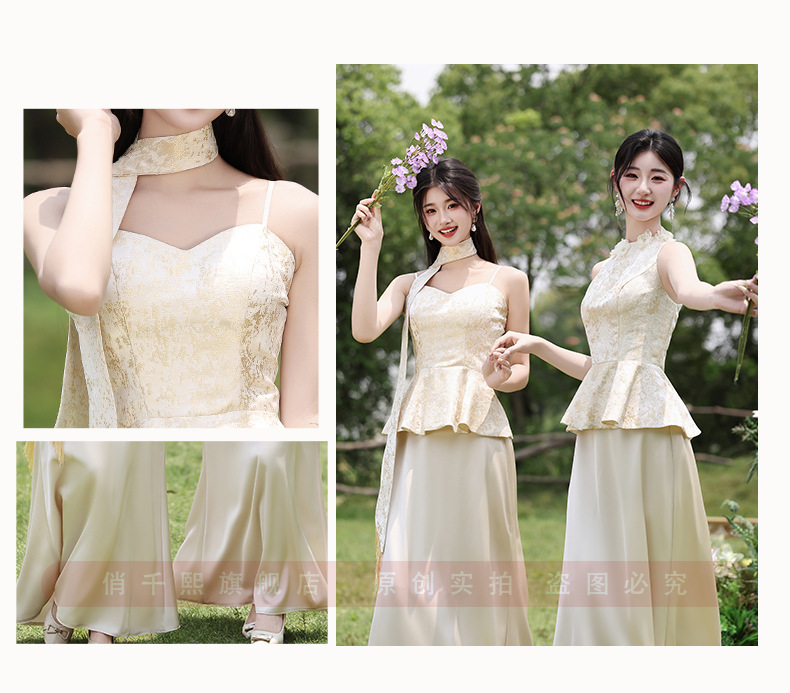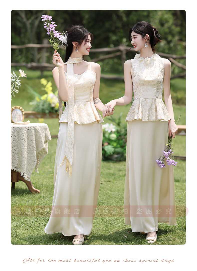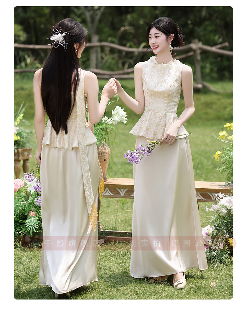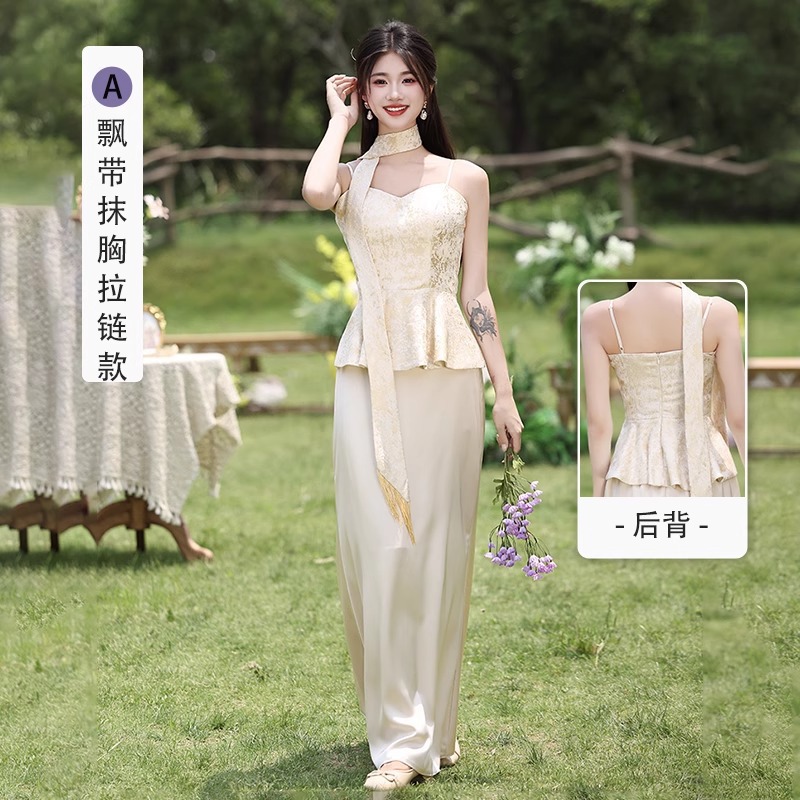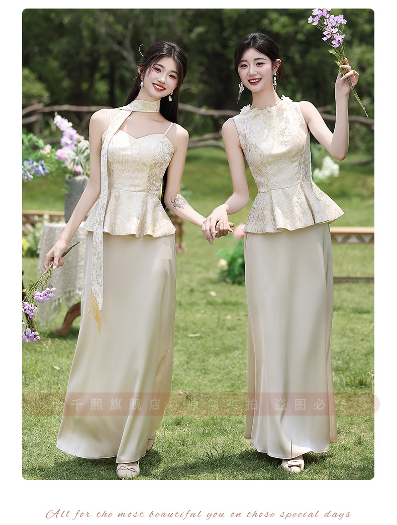 Новые платья для подружек невесты в китайском стиле 2026 года, новые летние атласные платья цвета шампань, которые можно носить повседневно в качестве платьев в китайском стиле.