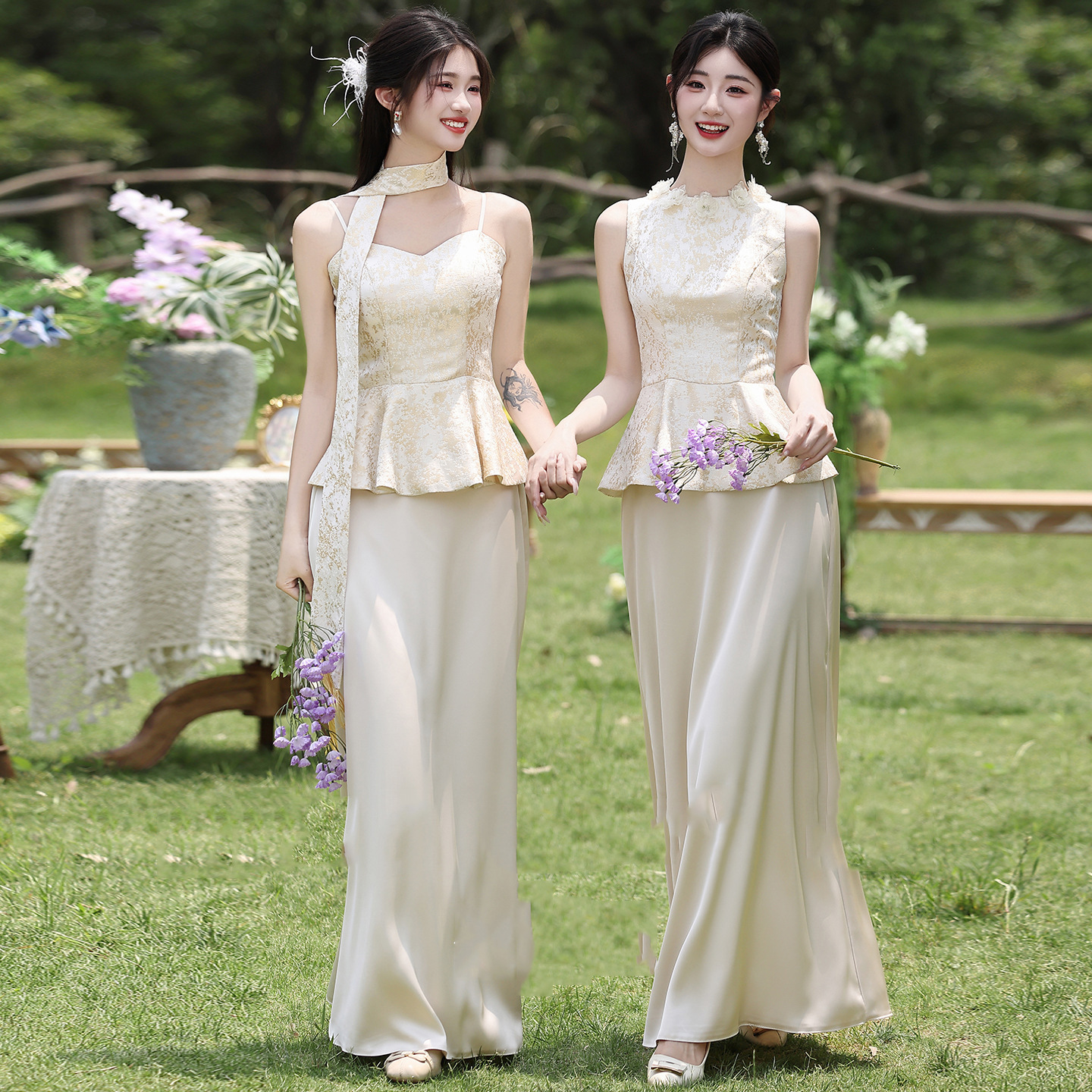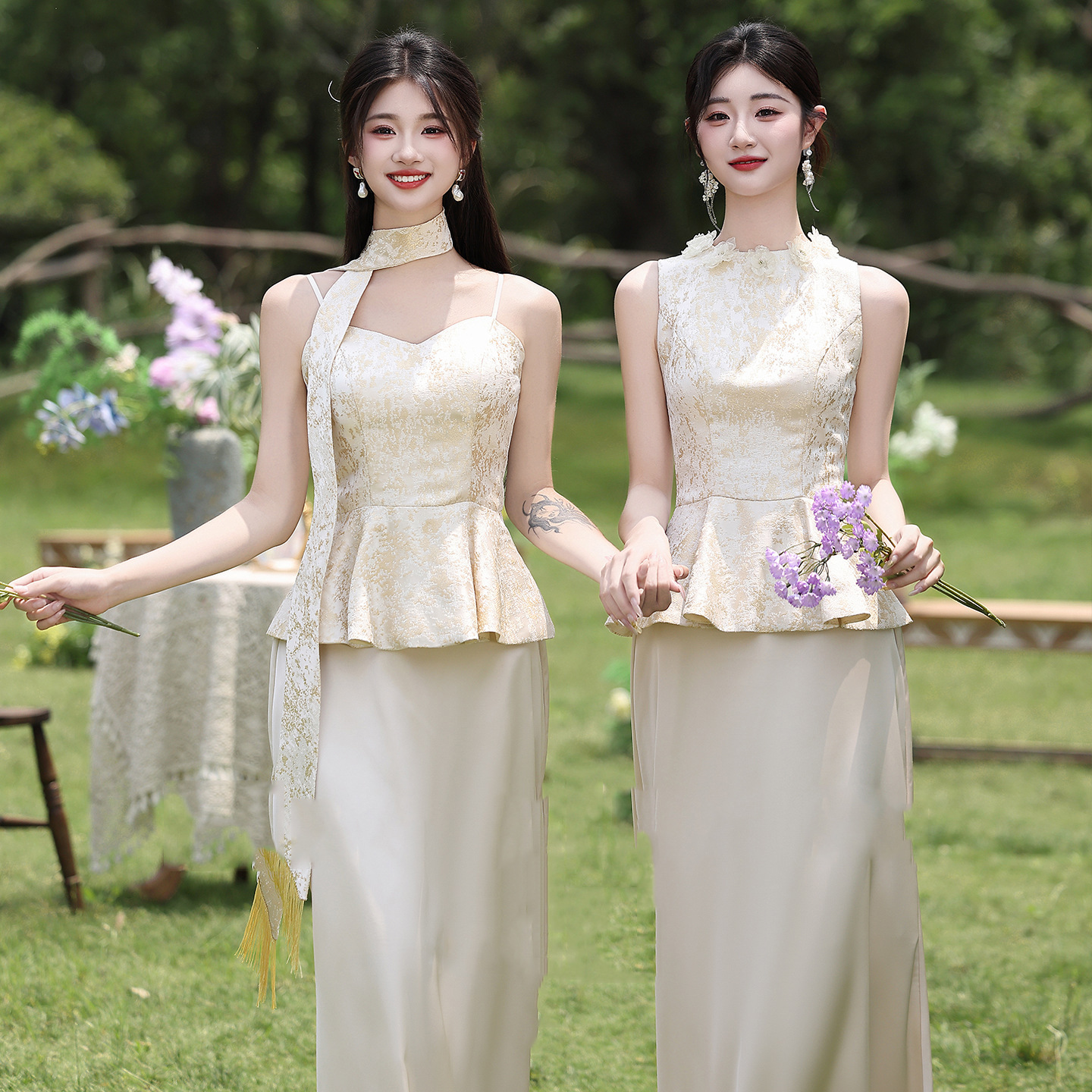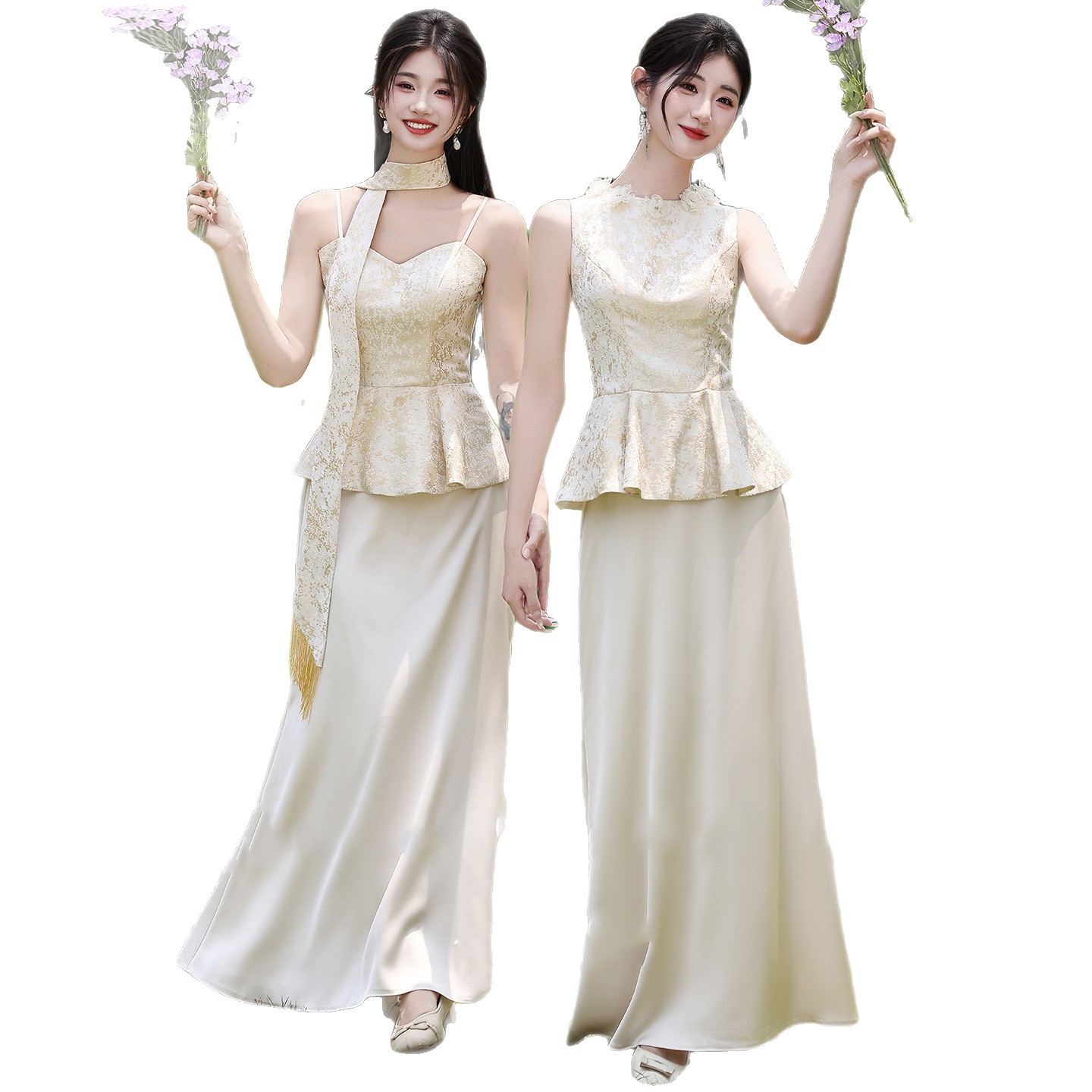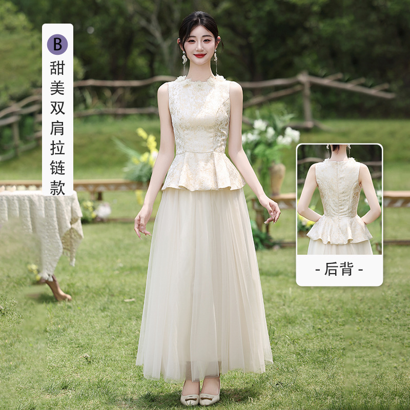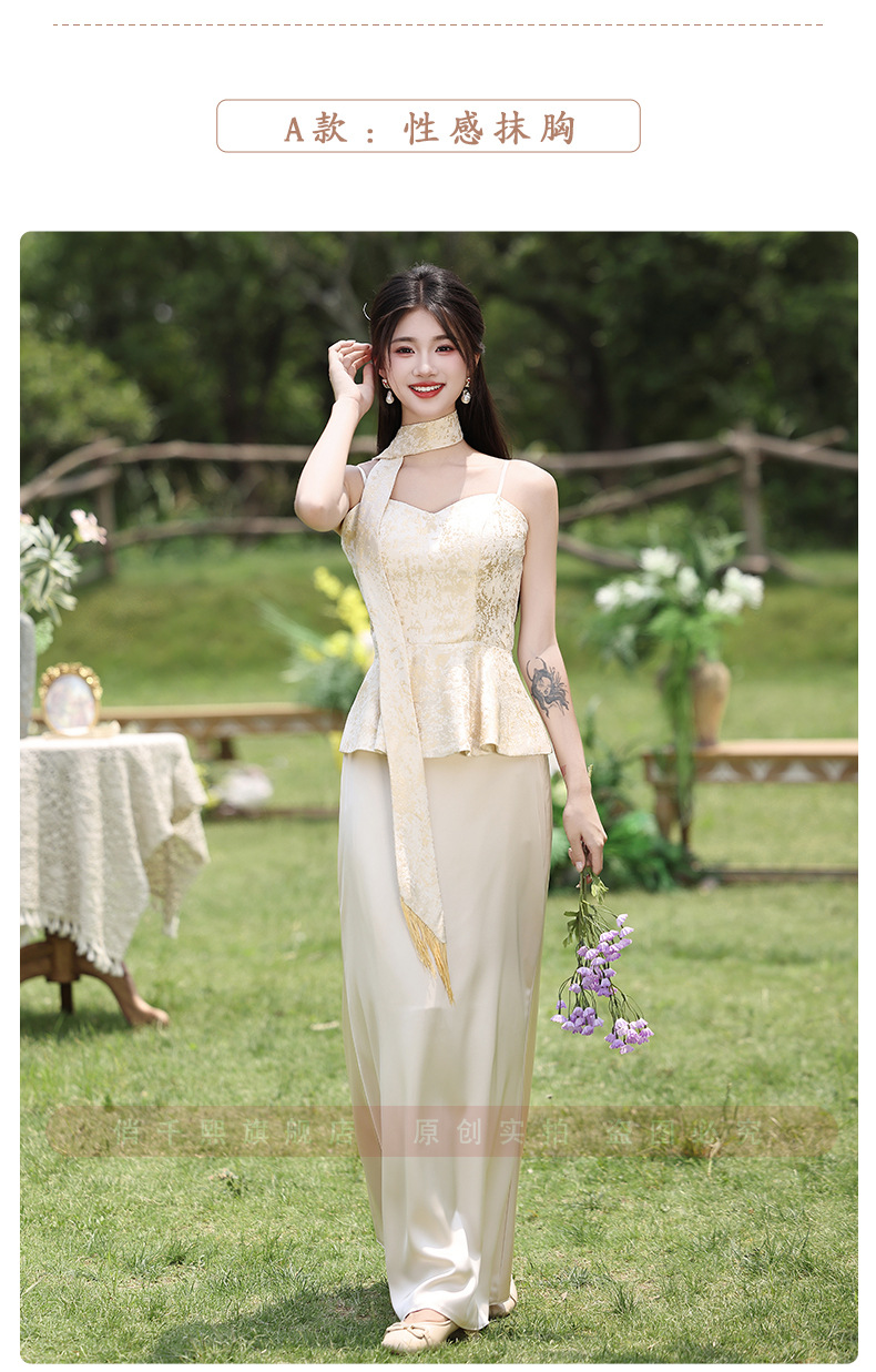Новые платья для подружек невесты в китайском стиле 2026 года, новые летние атласные платья цвета шампань, которые можно носить повседневно в качестве платьев в китайском стиле.