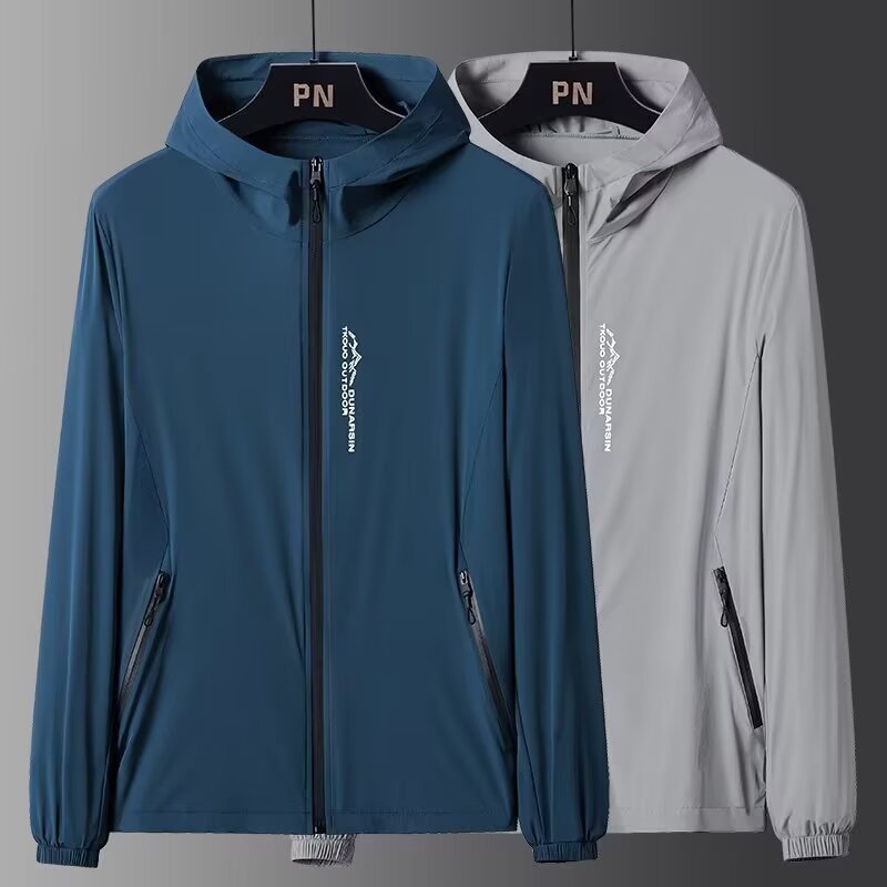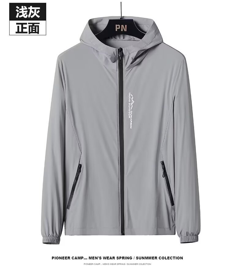 Новая мужская солнцезащитная куртка из ледяного шелка для внешней торговли, защита от ультрафиолета, ультратонкое пальто, легкая солнцезащитная одежда, универсальная куртка для рыбалки.