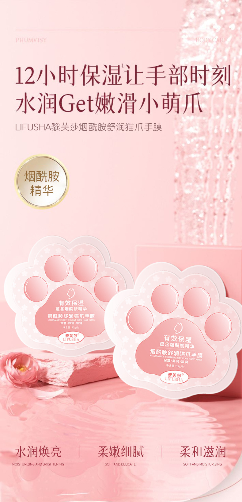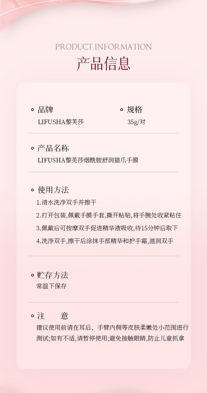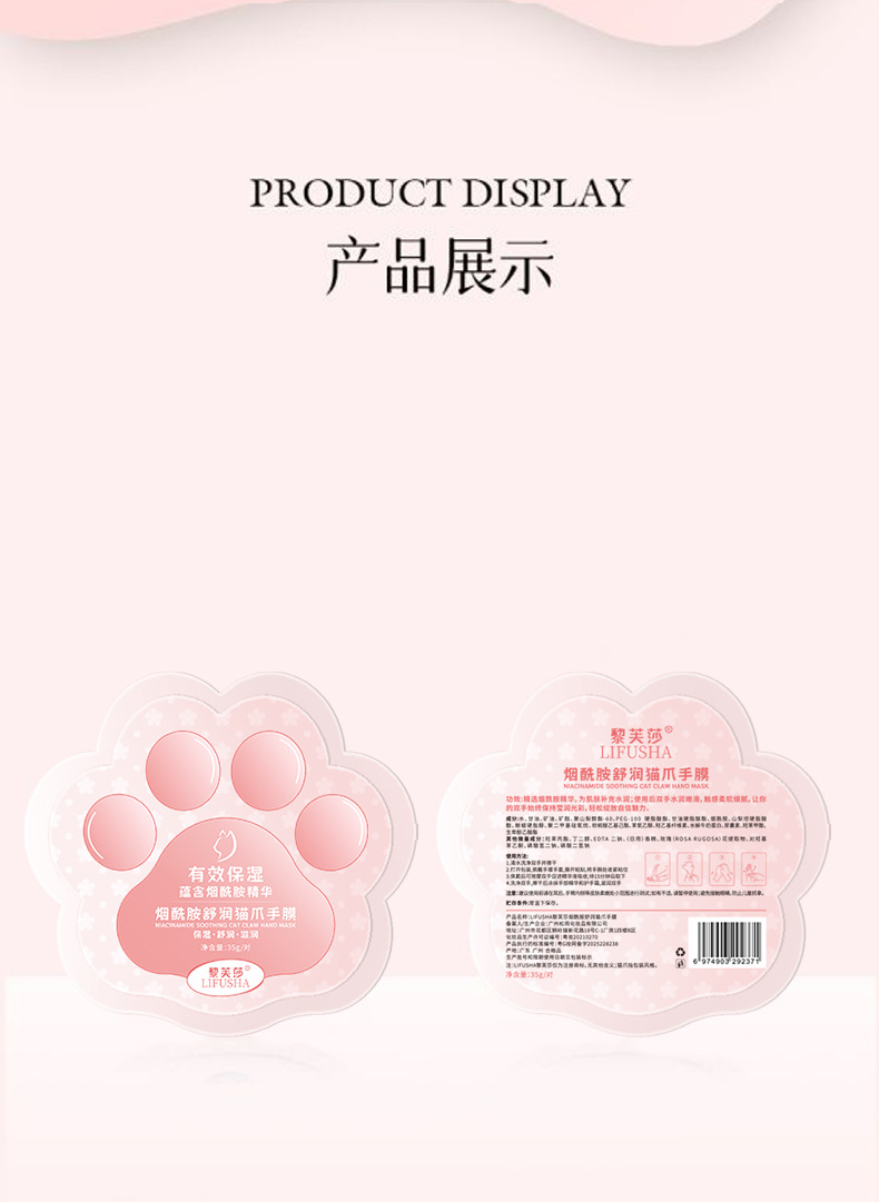 Rifsa Niacinamide Soothing Cat Claw Hand Mask отбеливает, увлажняет и улучшает сухость, грубость и уменьшает тонкие линии на руках.
