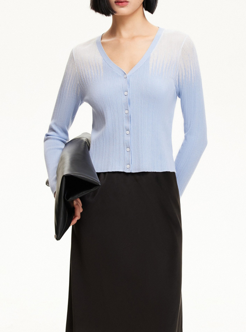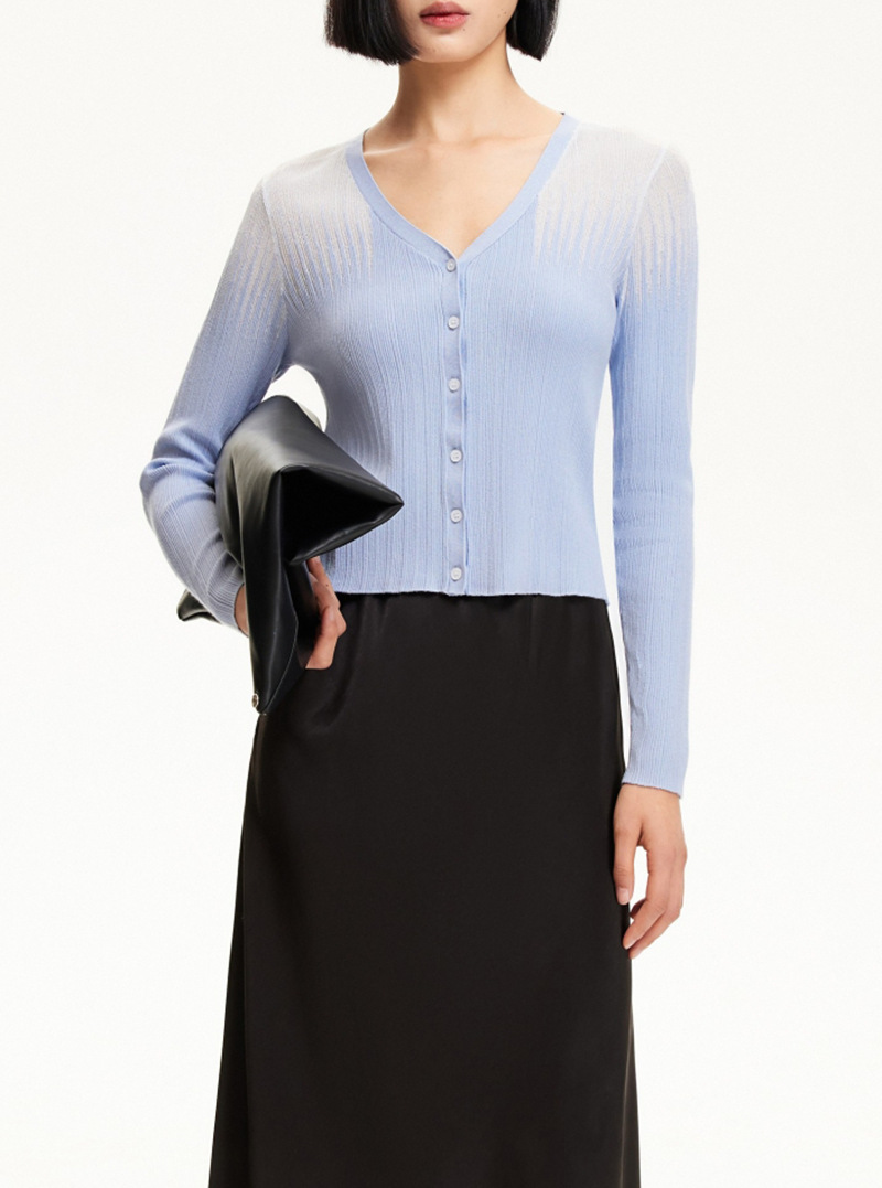 Женский тонкий вязаный кардиган с v-образным вырезом и контрастным светлым цветом, производитель шерсти Dalang, обработка индивидуального рисунка, см. изображение