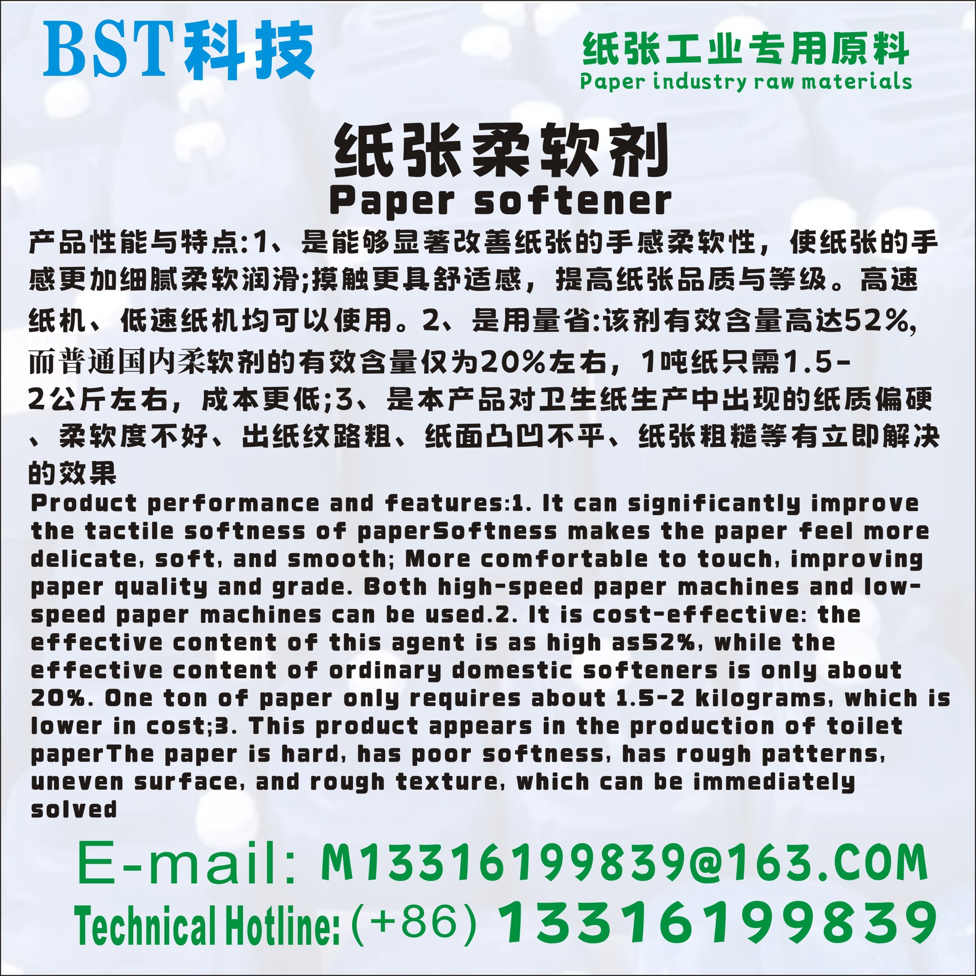 52%, while the effective content of ordinary domestic softeners is only about 20%. One ton of paper only requires about 1.5-2 kilograms, which is lower in cost;
