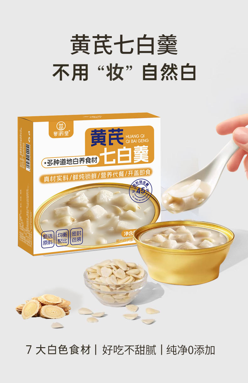 Yuyao Tang Astragalus Seven White Soup 165 г Чаша White Moonlight Seven White Drink Yam Lily Poria Заменитель еды Каша Легкий прием пищи