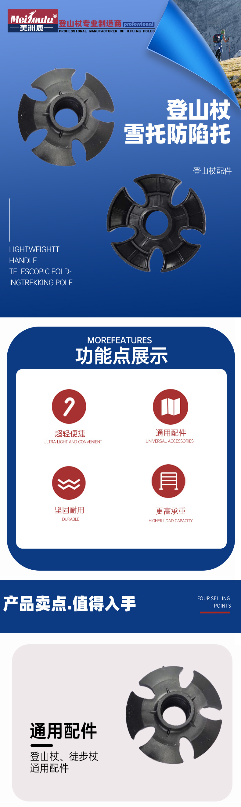 Параметры продукта; 8633A-Поддержка треккинговых палок для снега, противопотопляемая опора