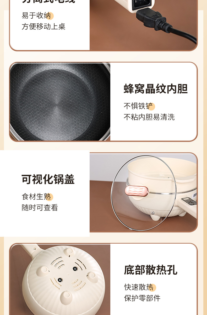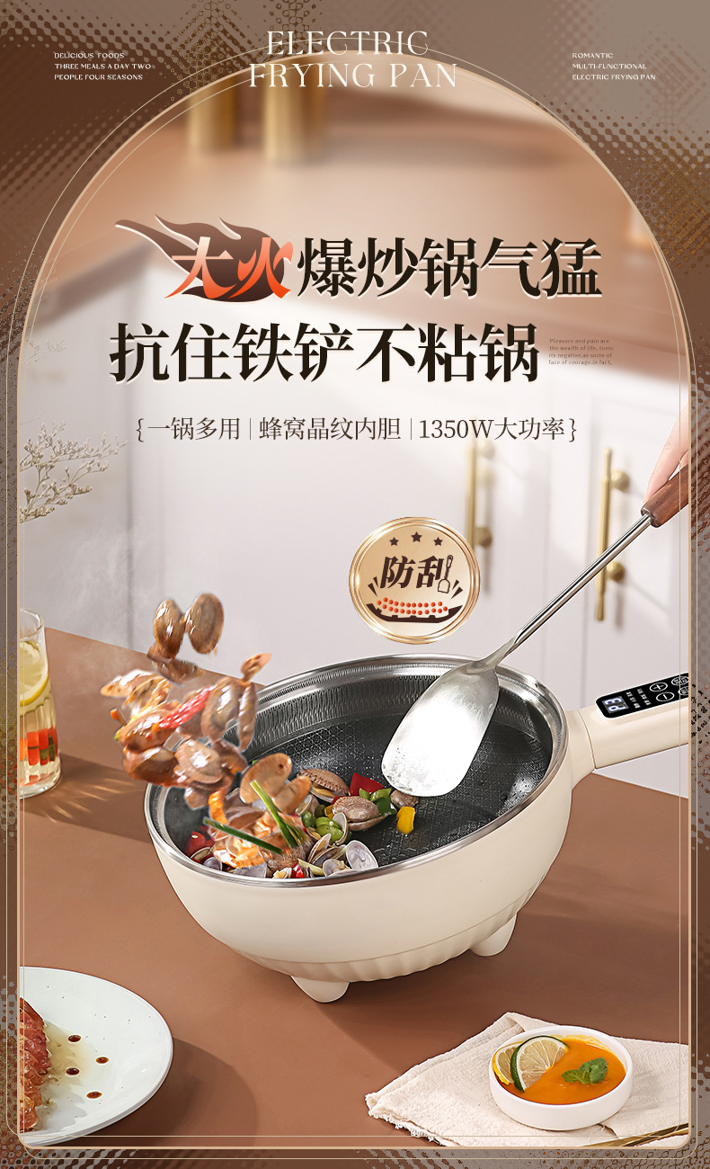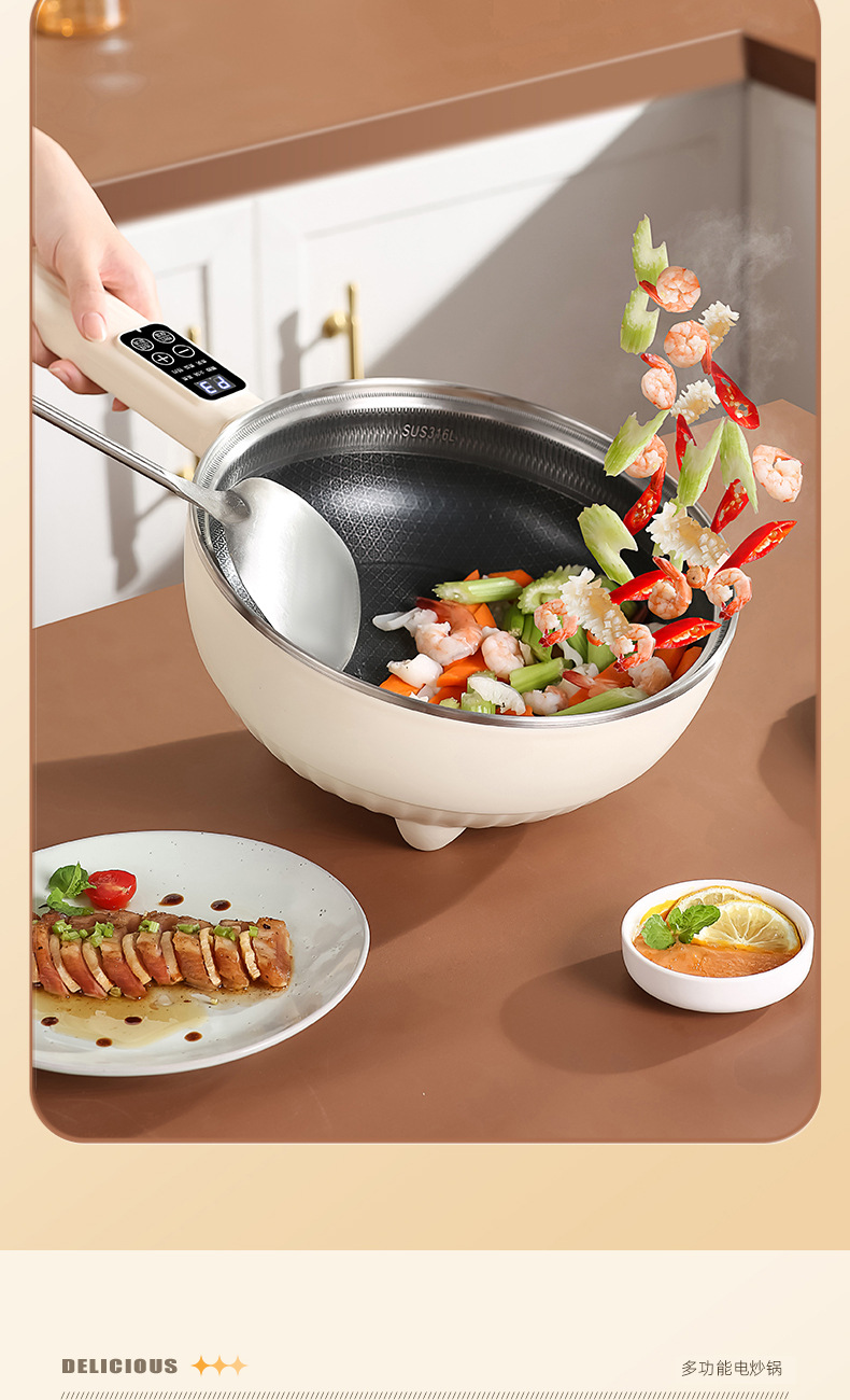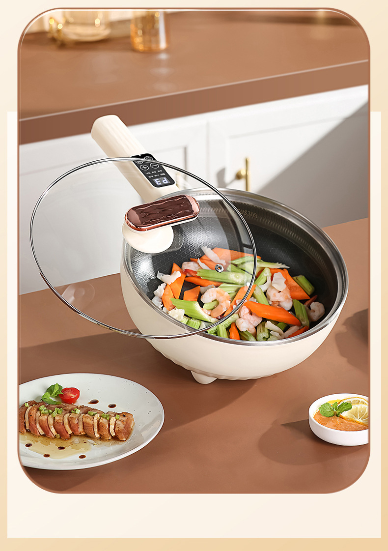 Электрический вок для приготовления пищи, многофункциональная электрическая плита «все в одном», приготовление на пару, жарка, бытовая сотовая антипригарная сковорода, электрическая кастрюля, двойного назначения