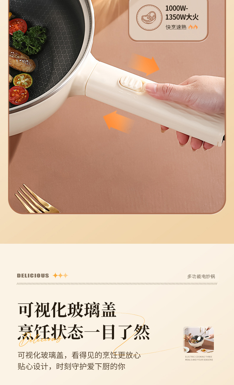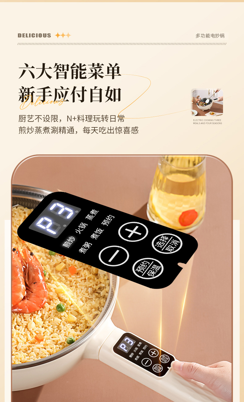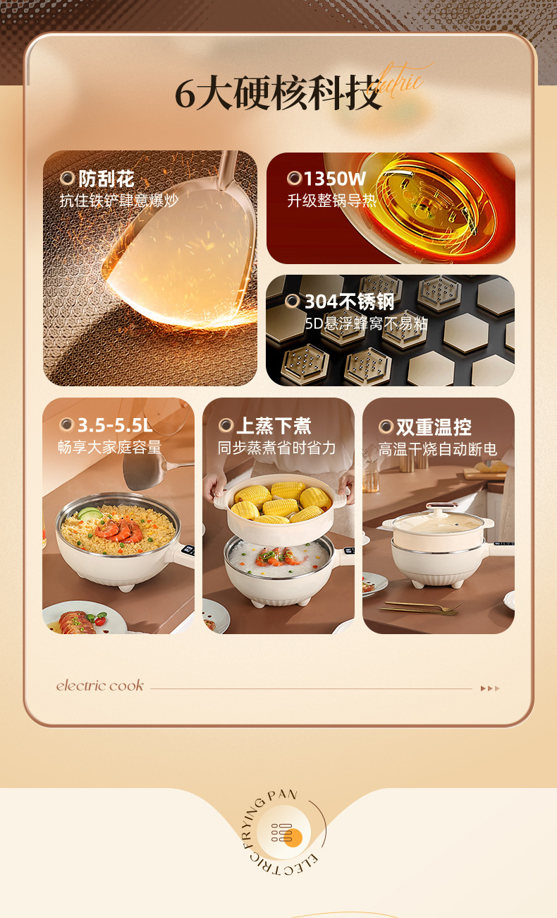 Электрический вок для приготовления пищи, многофункциональная электрическая плита «все в одном», приготовление на пару, жарка, бытовая сотовая антипригарная сковорода, электрическая кастрюля, двойного назначения
