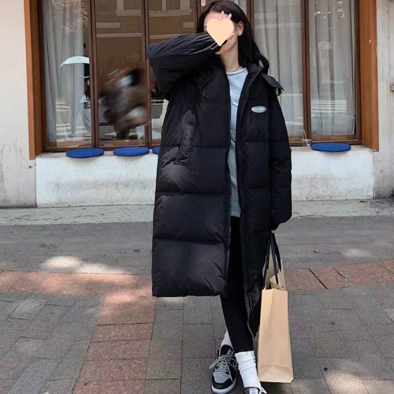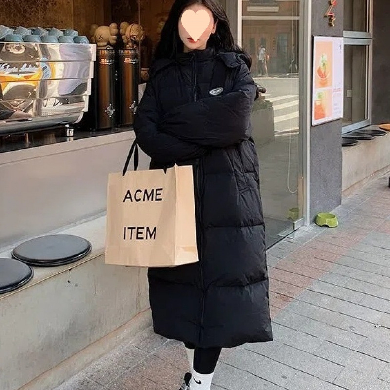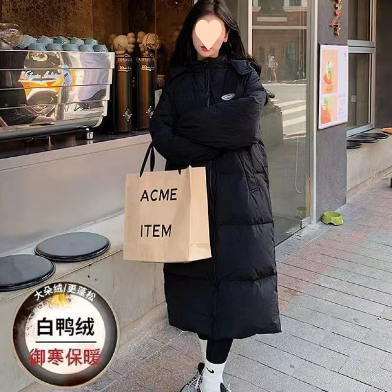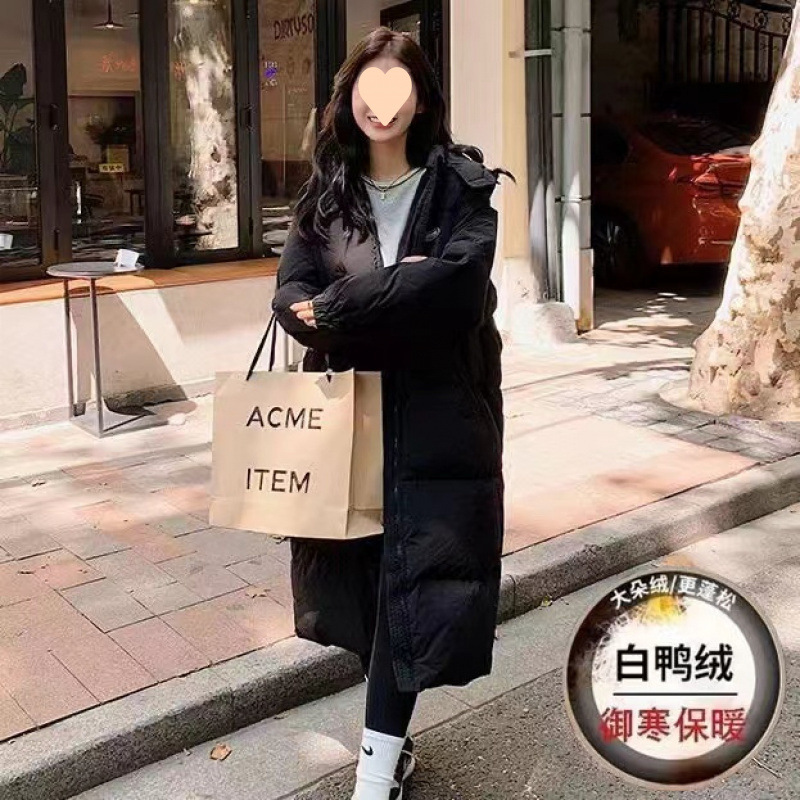 Белая пуховая куртка женская длинная до колен 2025 зима новая корейский стиль свободная утепленная маленькая черная куртка
