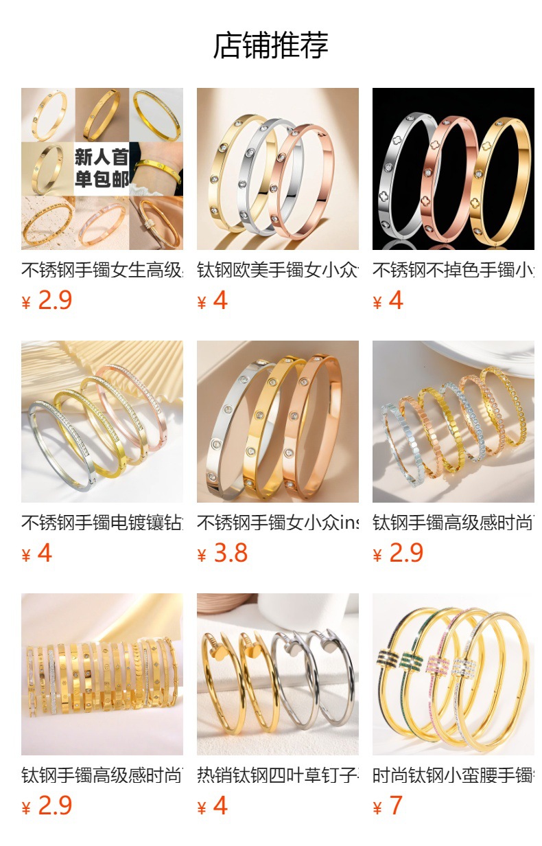 Браслет цвета стали KJ (никогда не выцветает); Золотой браслет KJ (выцветший, гарантированная замена); Браслет KJ из розового золота (гарантия замены, если он выцветает); Браслет стального цвета с десятью бриллиантами диаметром 4 мм.; Золотой браслет с десятью бриллиантами диаметром 4 мм; Браслет из розового золота с десятью бриллиантами диаметром 4 мм; Браслет стального цвета 29-D-12 с рядом квадратных бриллиантов (никогда не выцветает); Золотой браслет 29-D-10 с рядом квадратных бриллиантов (возврат и обмен возможен, если он выцветает); Браслет из розового золота 29-D-11 с рядом квадратных бриллиантов (возврат и обмен возможен, если он выцветает); Браслет со римскими цифрами 16-E-1 стального цвета; 16-E-2 Золотой браслет с римскими цифрами; 16-E-3 Браслет из розового золота с римскими цифрами; Маленький браслет на талию стального цвета; Золотой браслет на талию; Маленький браслет на талию из розового золота; Браслет-ракушка стального цвета; золотой браслет из ракушек; браслет из розового золота