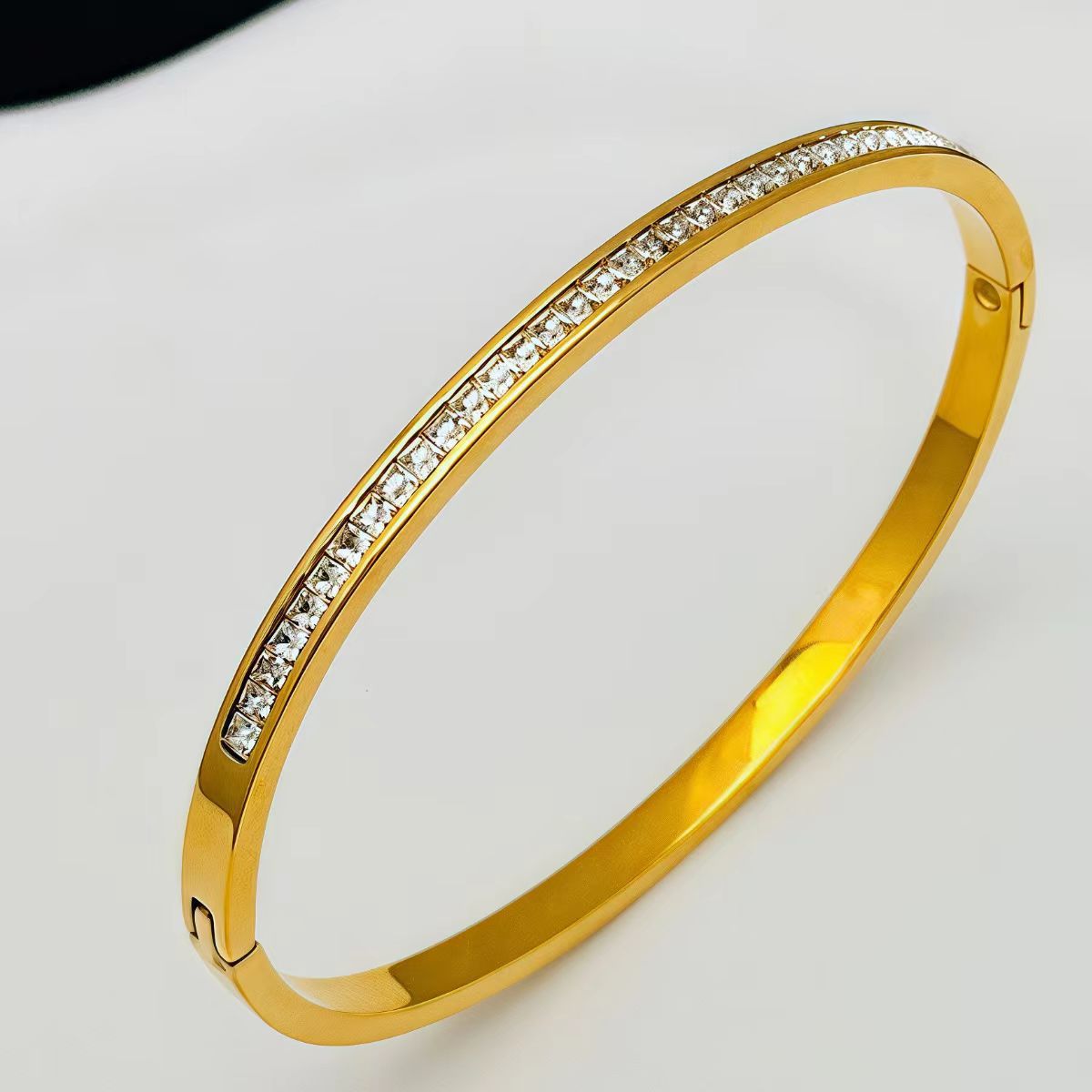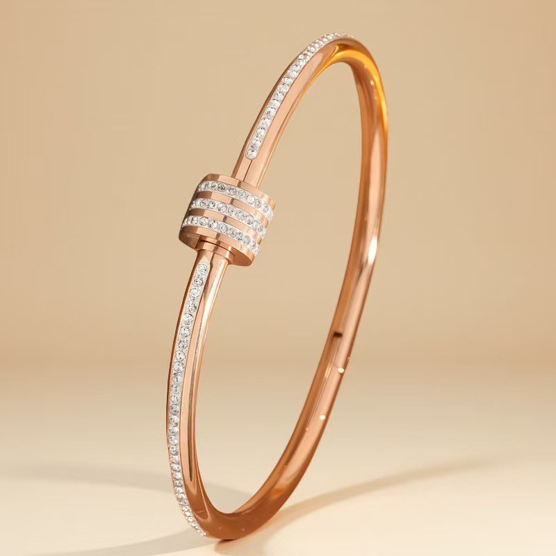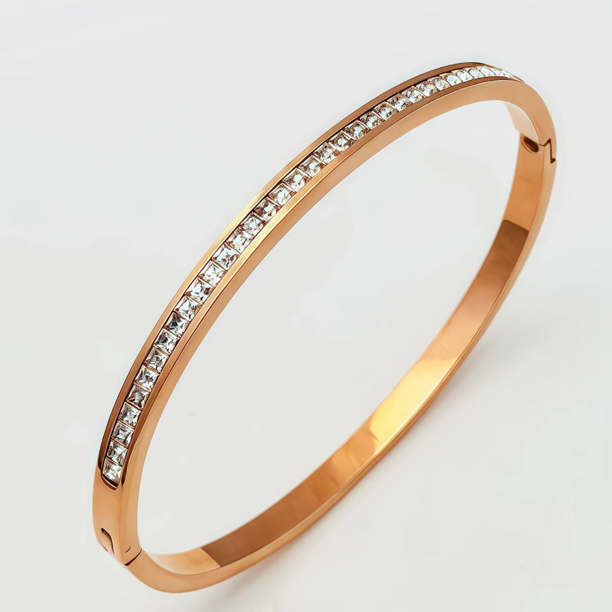 Женский браслет из титановой стали из розового золота, легкий роскошный нишевый модный браслет из нержавеющей стали с цирконом