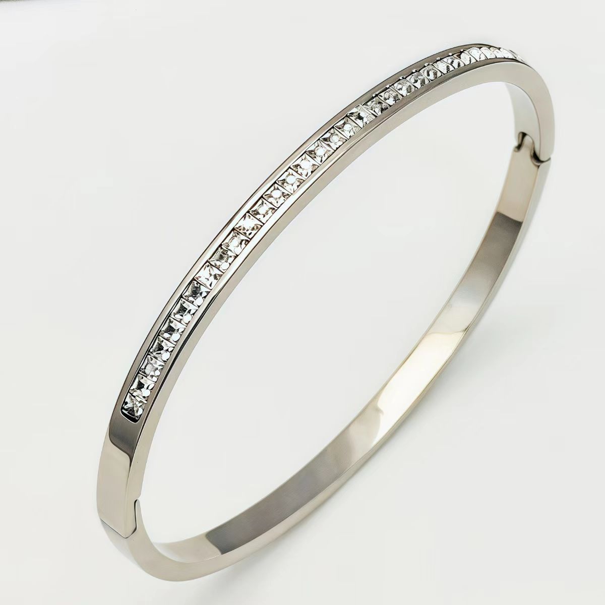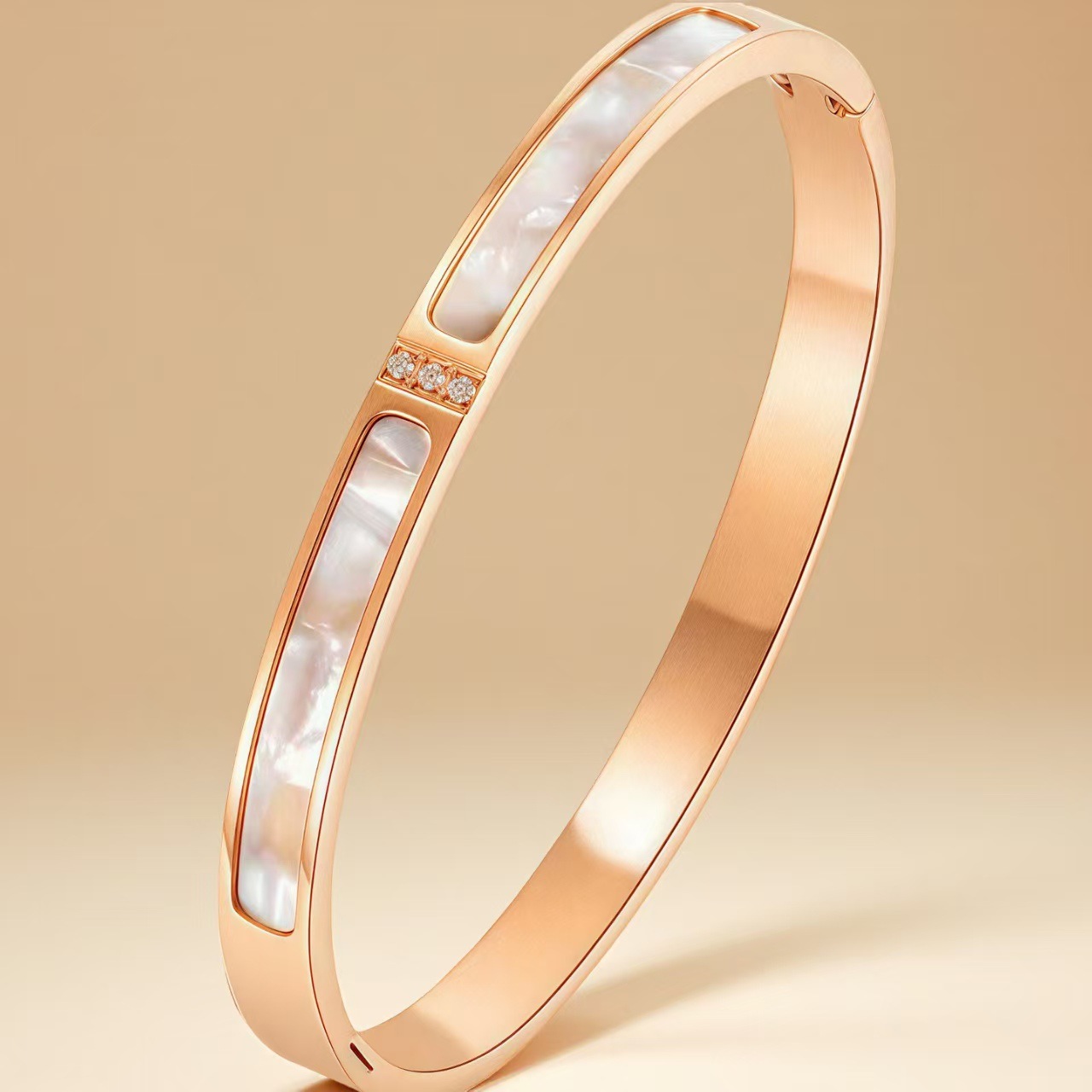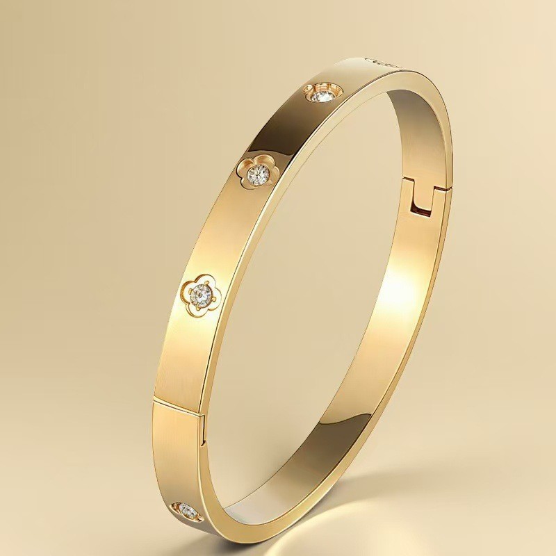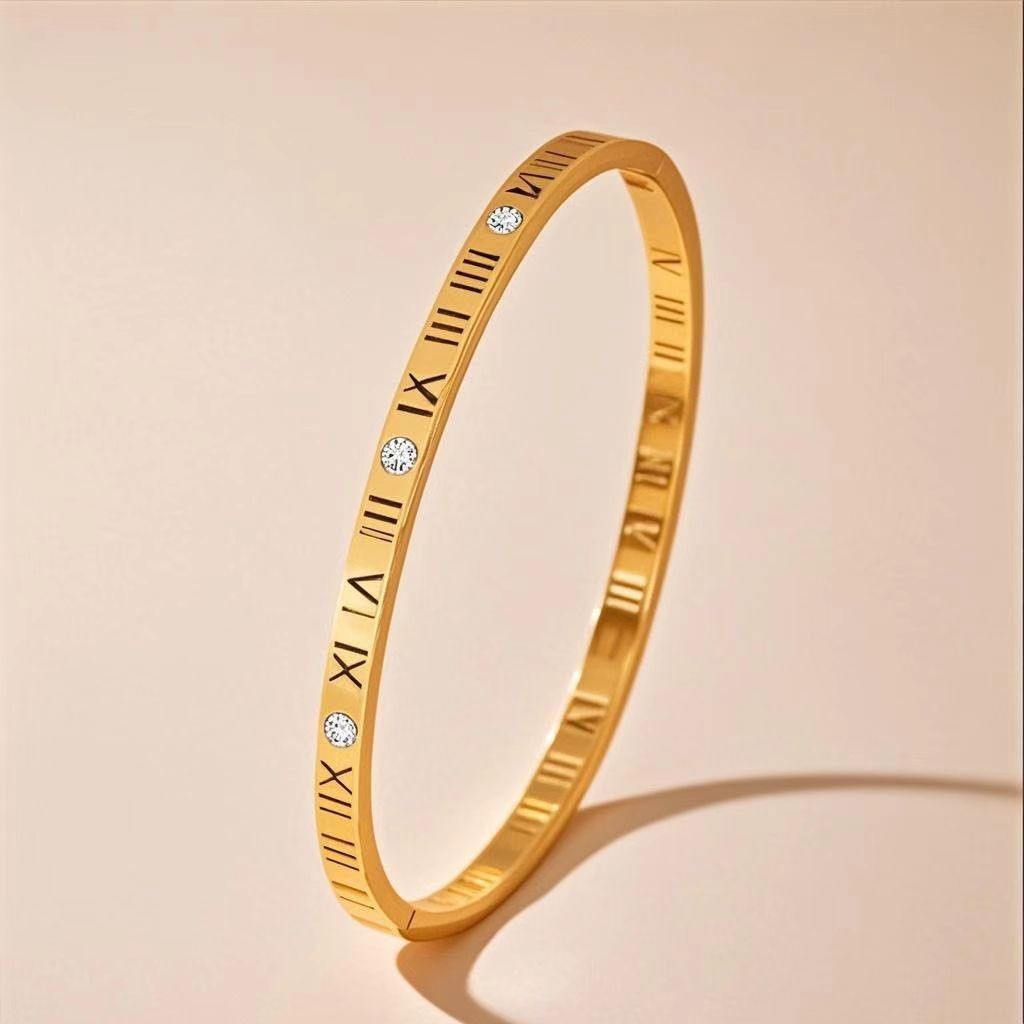 Женский браслет из титановой стали из розового золота, легкий роскошный нишевый модный браслет из нержавеющей стали с цирконом