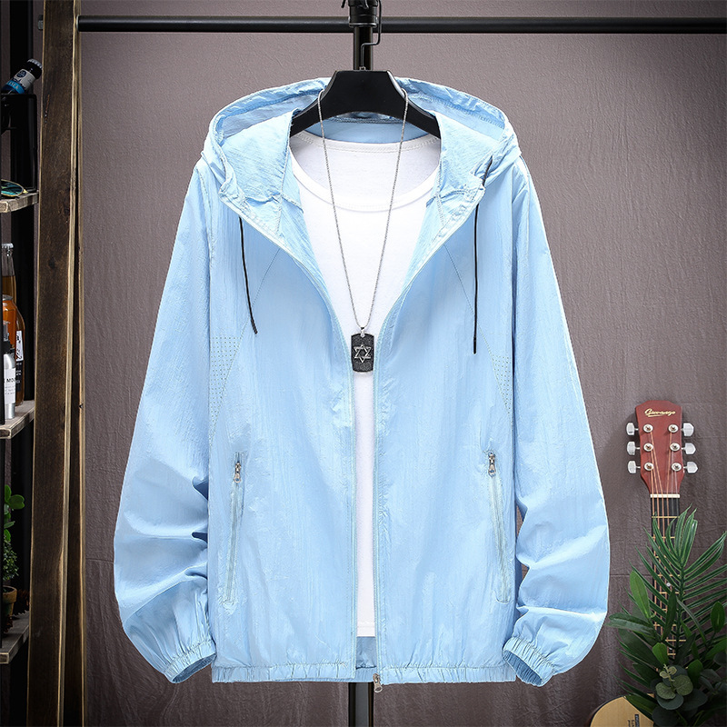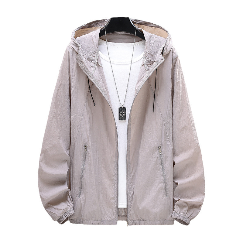 2024 повседневная солнцезащитная одежда, свободная тонкая одежда на молнии, тонкая молодежная готовая одежда с капюшоном и карманами по боковым швам